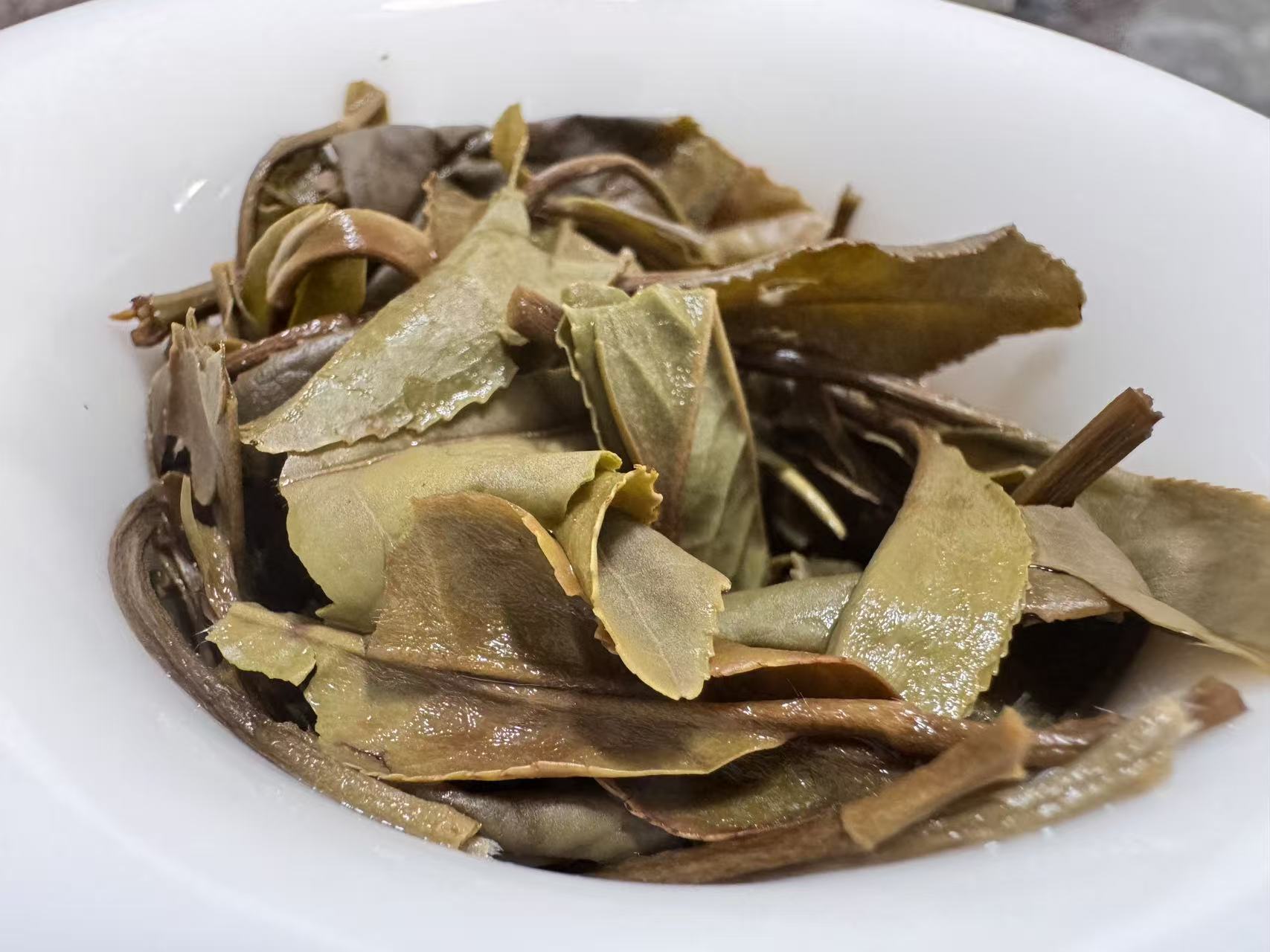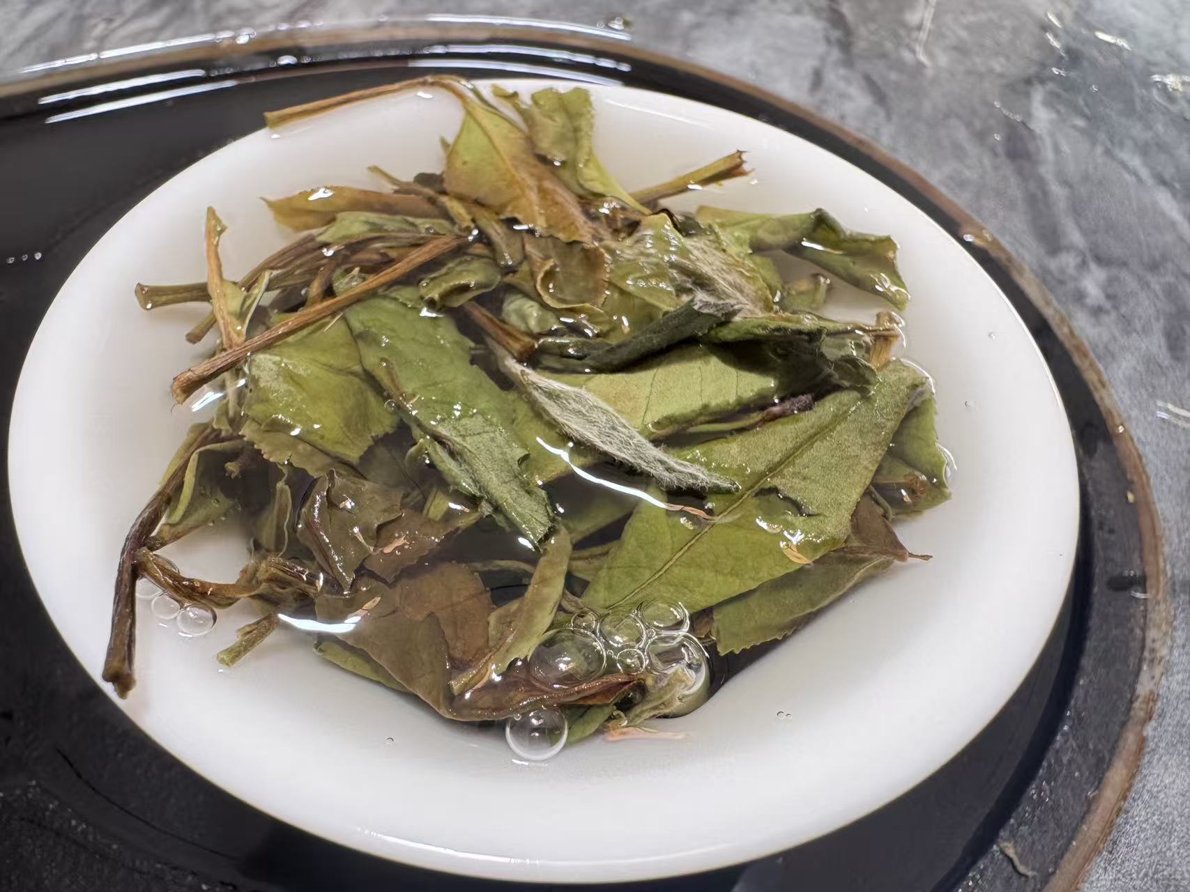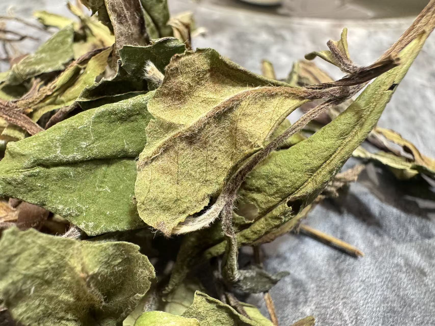 五彩颜色,非常有活性,好白茶一定是要活的,如此一来,才会有活性酶,才会转化(活不是绿,太绿的白茶工艺不对)。
