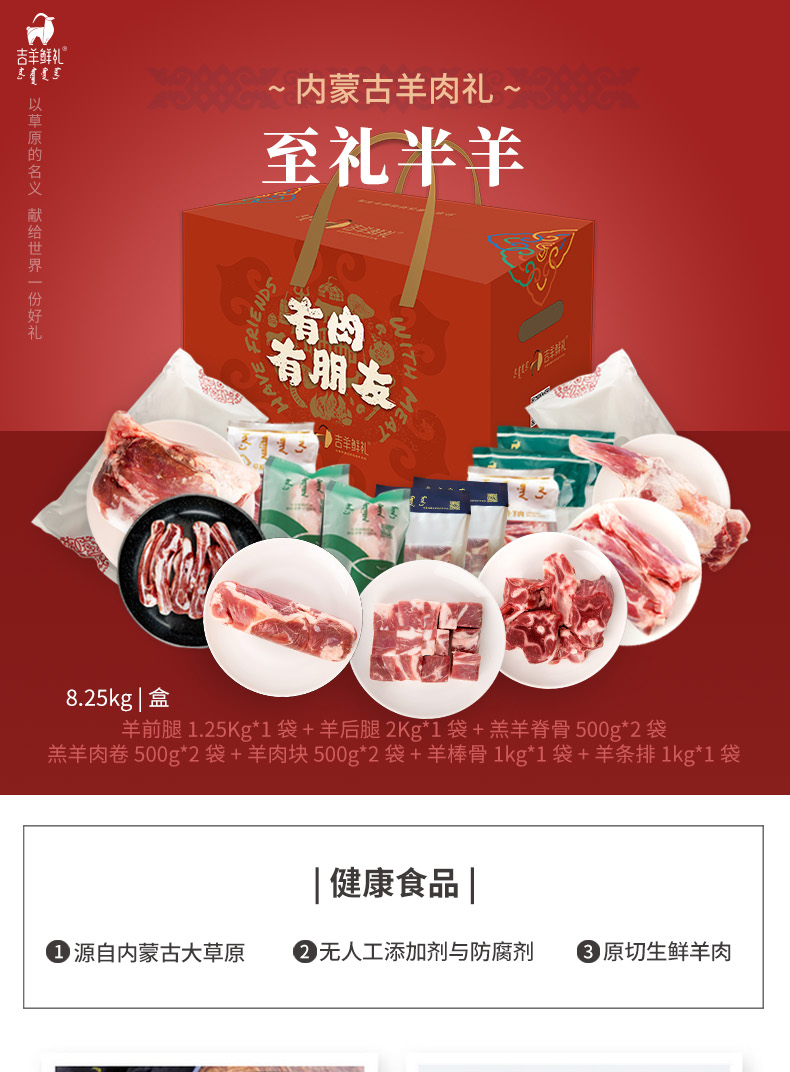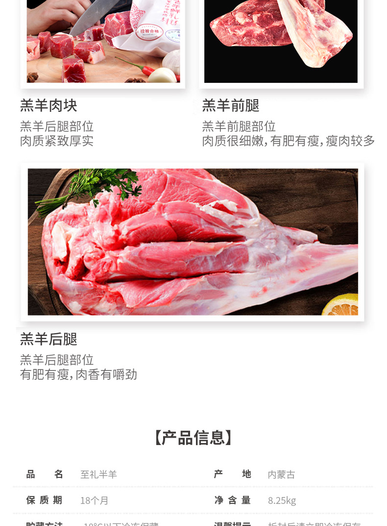 | 品名:至礼半羊 | 产地:锡林郭勒/鄂尔多斯/乌拉特 |