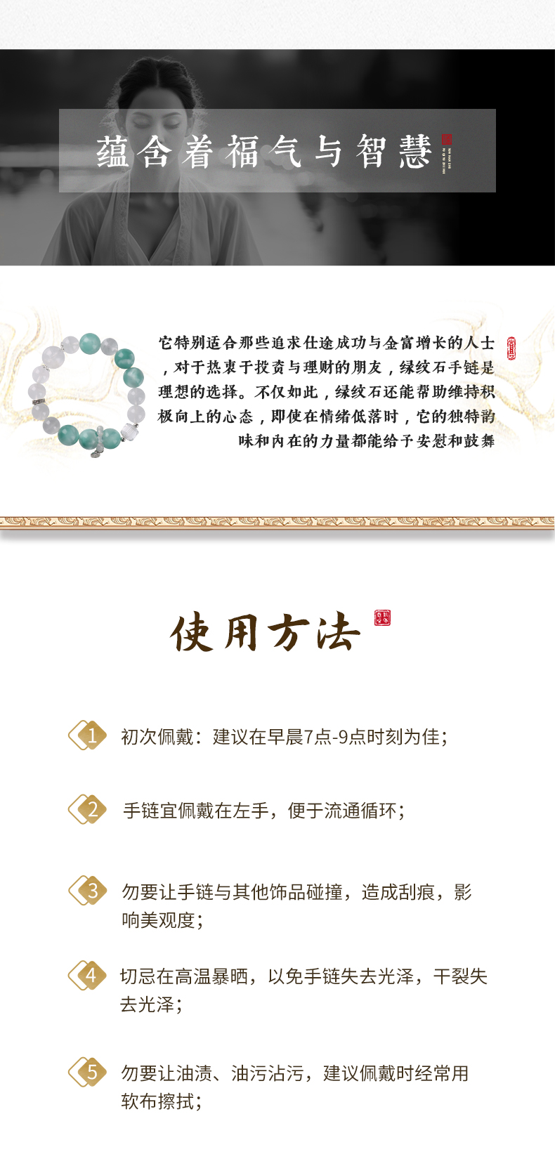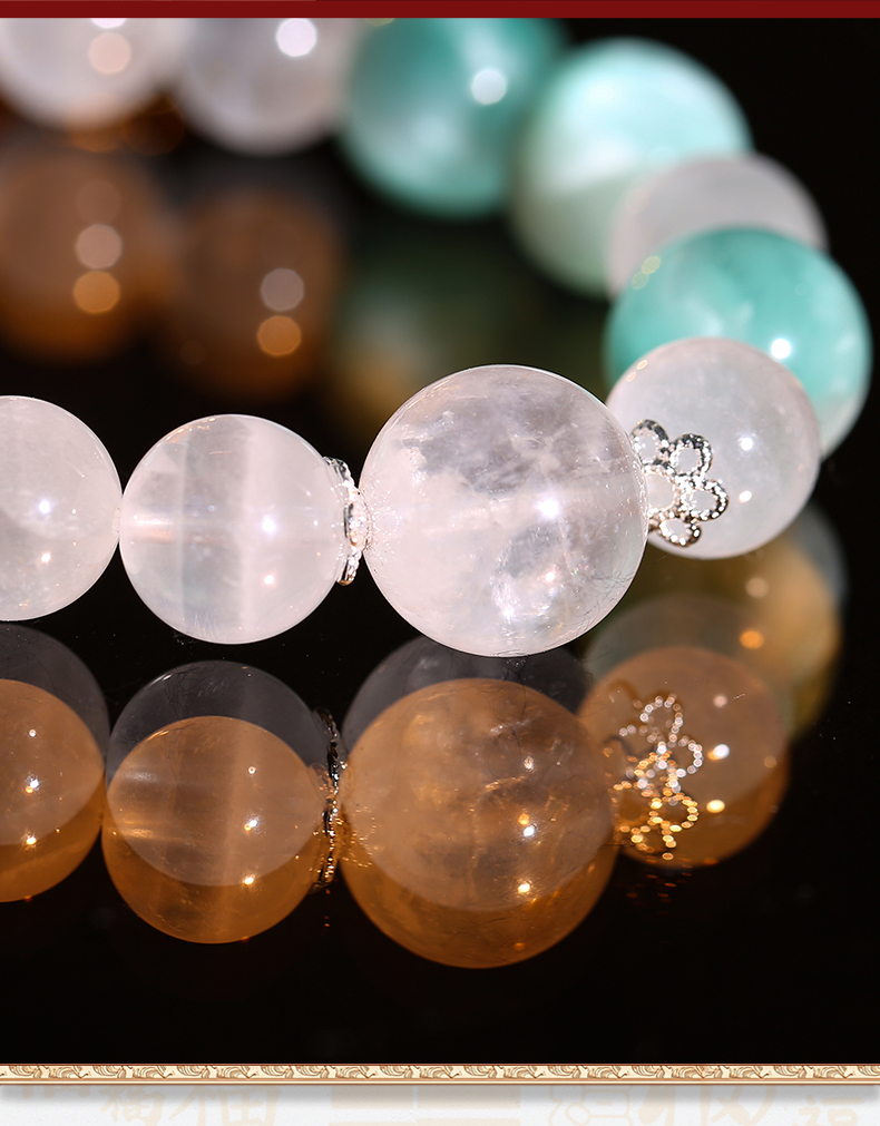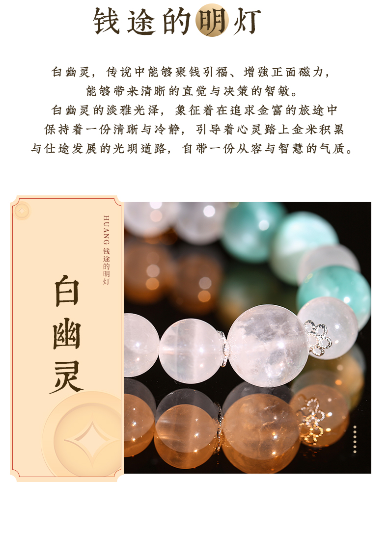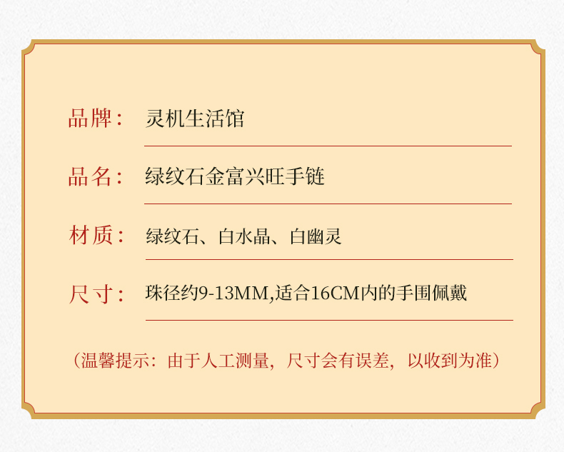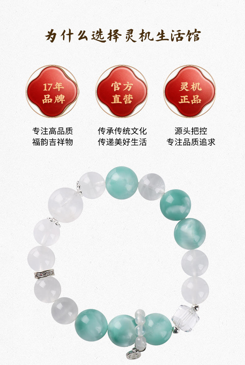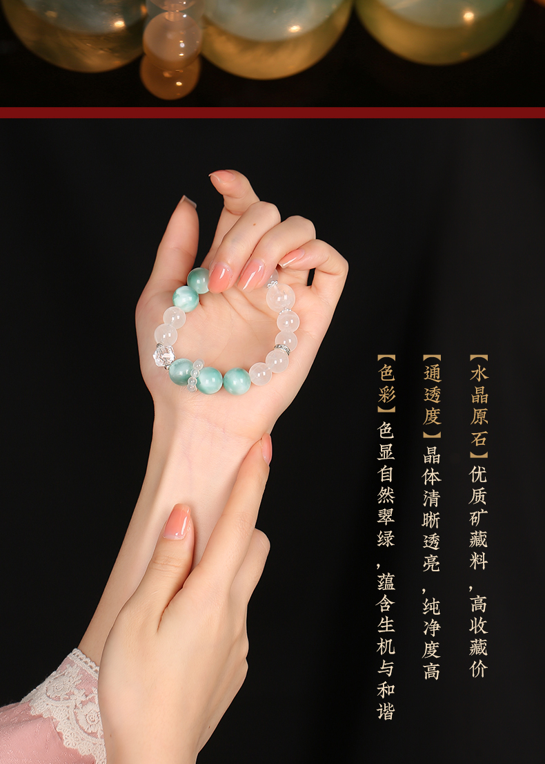 灵机生活馆 绿纹石钱币手链 缓和情绪 白水晶白幽灵手串