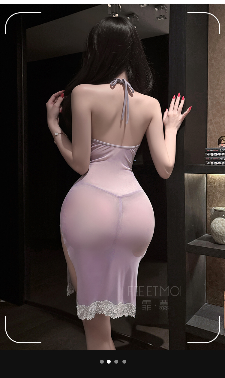 霏慕 甜欲蝴蝶网纱挂脖裙7806