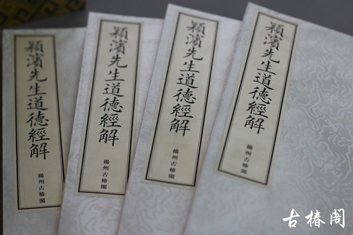 此书是《古椿阁风华珍丛》之十,一函四册,正文180个筒子页,朱墨套印,采用安徽泾县特制手工宣,封面用冷色调古鸟云纹花绫,函套用道教符号万字回纹宋锦,显示天地万物质朴简一,大道无形的人文内涵,与书承载的内容相贴合;大开本,成书尺寸:宽18.5