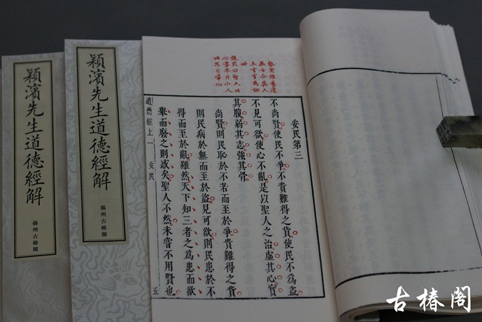 老子《道德经》及其注疏版本历代不下三十种,北宋文豪苏辙注解、明代凌以栋批点自刻的《颖滨先生道德经解》四卷、考异一卷,一函四册,是明代凌刻朱墨套印本系列中的翘楚,入选国家珍贵古籍名录。