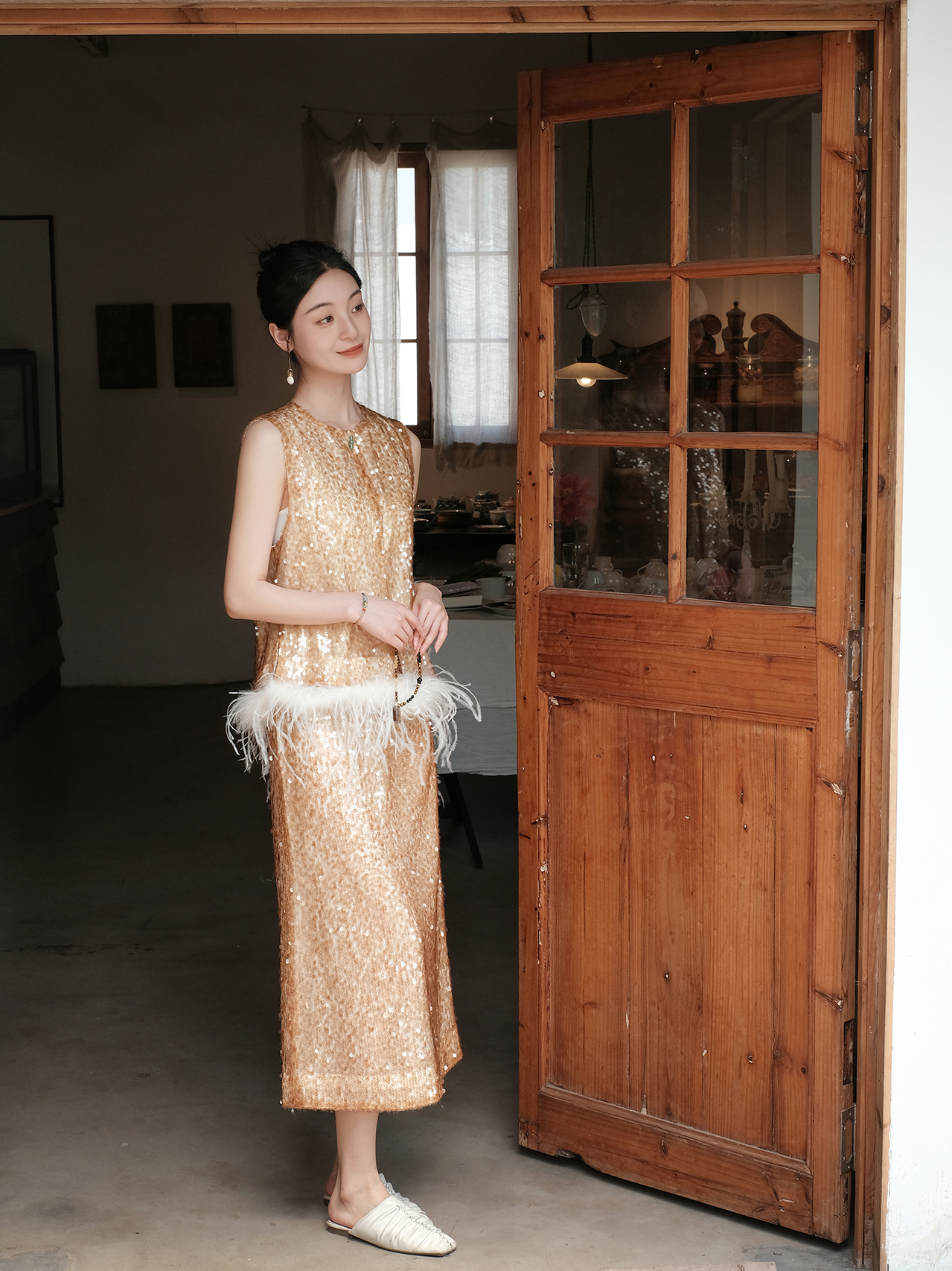 盛唐牡丹 |玉色/香槟金冠乐绉蝶恋花上衣