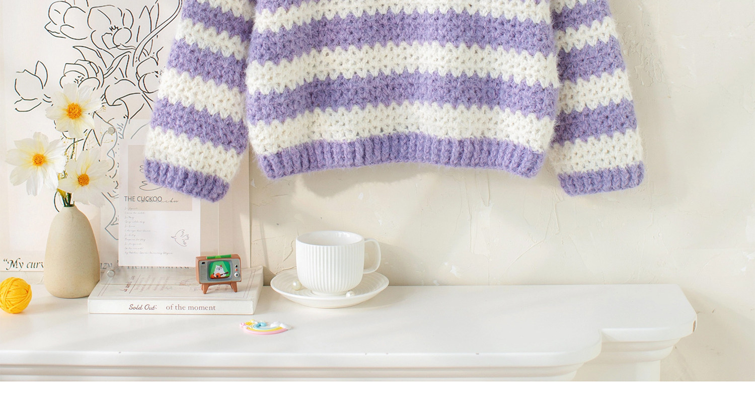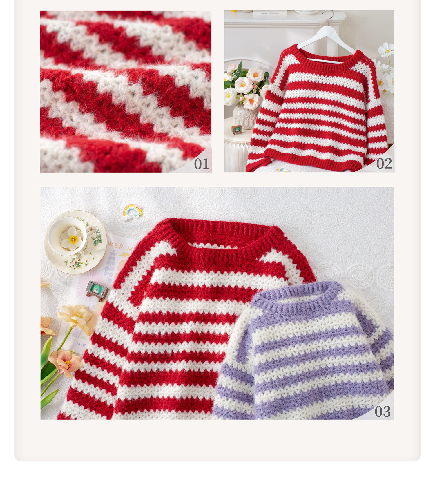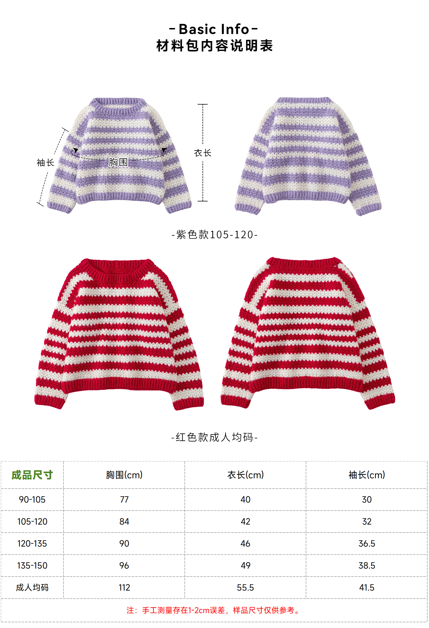 苏苏姐家简约亲子条纹毛衣梦羽版纯色手工diy编织钩针材料包