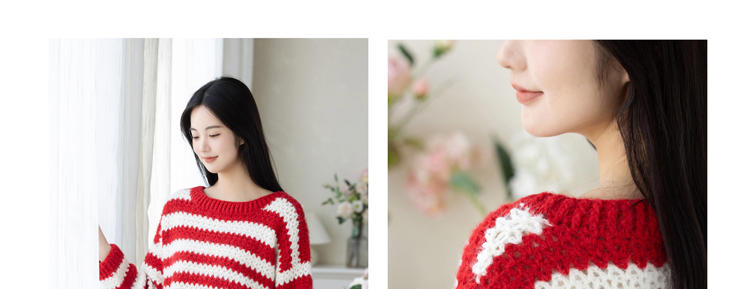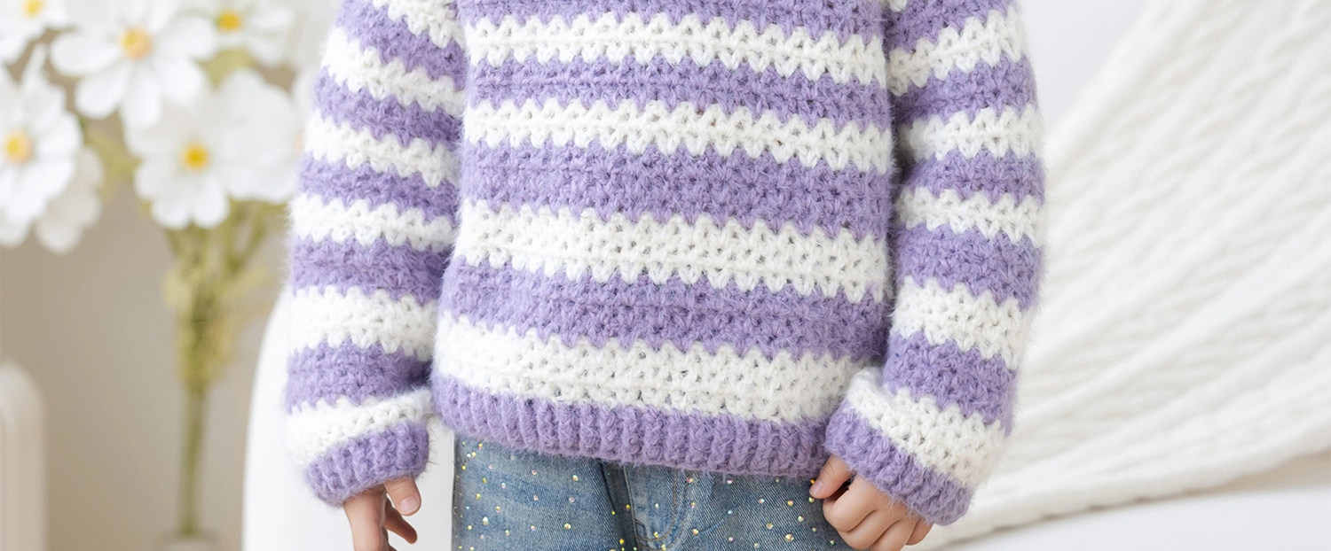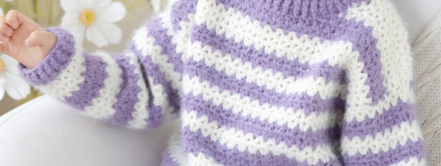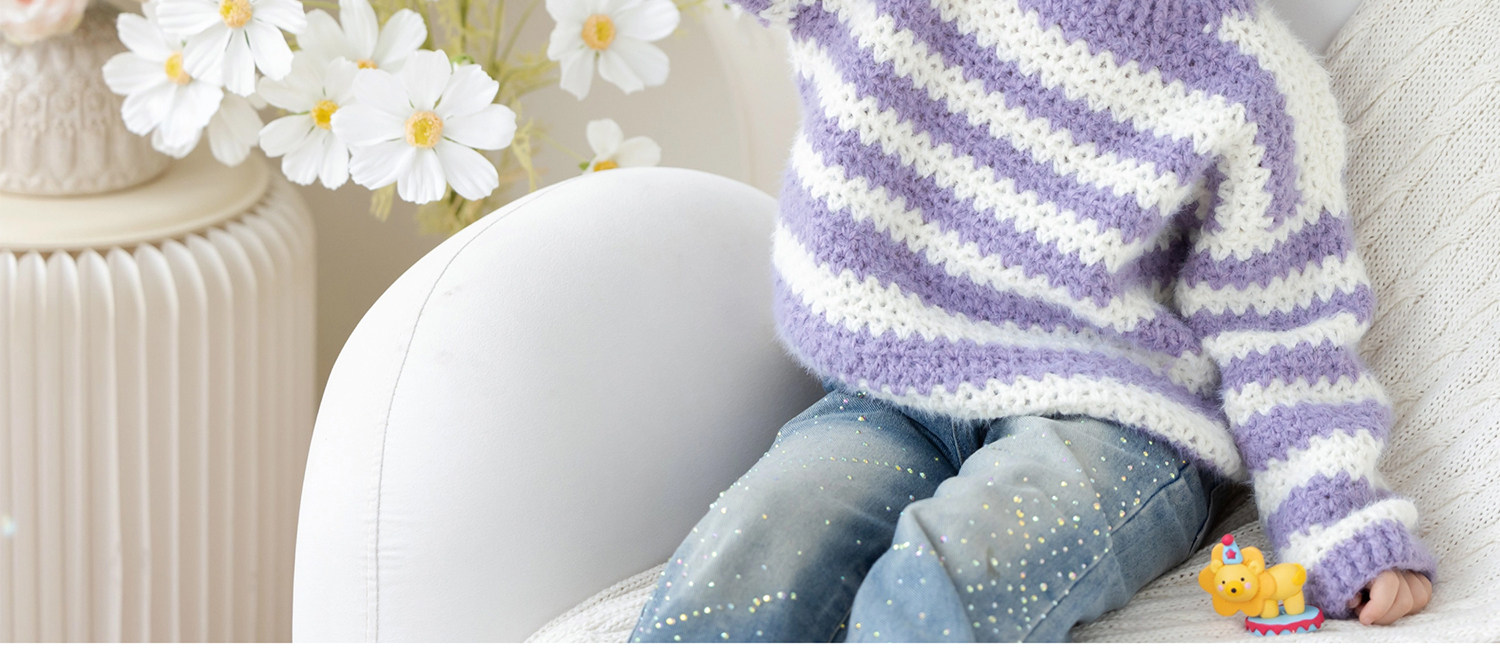 苏苏姐家简约亲子条纹毛衣梦羽版纯色手工diy编织钩针材料包