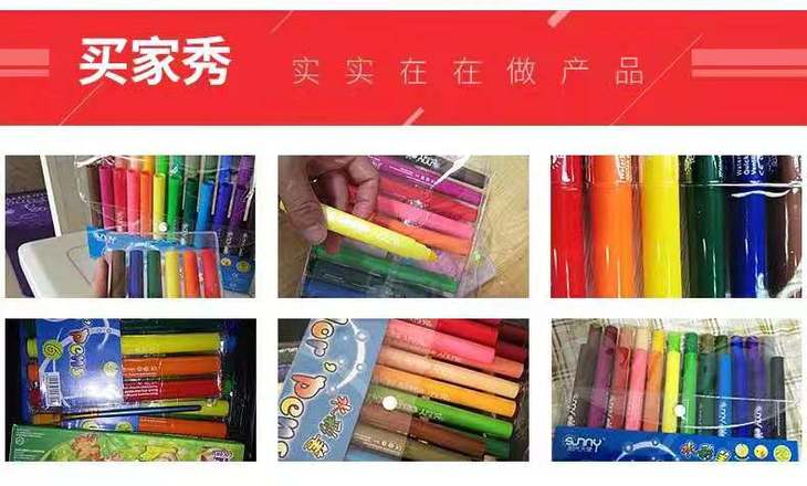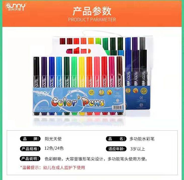 阳光天使12色/24色大容量水彩笔锥形头可水洗