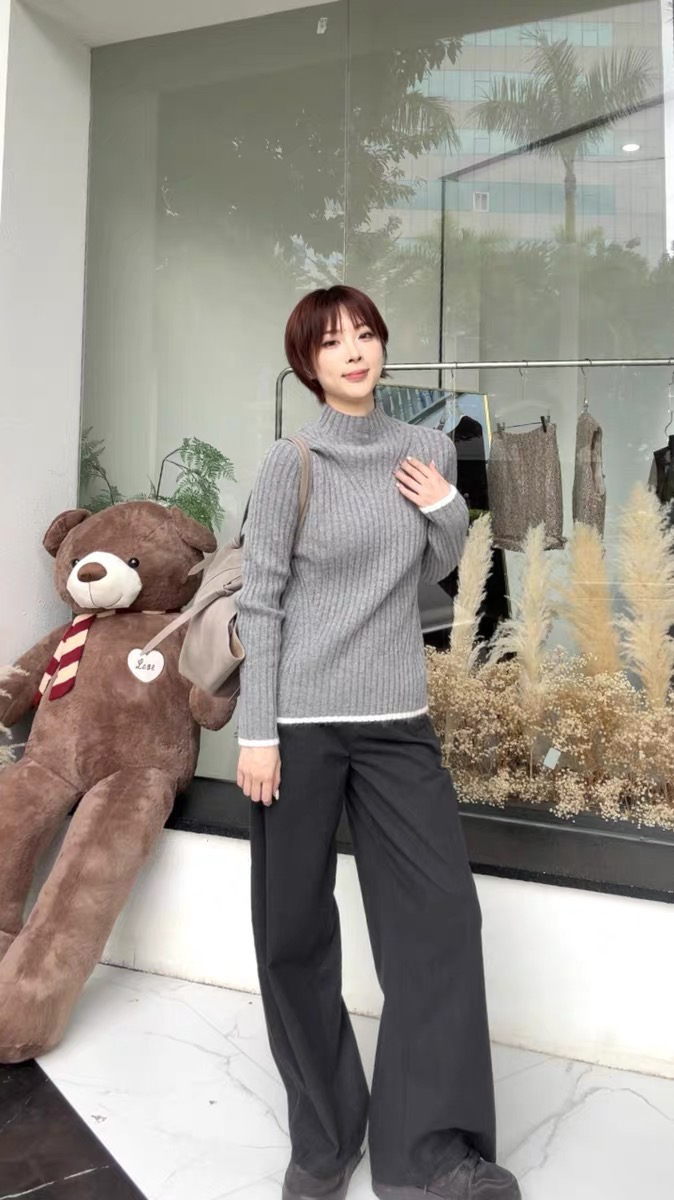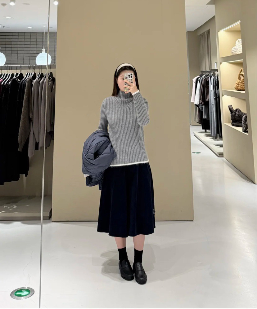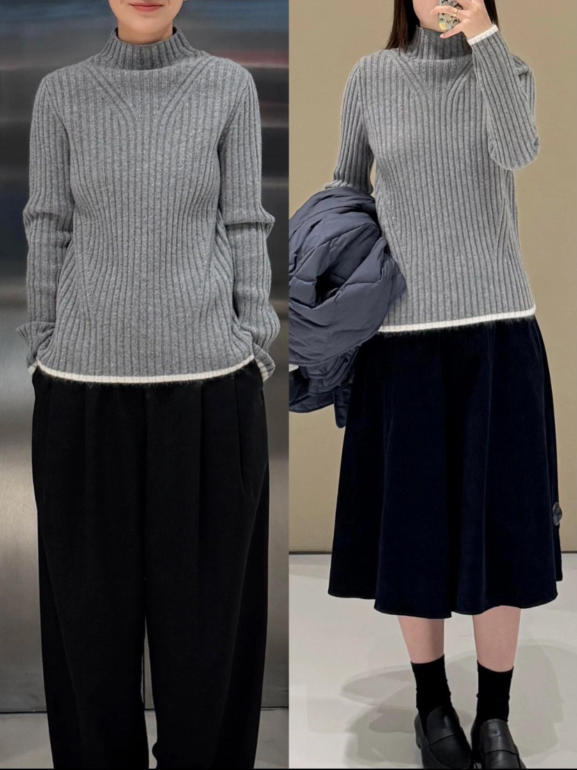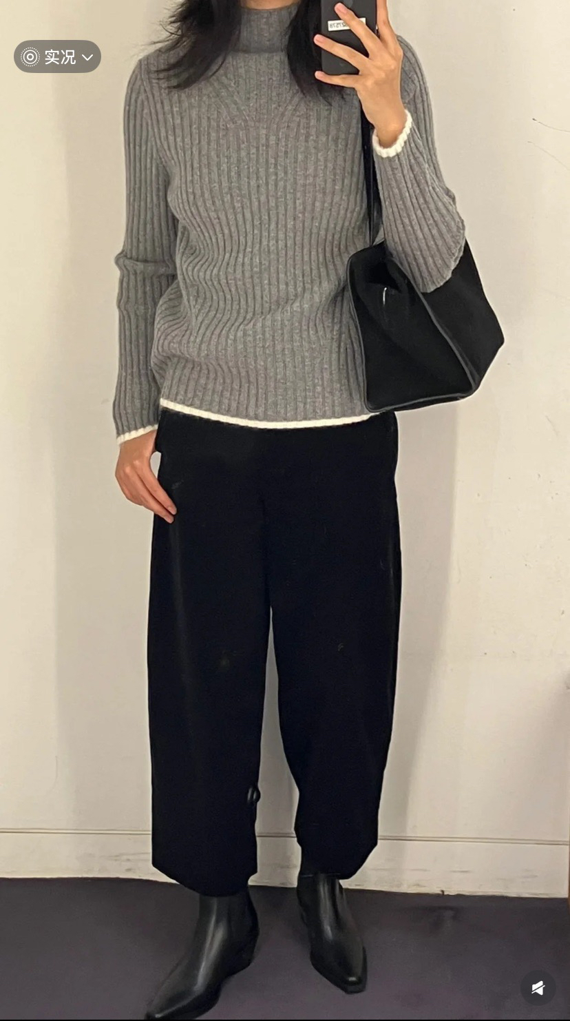 它·······不是很惊艳的一件,但是它很保暖,很通勤,旅游上班居家都是很大方优雅的一件,几何竖坑条的设计不显肉,视觉超显瘦都是他的优势