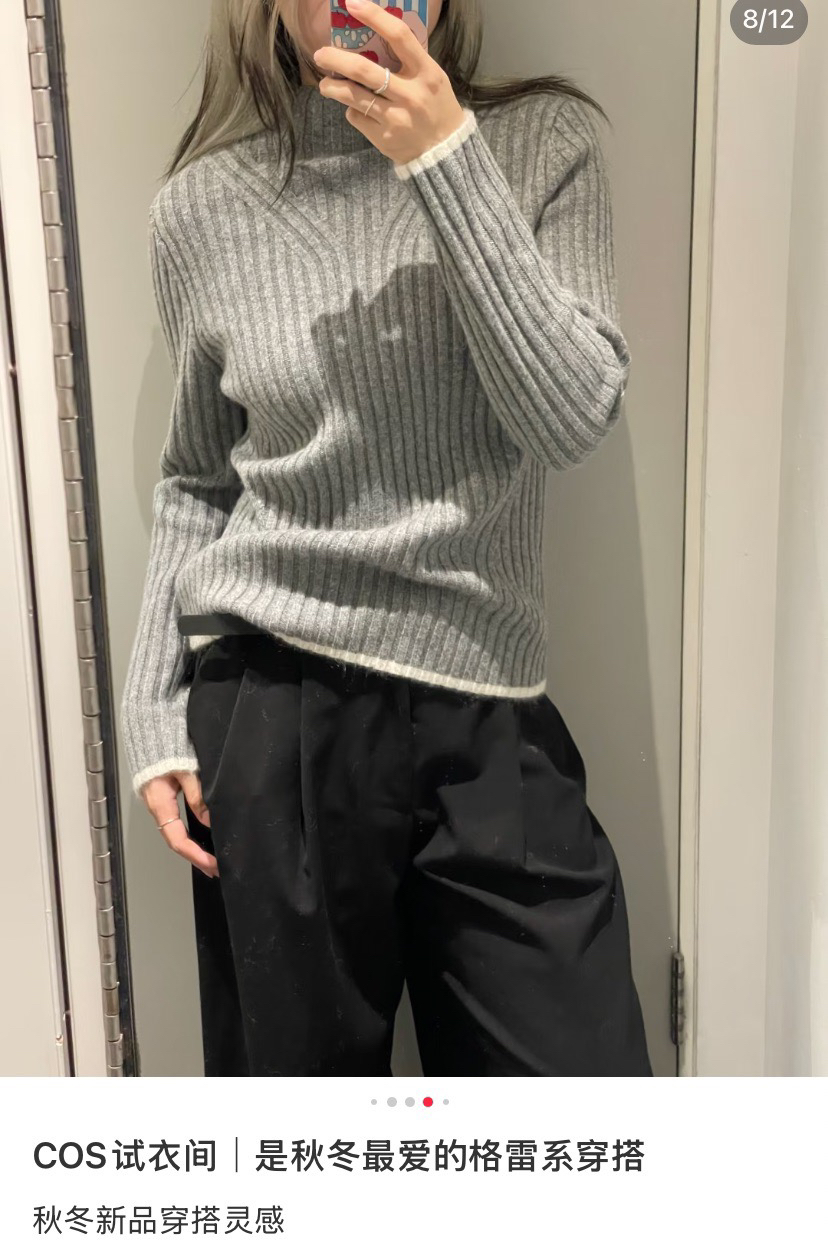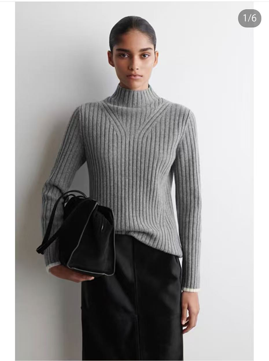 COS 修身版 美丽诺 罗纹烟囱领 羊毛针织衫(不是薄款)