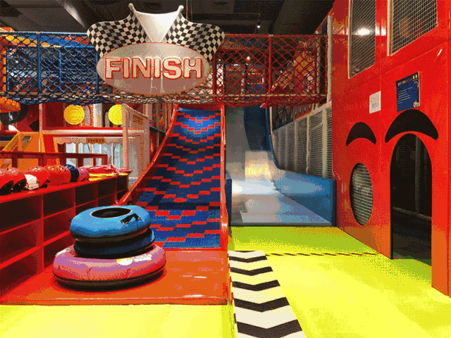 快看前方这辆仿古大众汽车!没错,连售票处都建的这么有细节美~虽说是新开乐园,但是在探店时完全没有闻到油漆味,四周都采用了环保墙纸,加上全方位的软包防护,粑粑麻麻可以放心把娃丢进去畅玩一整天。