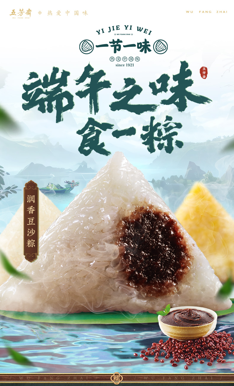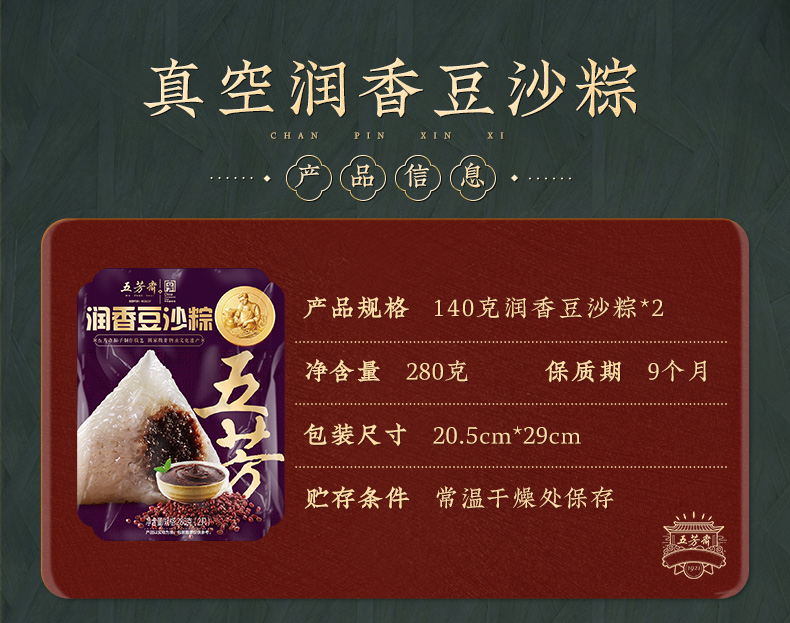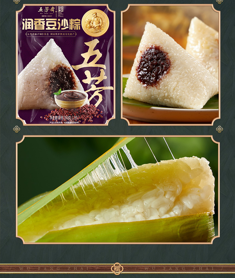 五芳斋 润香豆沙粽5袋 140克*2只*5袋 真空袋装粽子嘉兴特产