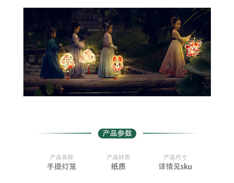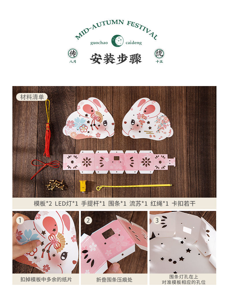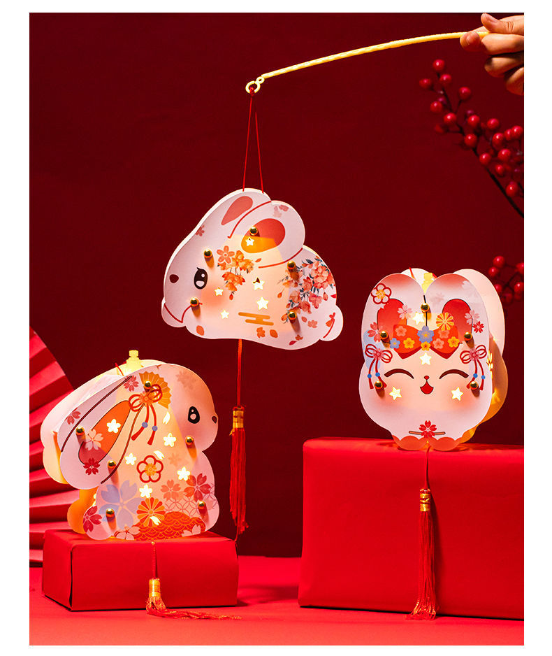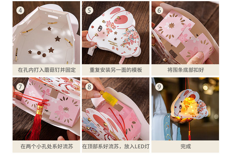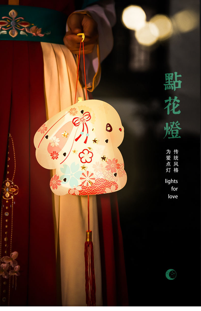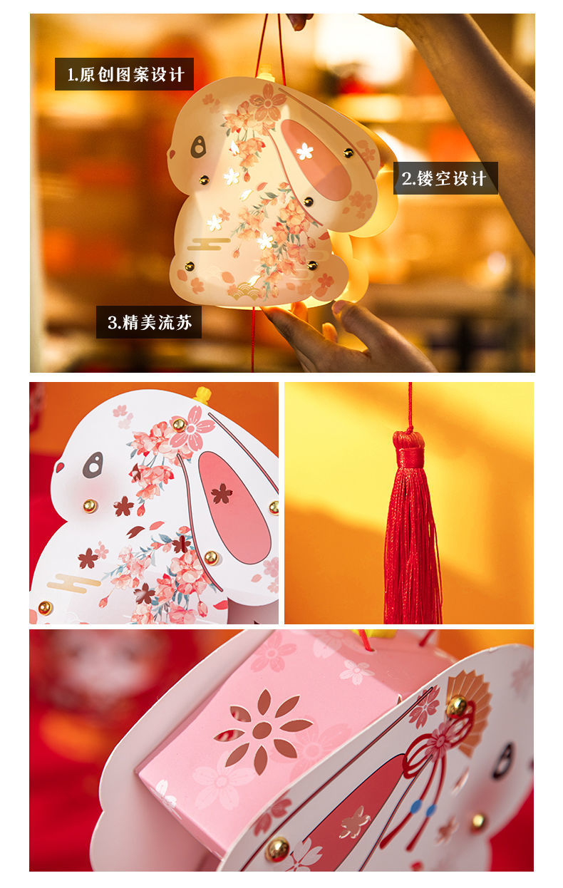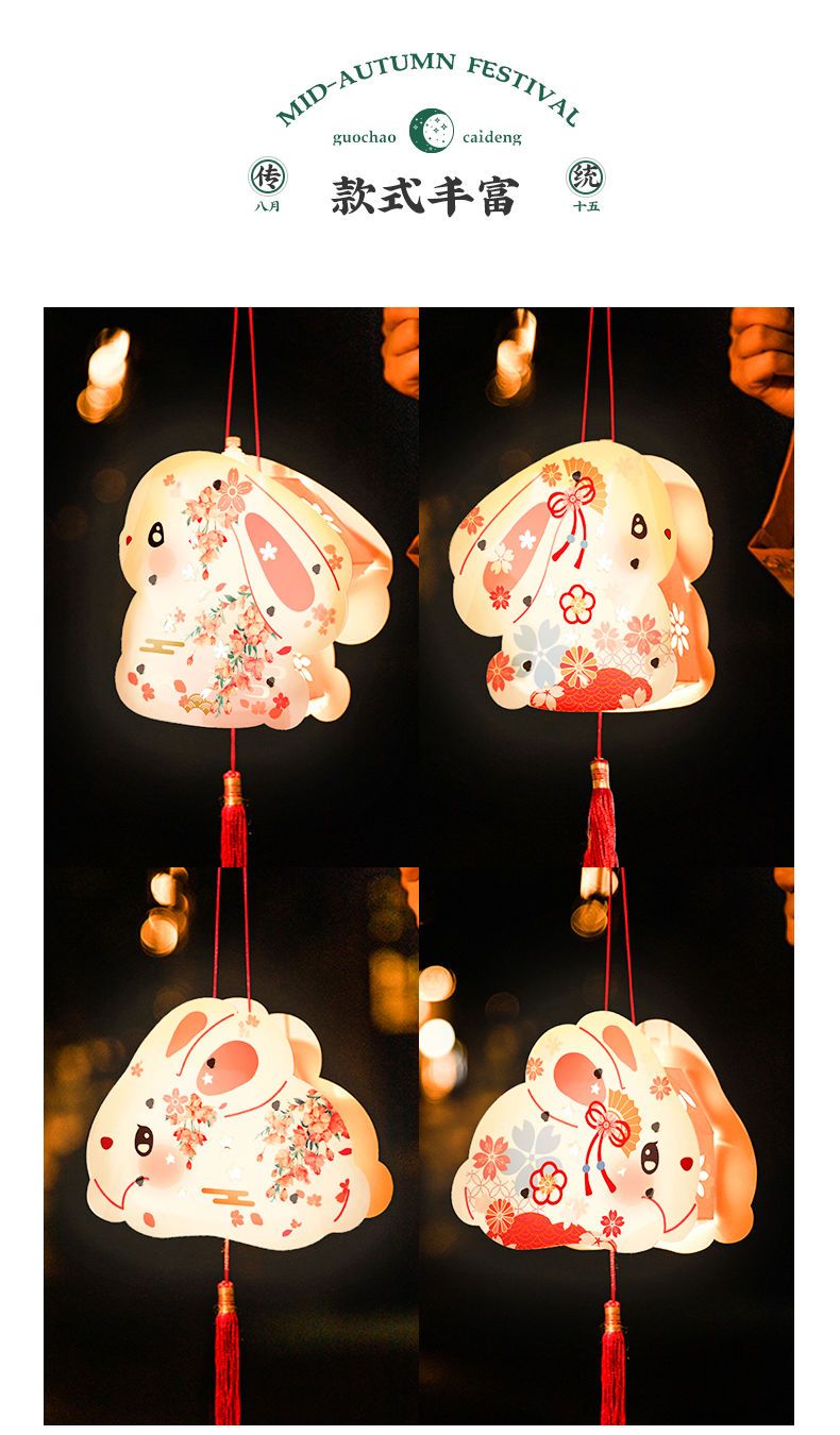 中秋节兔子花灯儿童手提灯笼古风diy手工制作材料发光汉服手持物