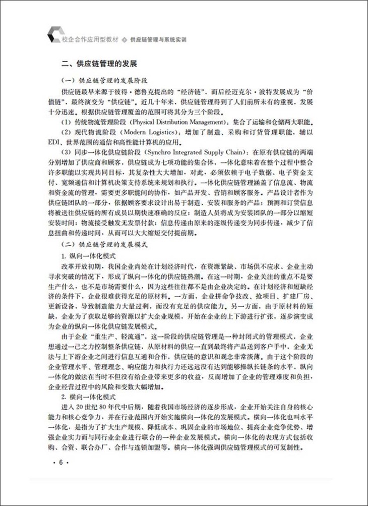《供应链管理与系统实训》分为三个部分:第一部分,供应链管理理论与流程;第二部分,供应链管理系统基础实训;第三部分,供应链管理系统进阶实训。全书共12章:1~8章着重对供应链管理的理论与流程、战略、构建与优化、运作策略(包括营销、采购、产品开发与生产管理、物流管理、信息管理)等方面进行系统的介绍;9~12章为供应链管理系统实训,包括供应链管理基础实训和进阶实训两个部分,其中基础实训部分主要是利用角色演练进行供应商管理、制造商管理、零售商管理、终端客户等基础性实训,进阶实训部分包括供应链管理技术实训、供应链管理业务操作实训、企业供应链管理流程优化实训。
