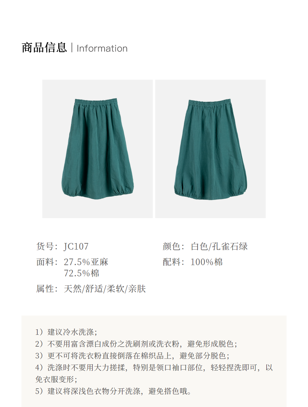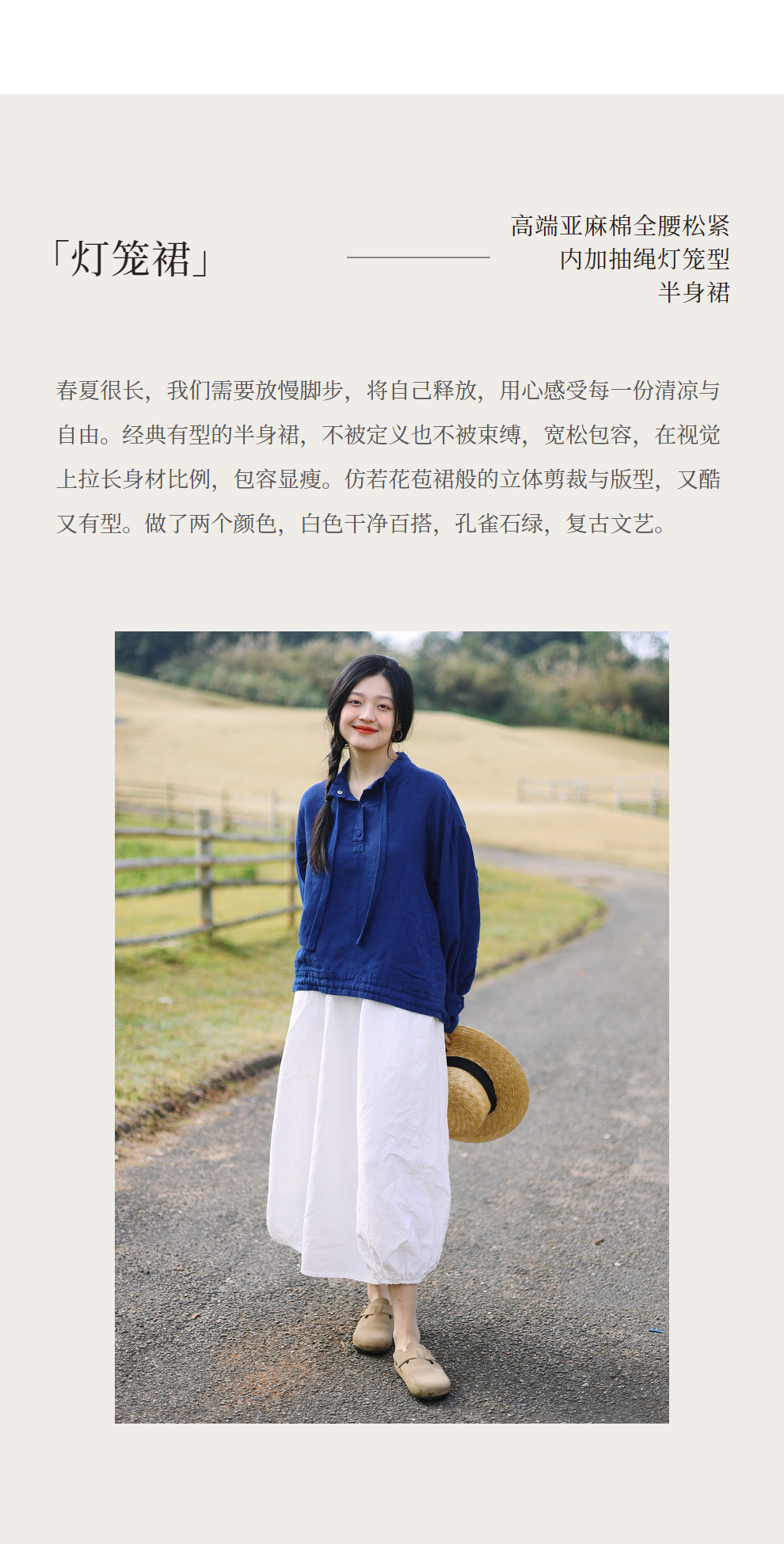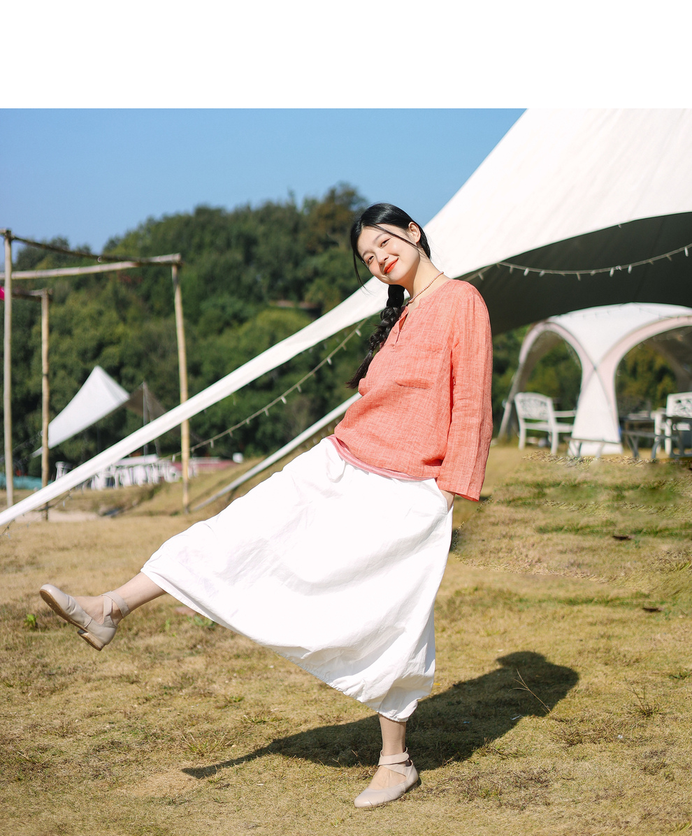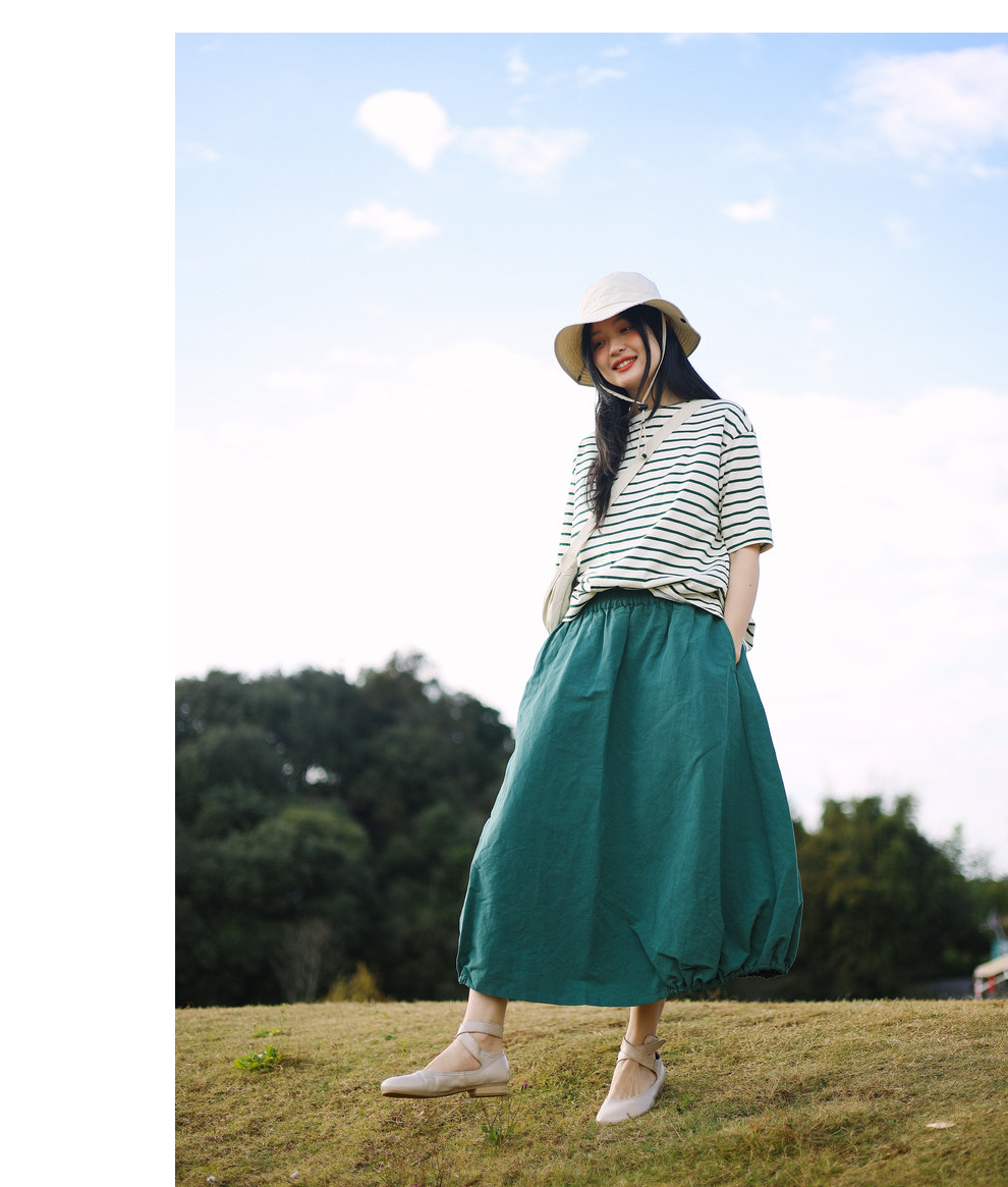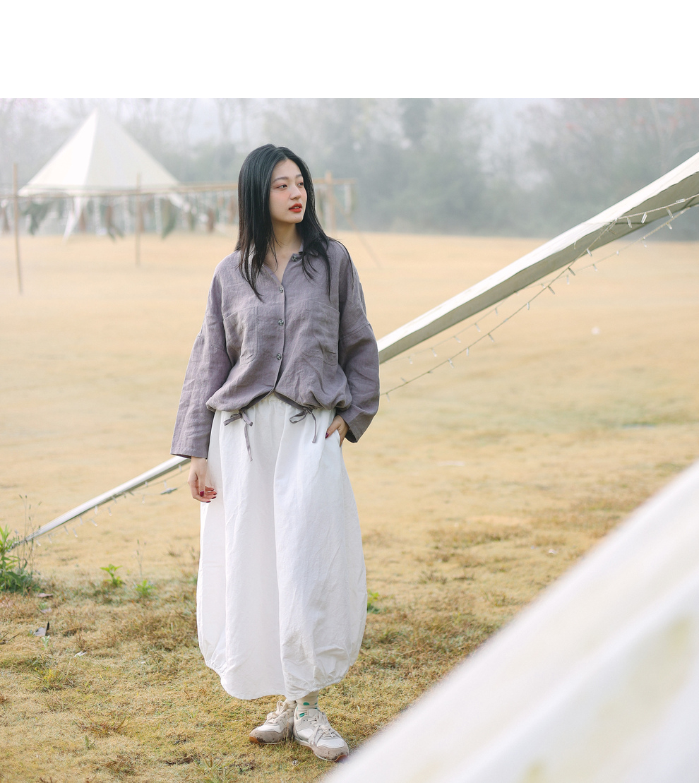 绽放107朵/【青山係·灯笼裙】高精密酵素亚麻棉文艺花苞裙半身裙
