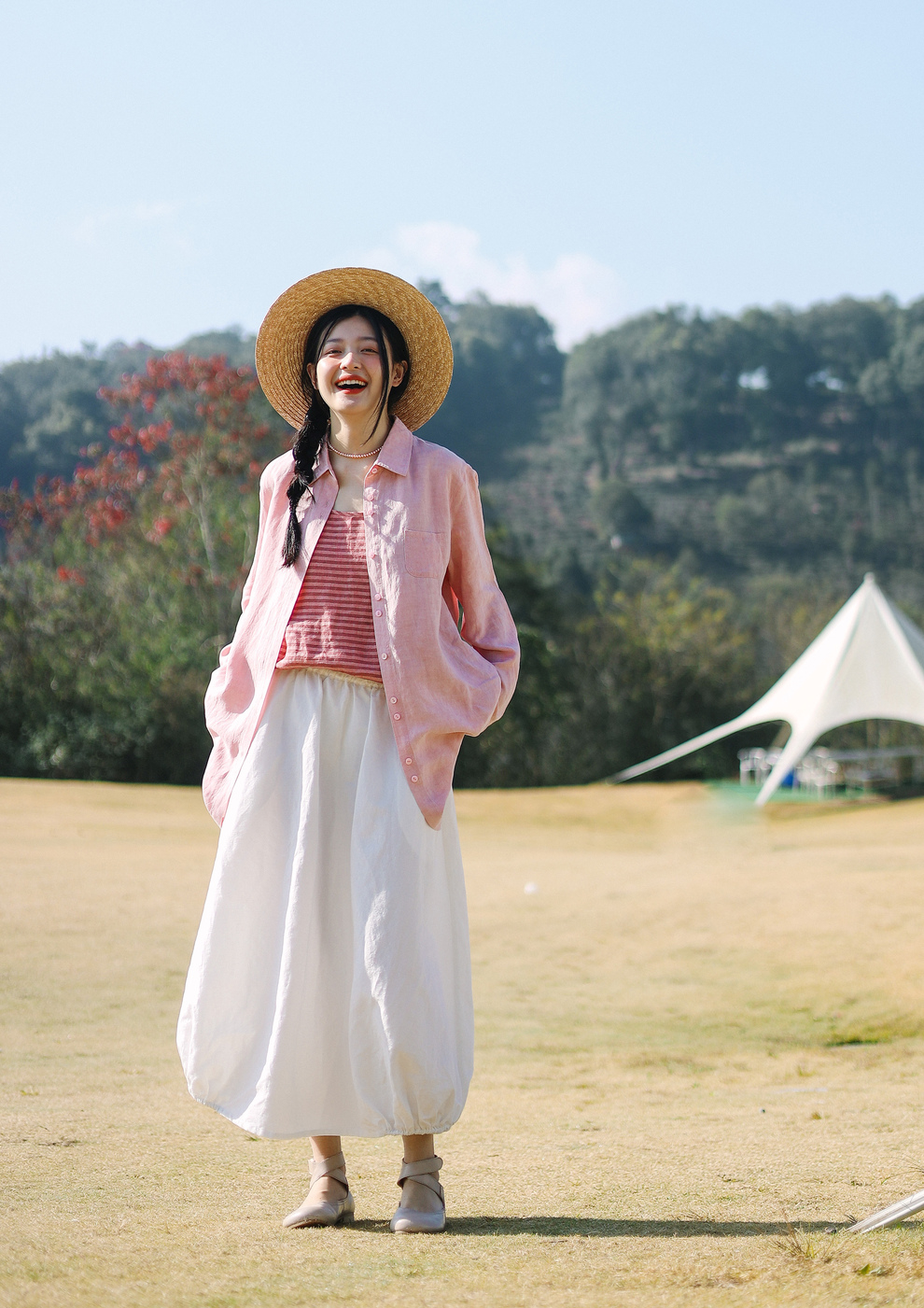 以天然亚麻为载体,融合热烈色彩与自在剪裁为身在城市、心怀远方的女性提供兼具美学与舒适的旅行着装