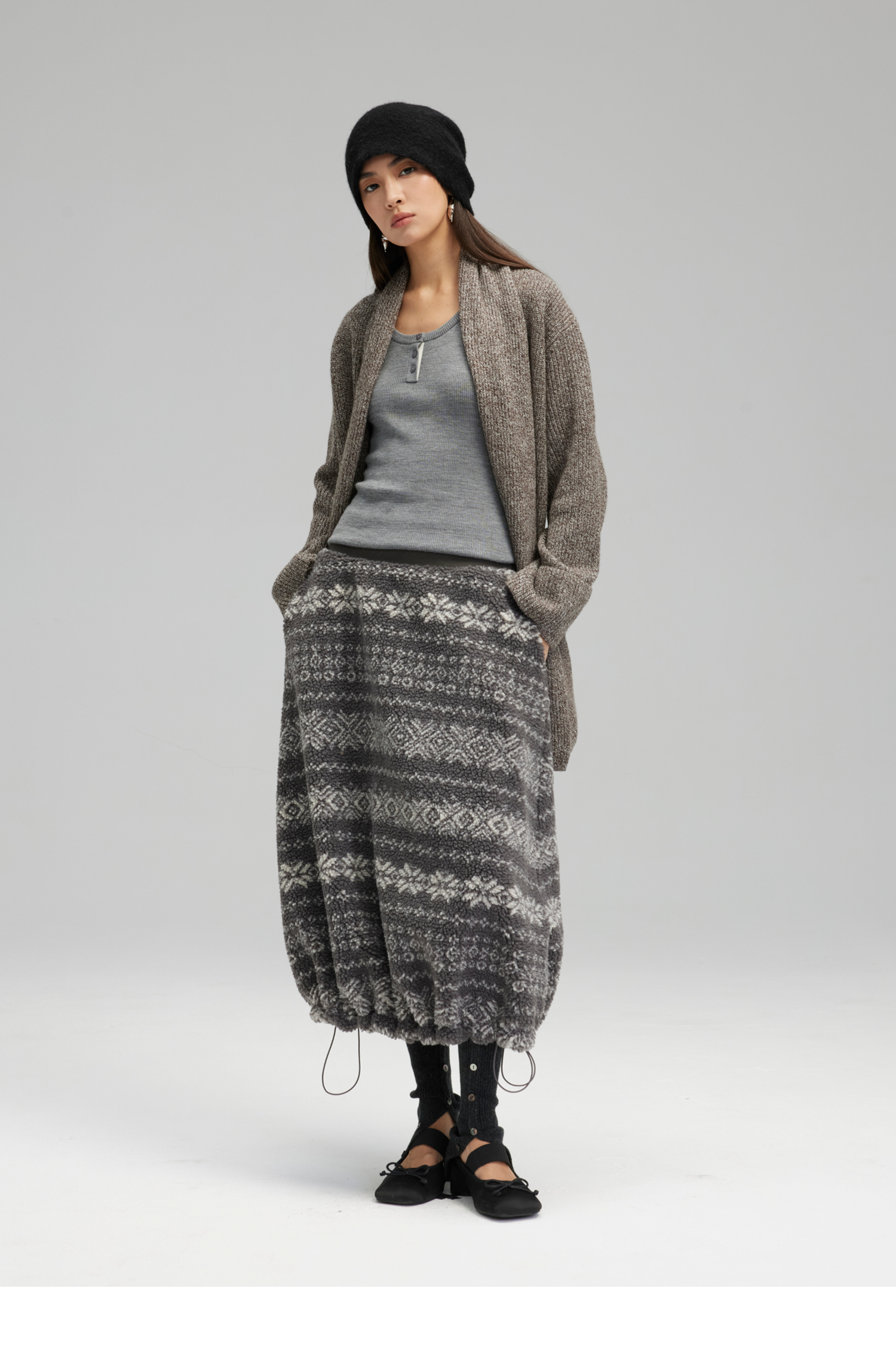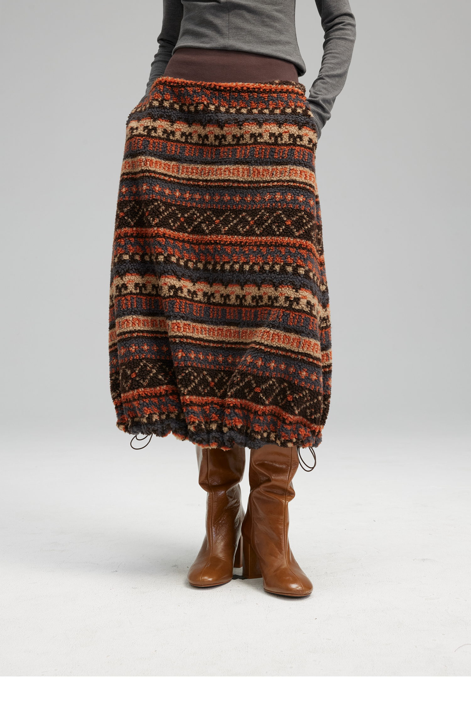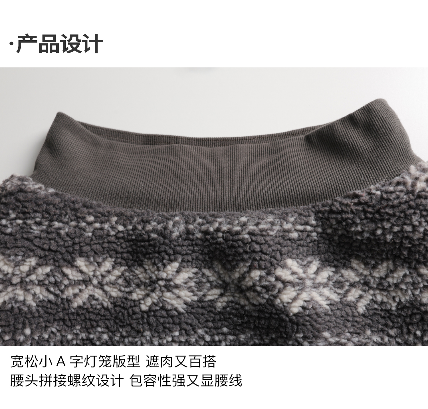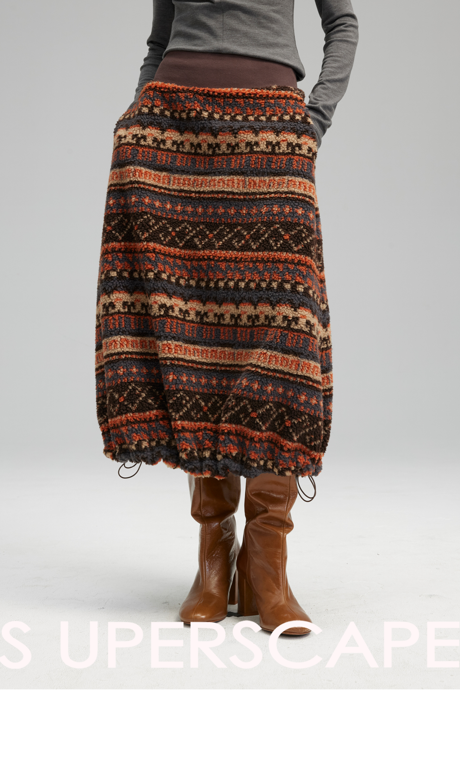 素舶 费尔岛摇粒绒罗纹松紧腰下摆抽绳保暖长半裙