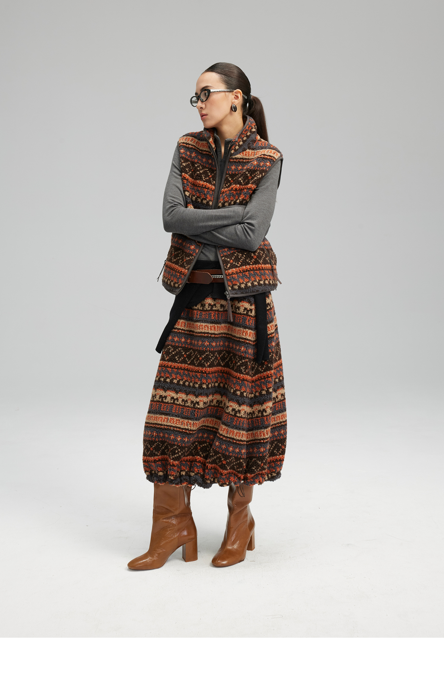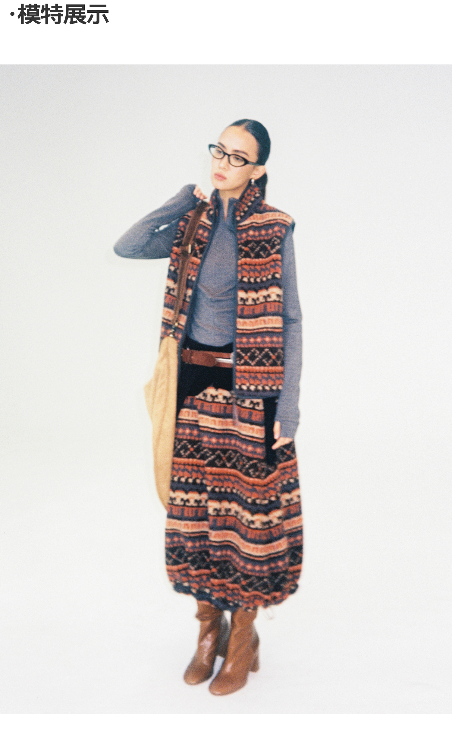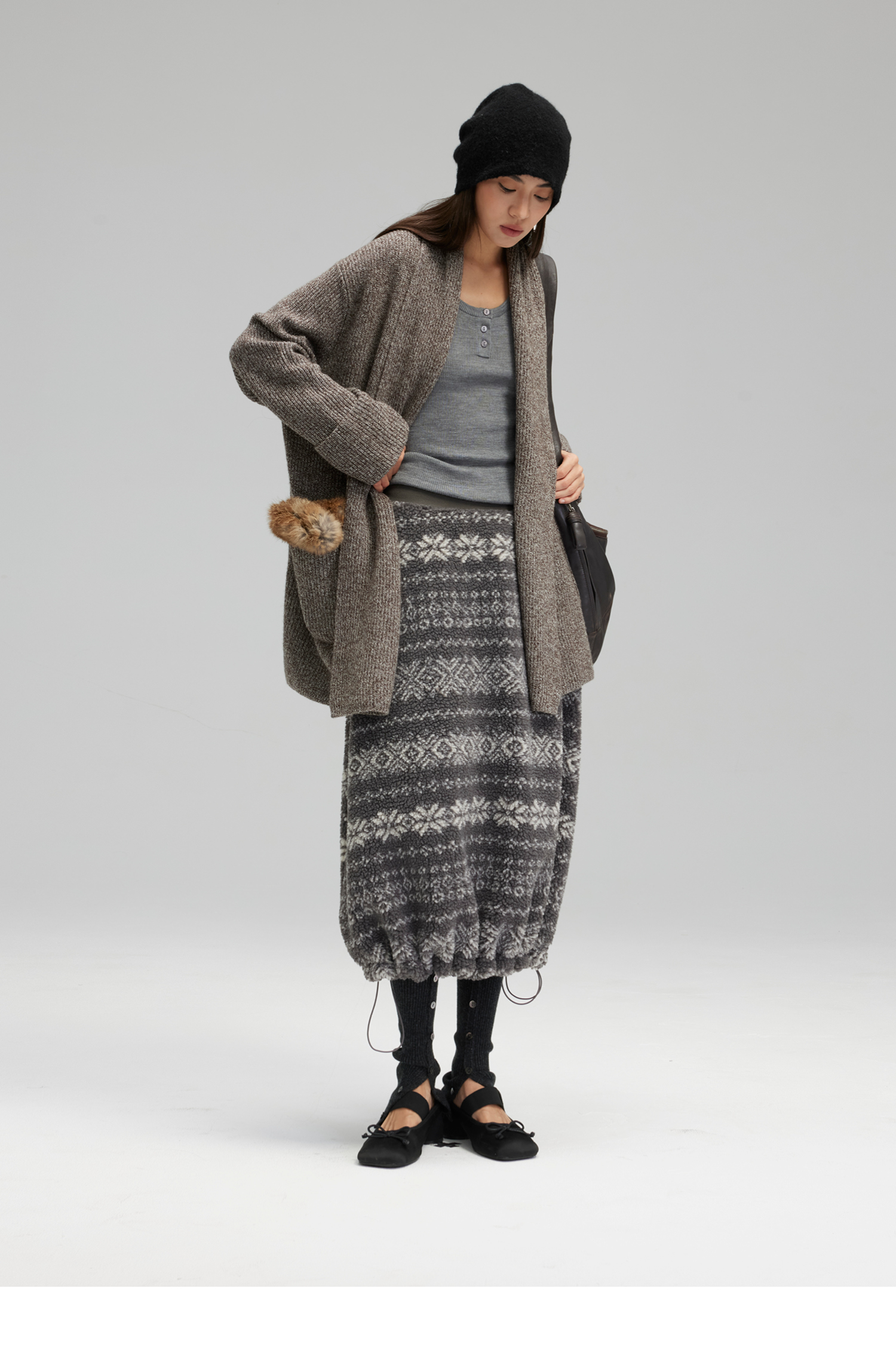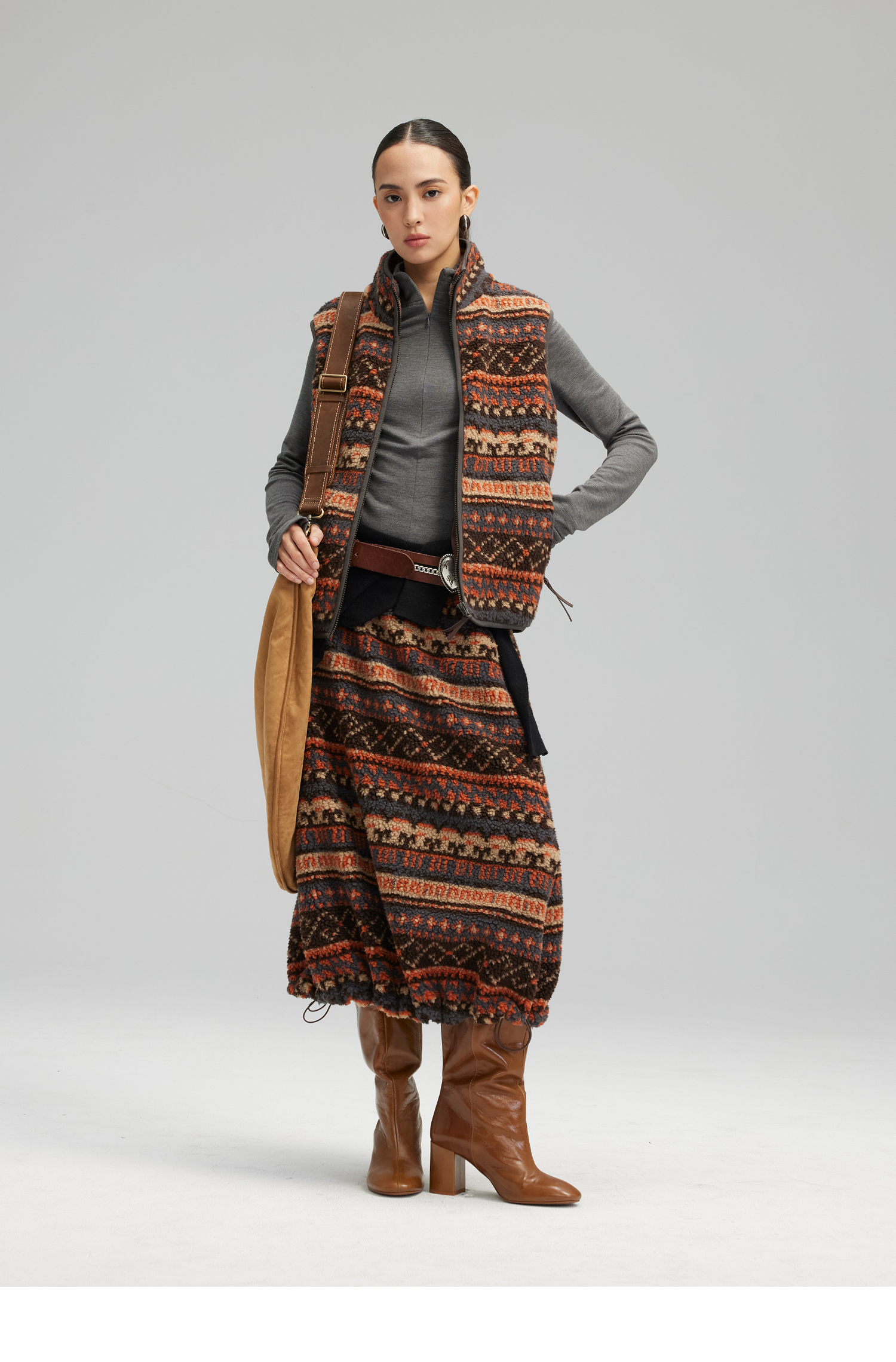 素舶 费尔岛摇粒绒罗纹松紧腰下摆抽绳保暖长半裙
