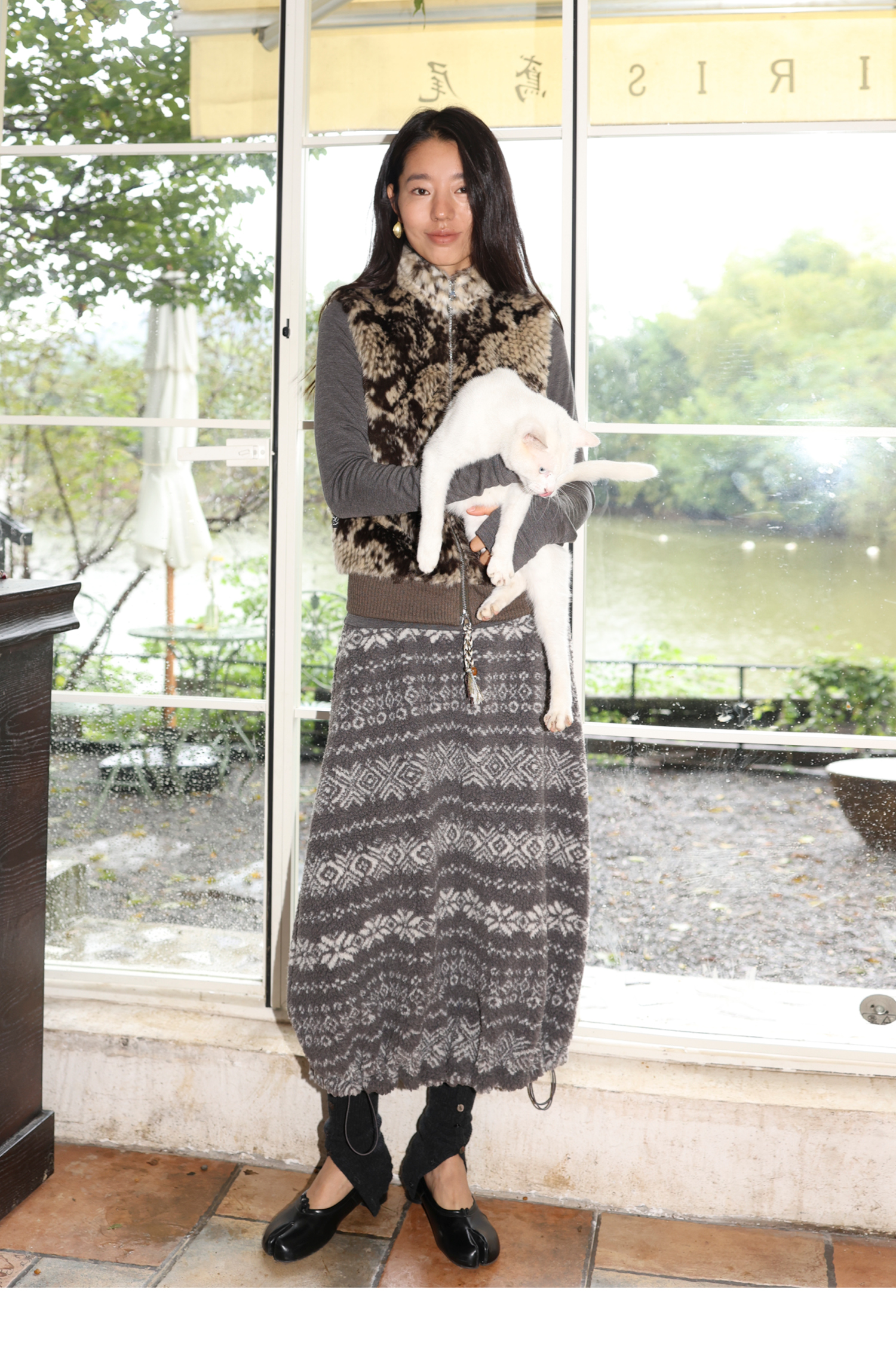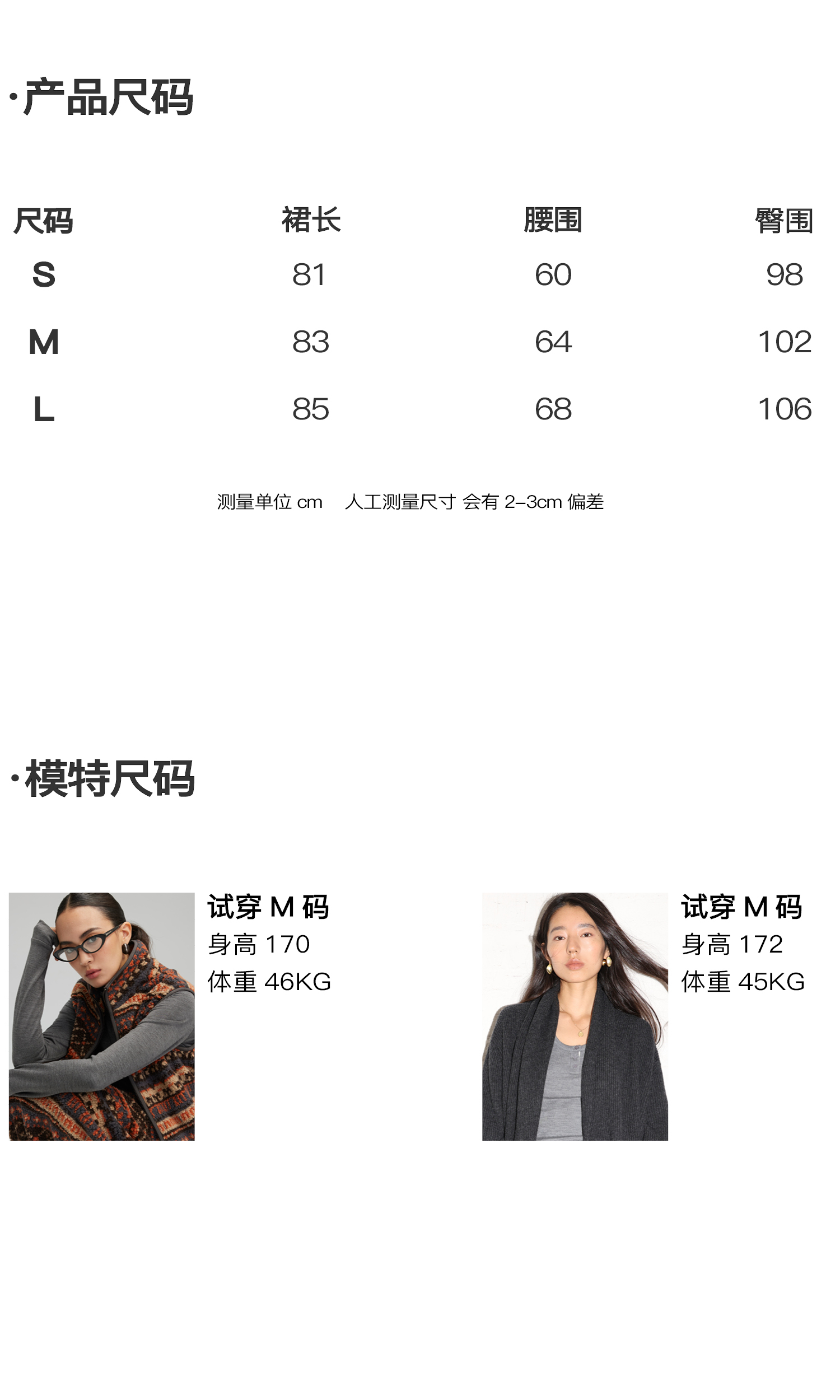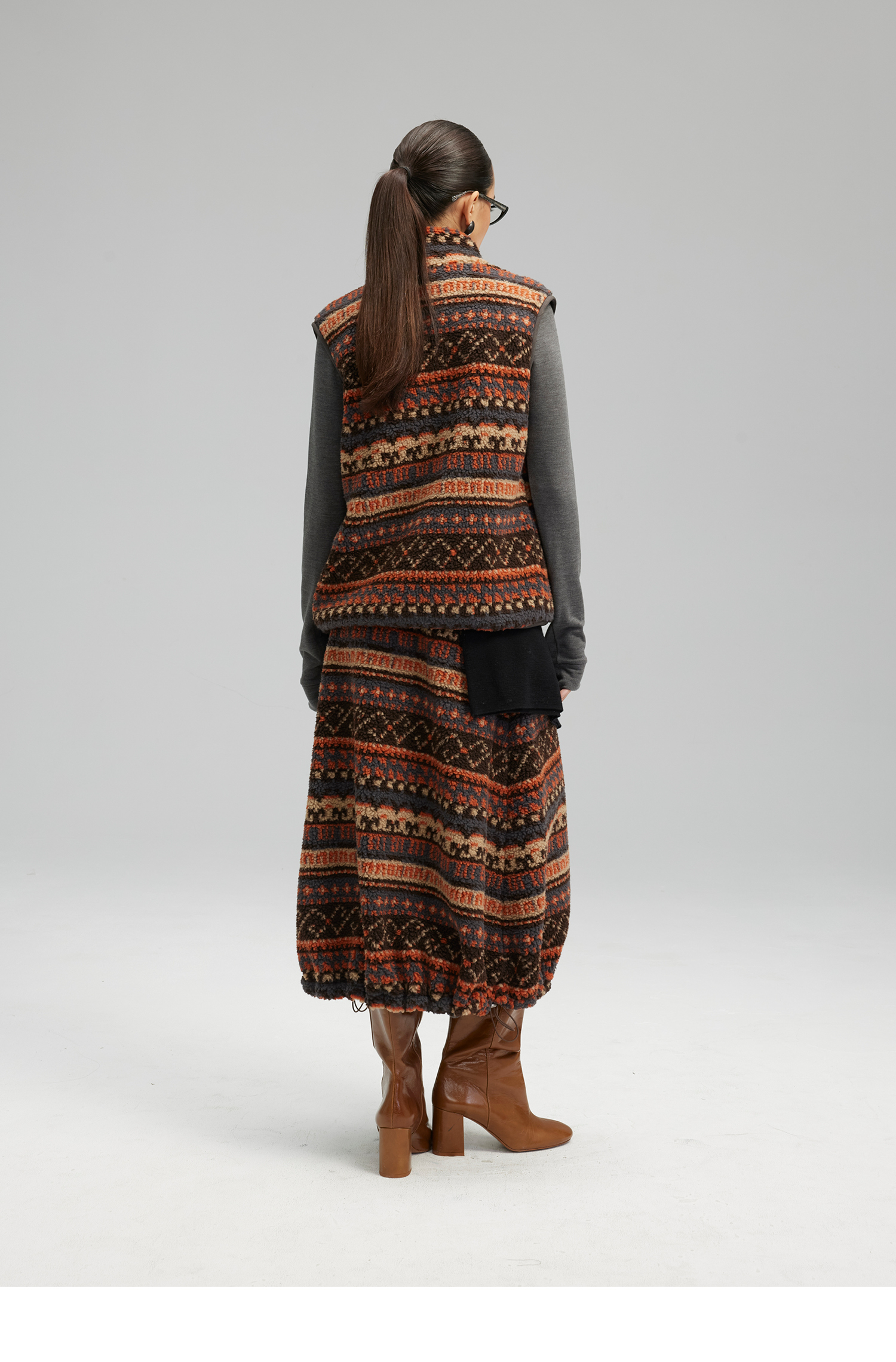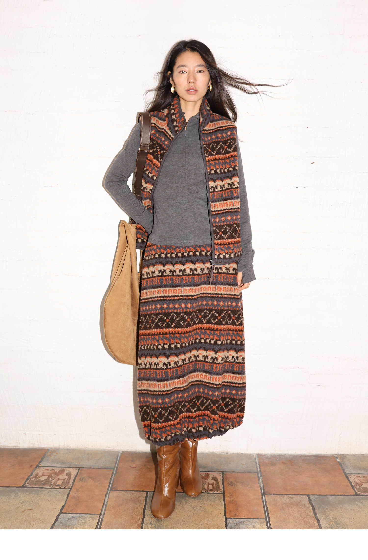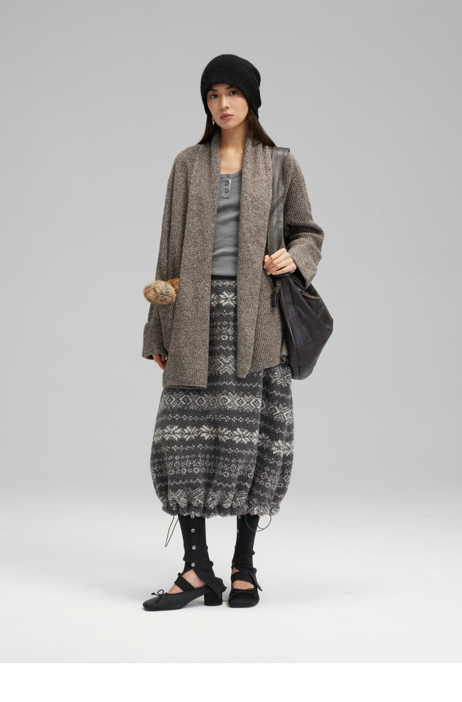 素舶 费尔岛摇粒绒罗纹松紧腰下摆抽绳保暖长半裙