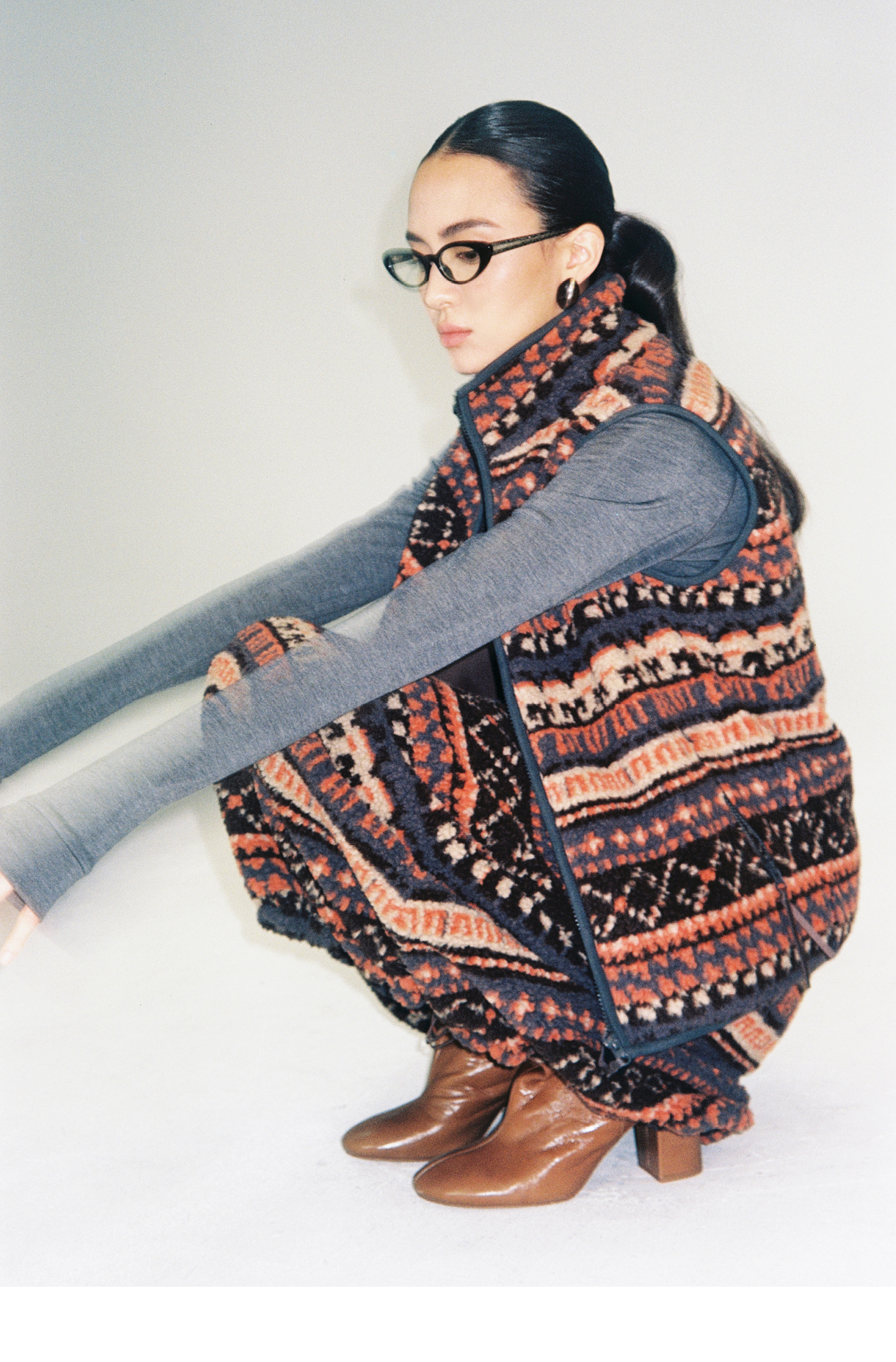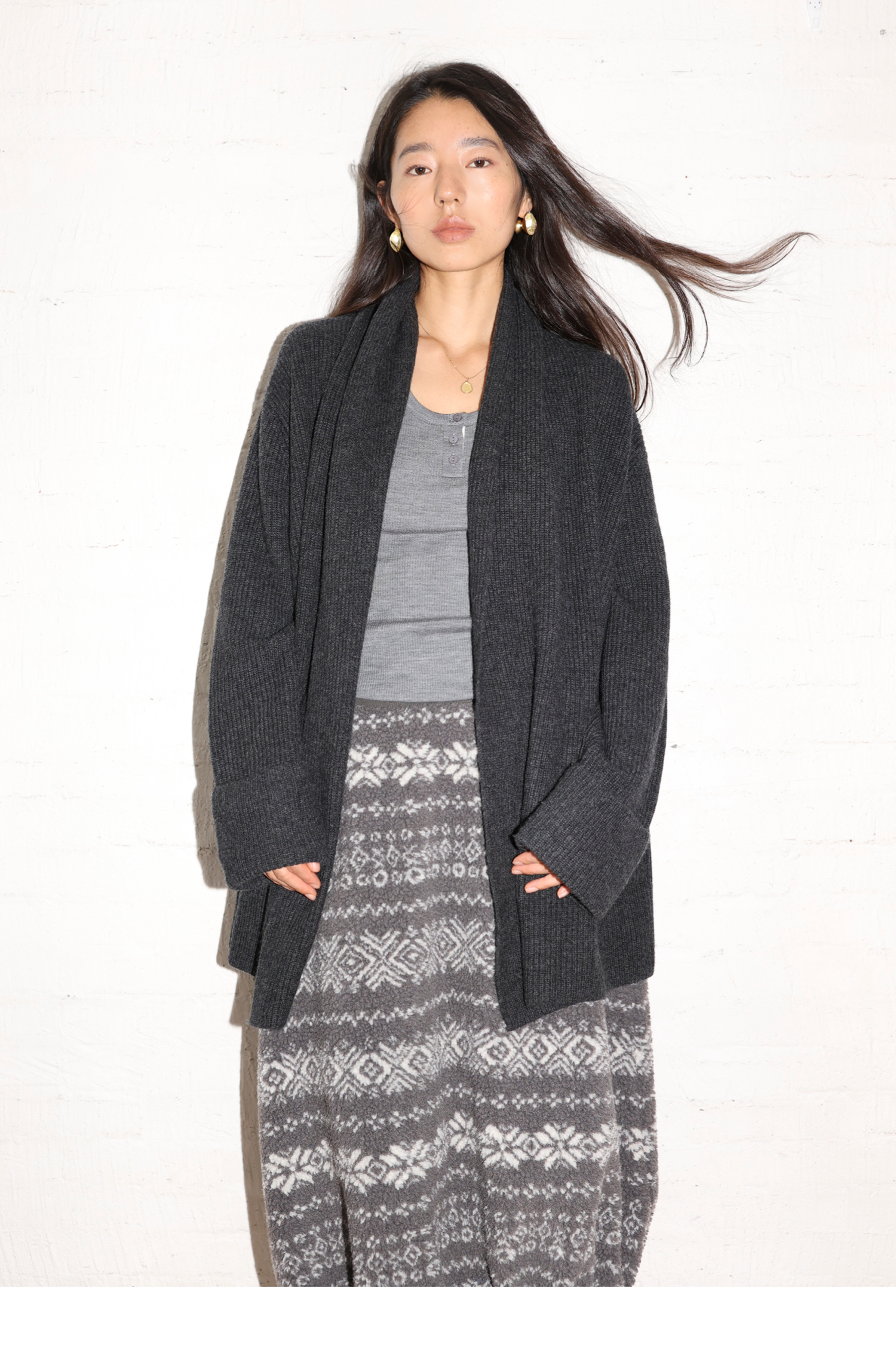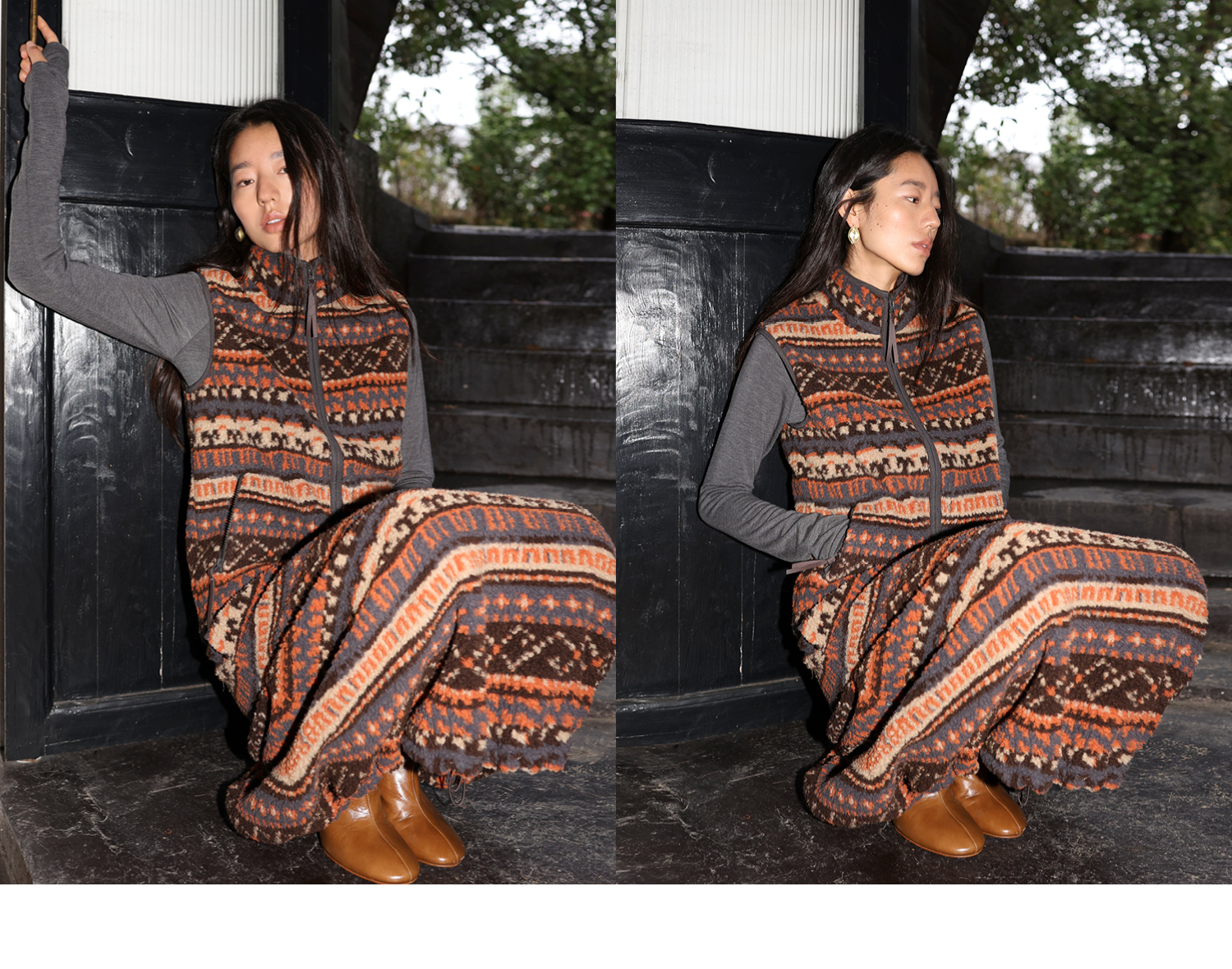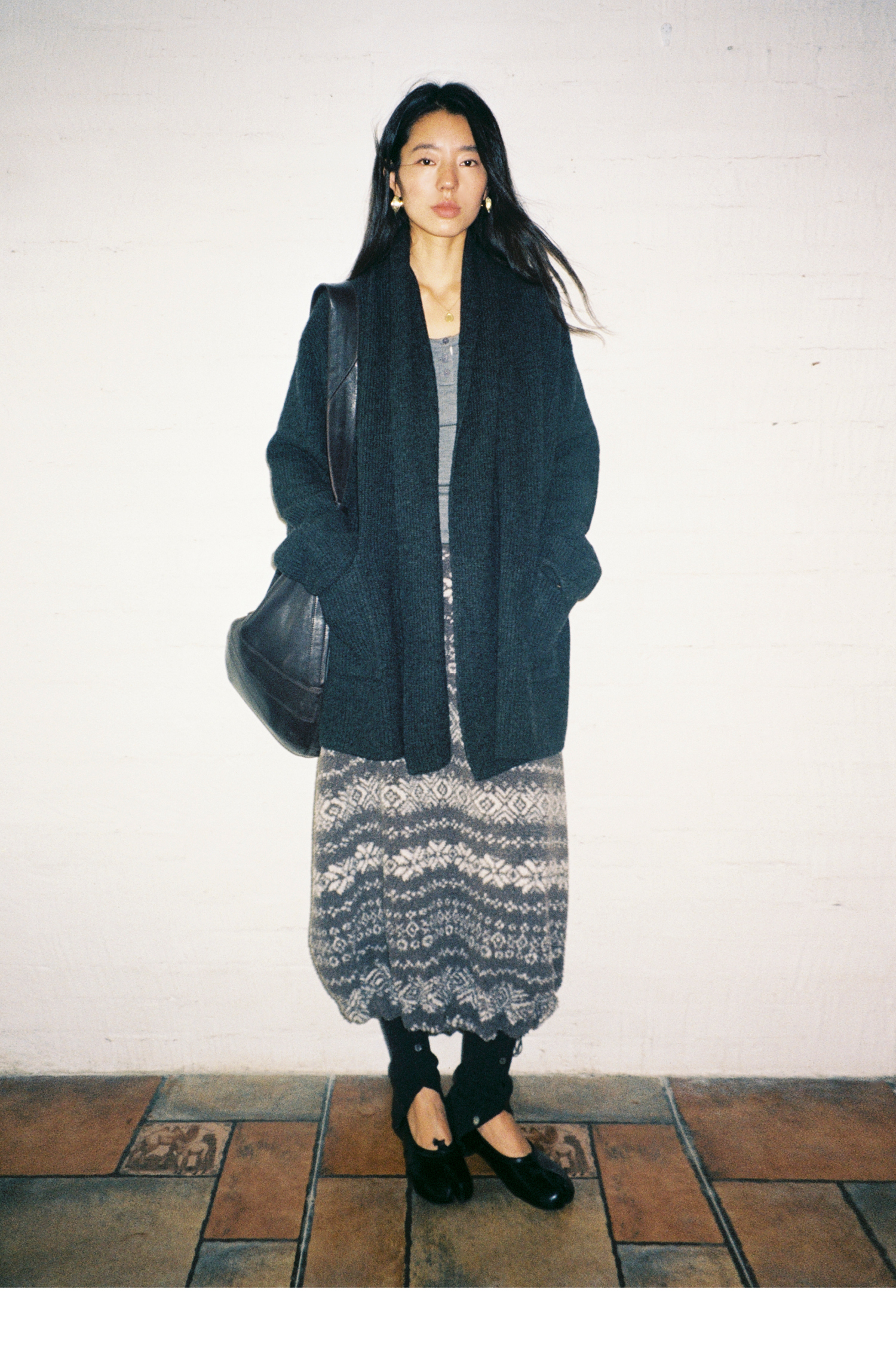 素舶 费尔岛摇粒绒罗纹松紧腰下摆抽绳保暖长半裙