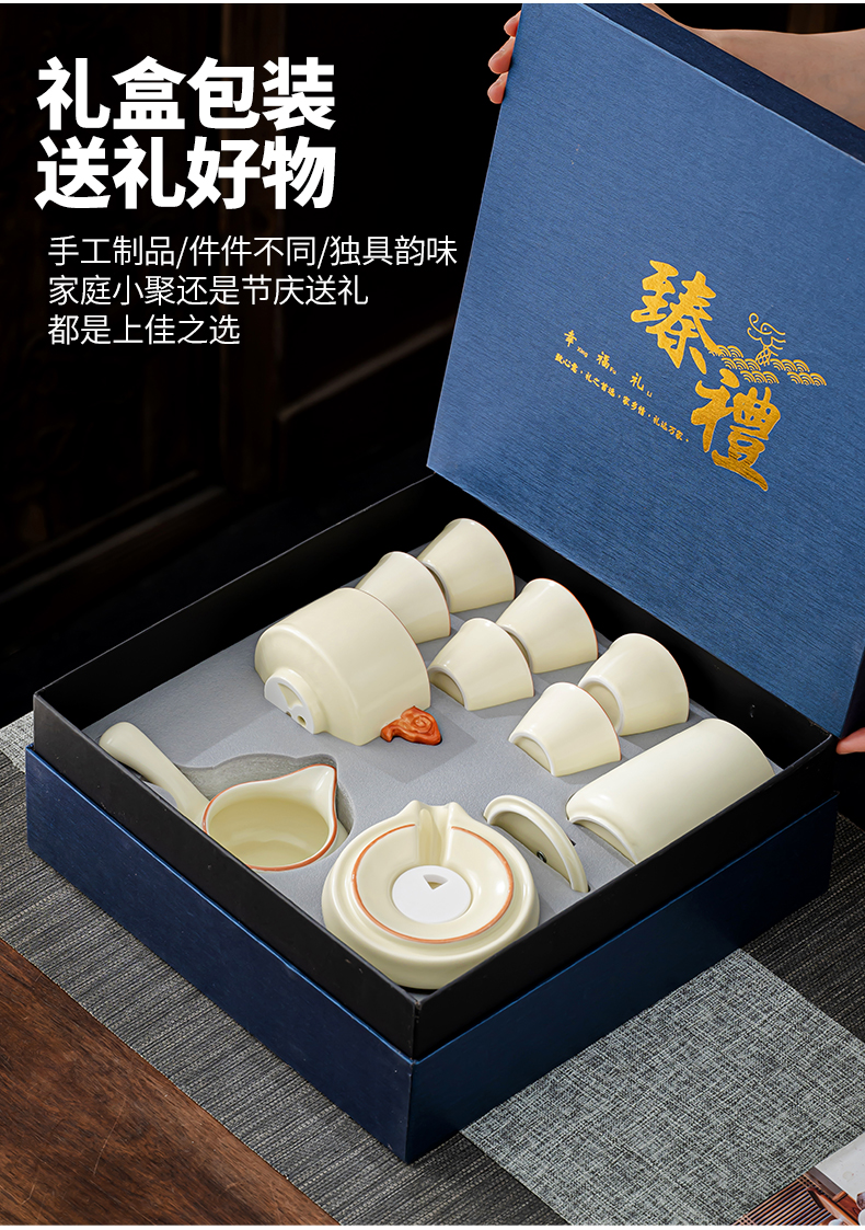 礼盒套装【汝窑懒人茶具套装】简约 商务 家用 品味百态人生!