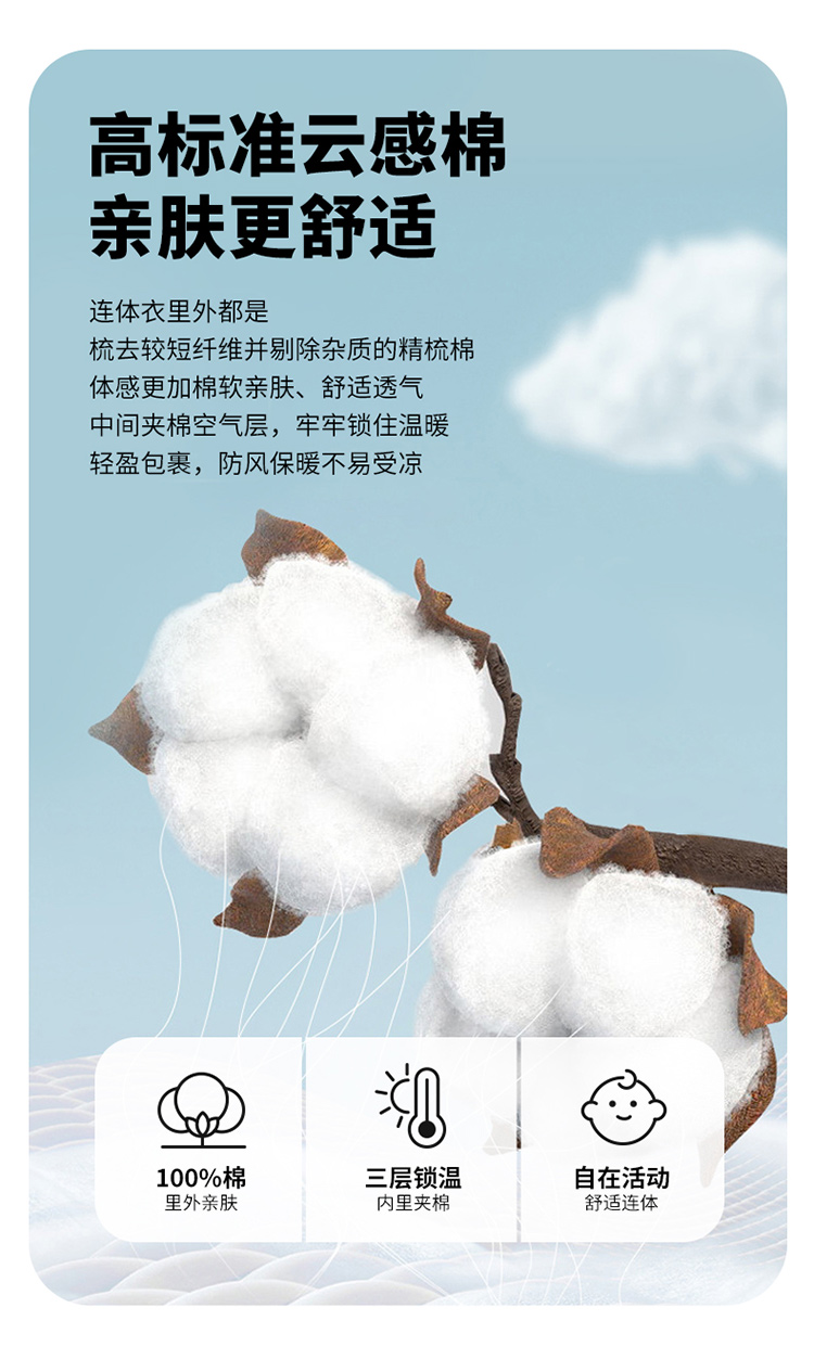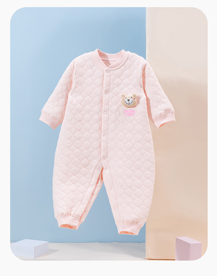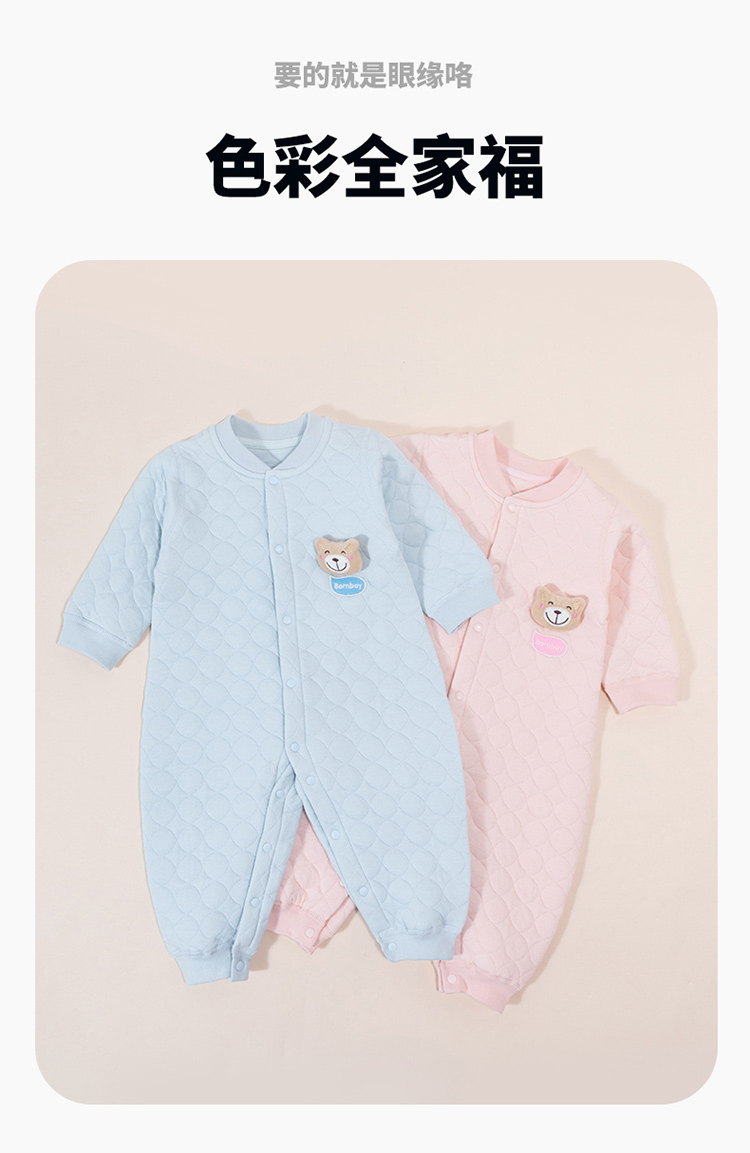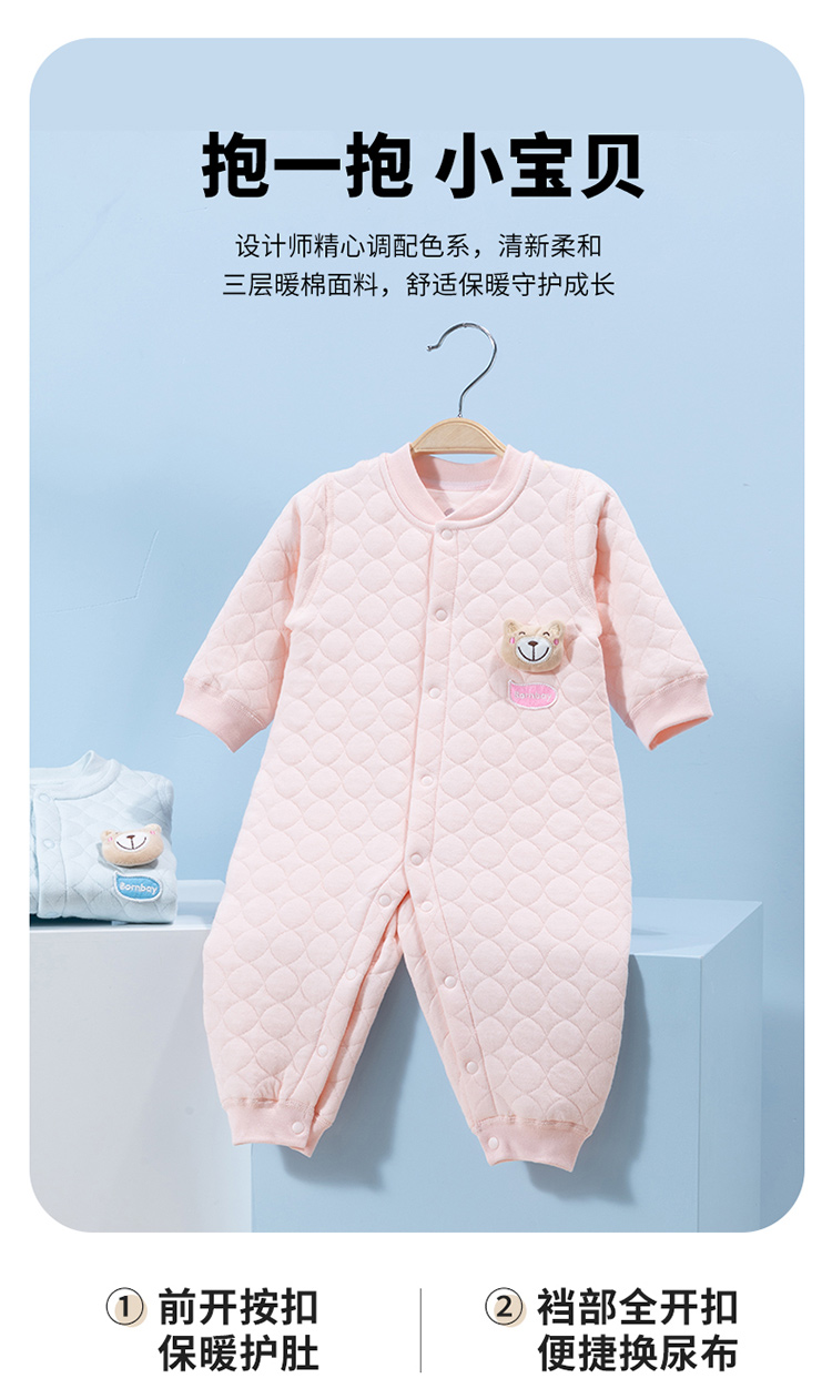 贝贝怡童装初生宝宝连体衣夹棉秋冬季和尚服家居爬服婴幼儿保暖衣ZB4CL017