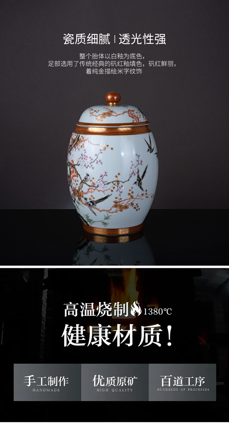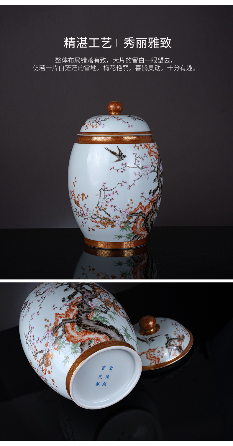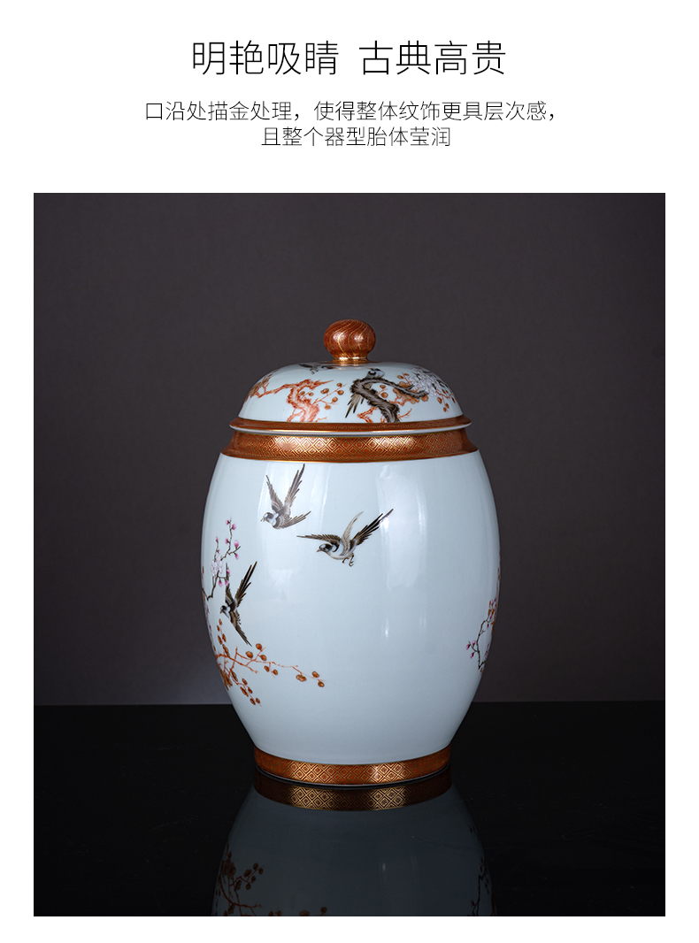 粉彩矾红描金喜上眉梢盖罐
