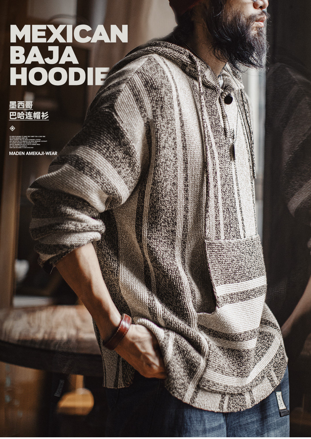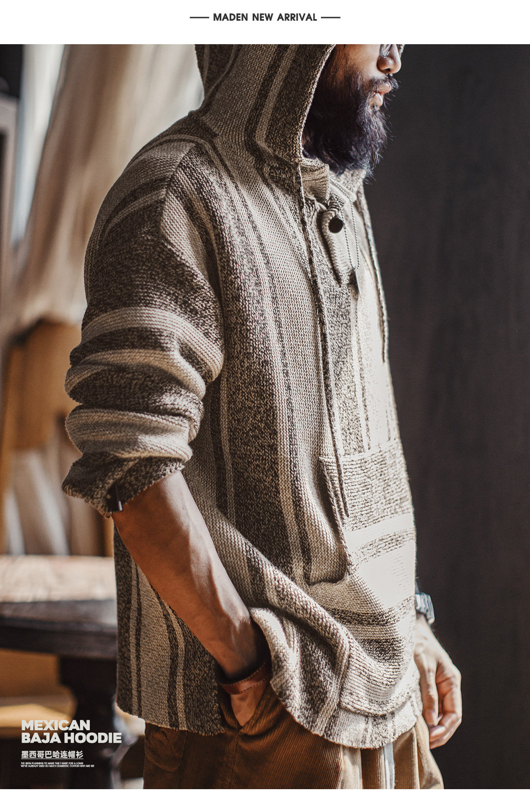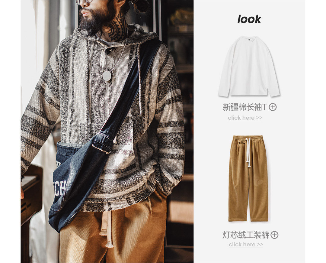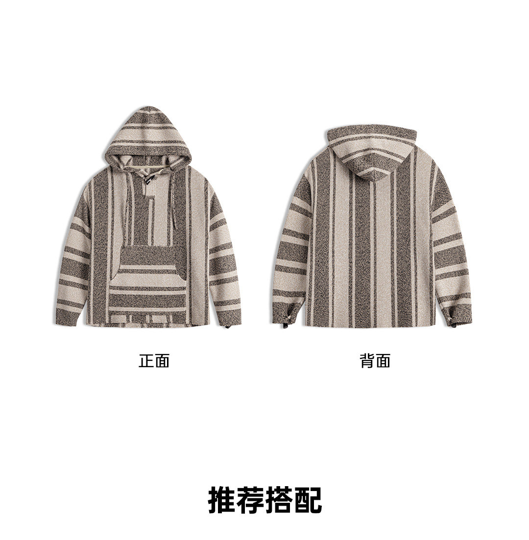 马登工装美式复古巴哈半开襟连帽卫衣套头针织衫薄款垂感外套男春