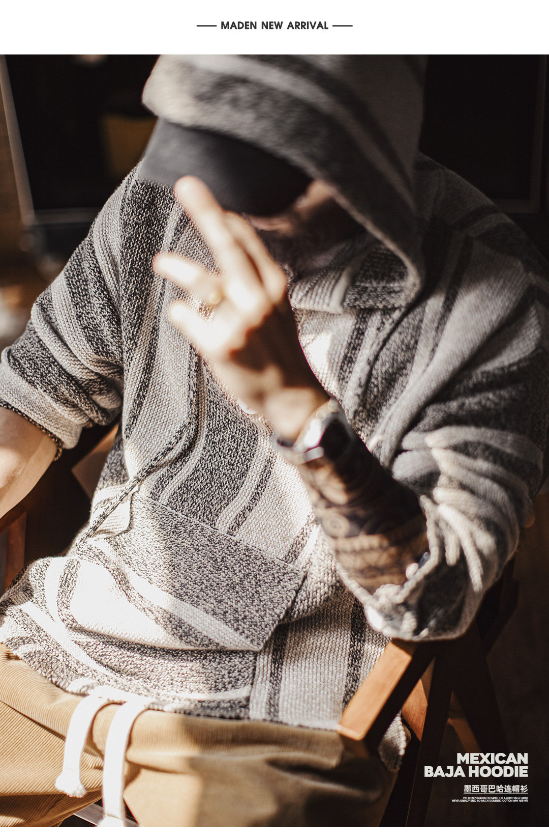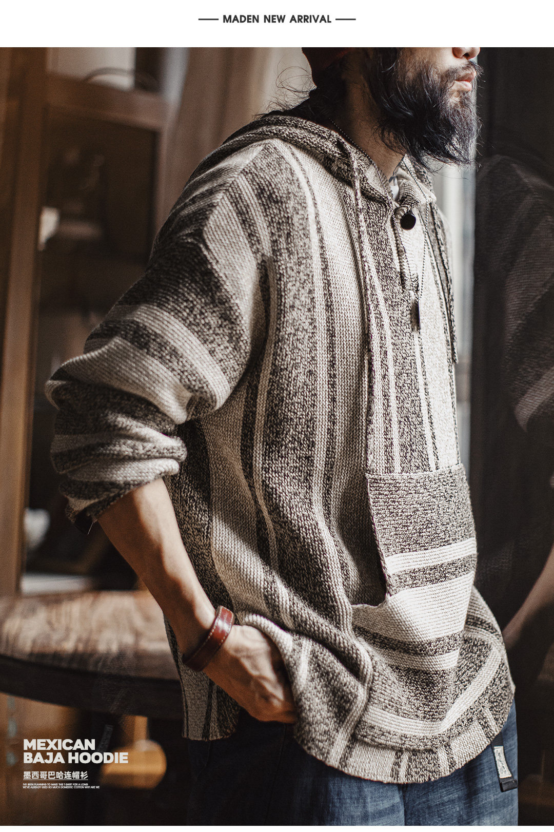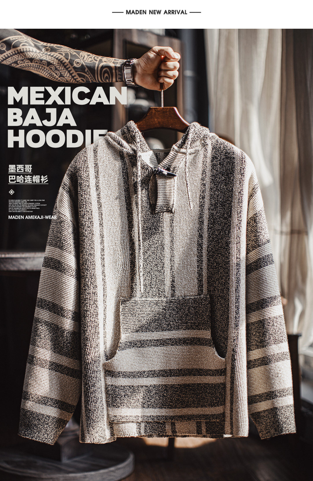 马登工装美式复古巴哈半开襟连帽卫衣套头针织衫薄款垂感外套男春