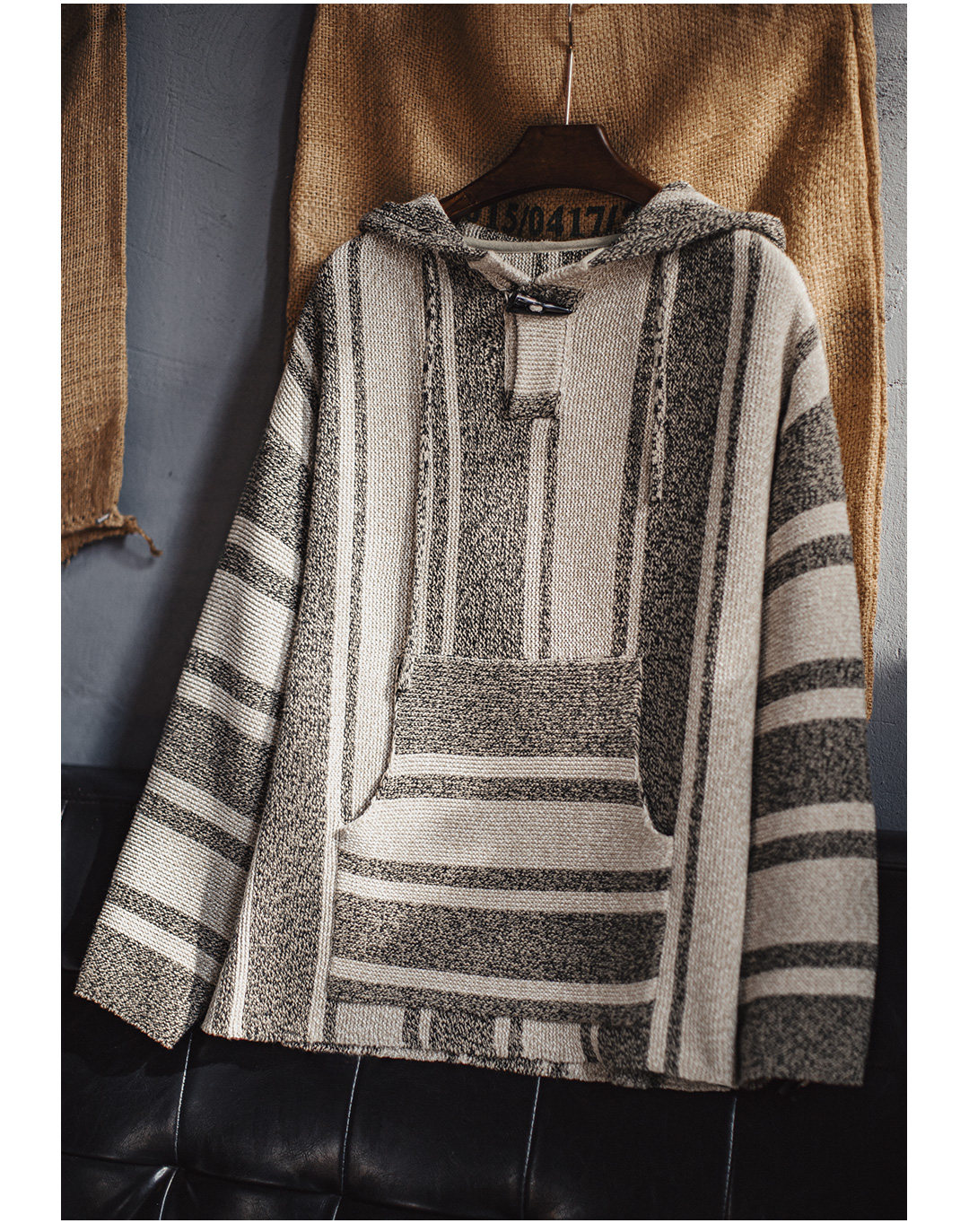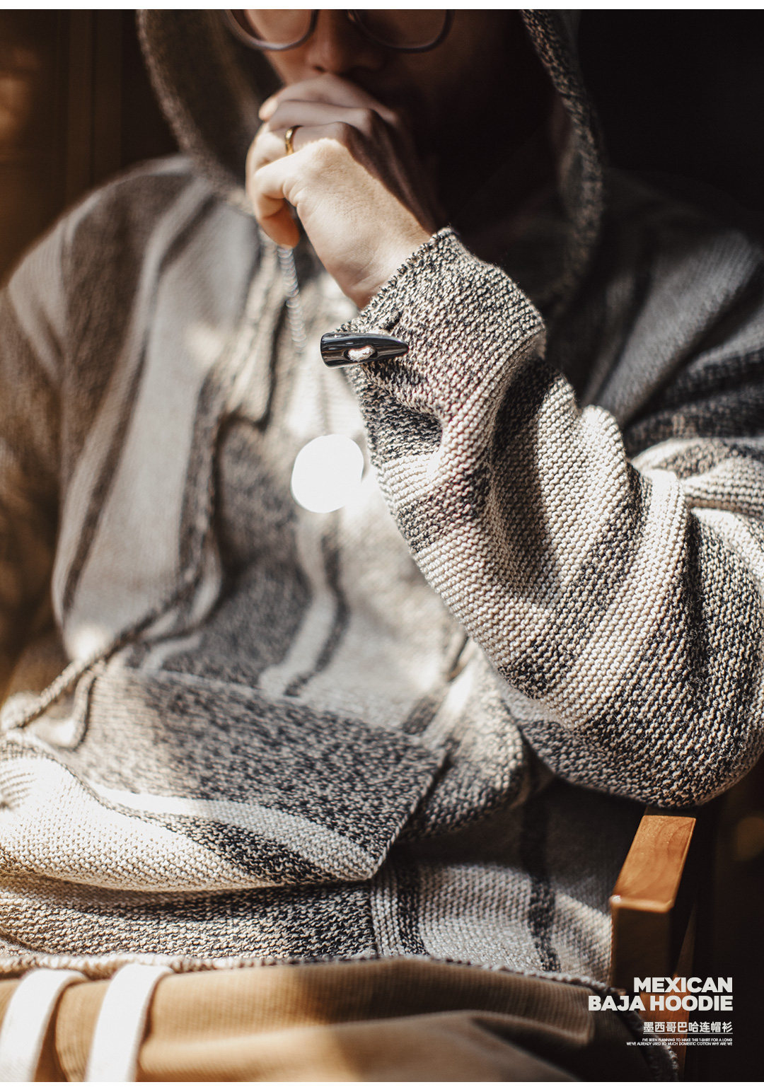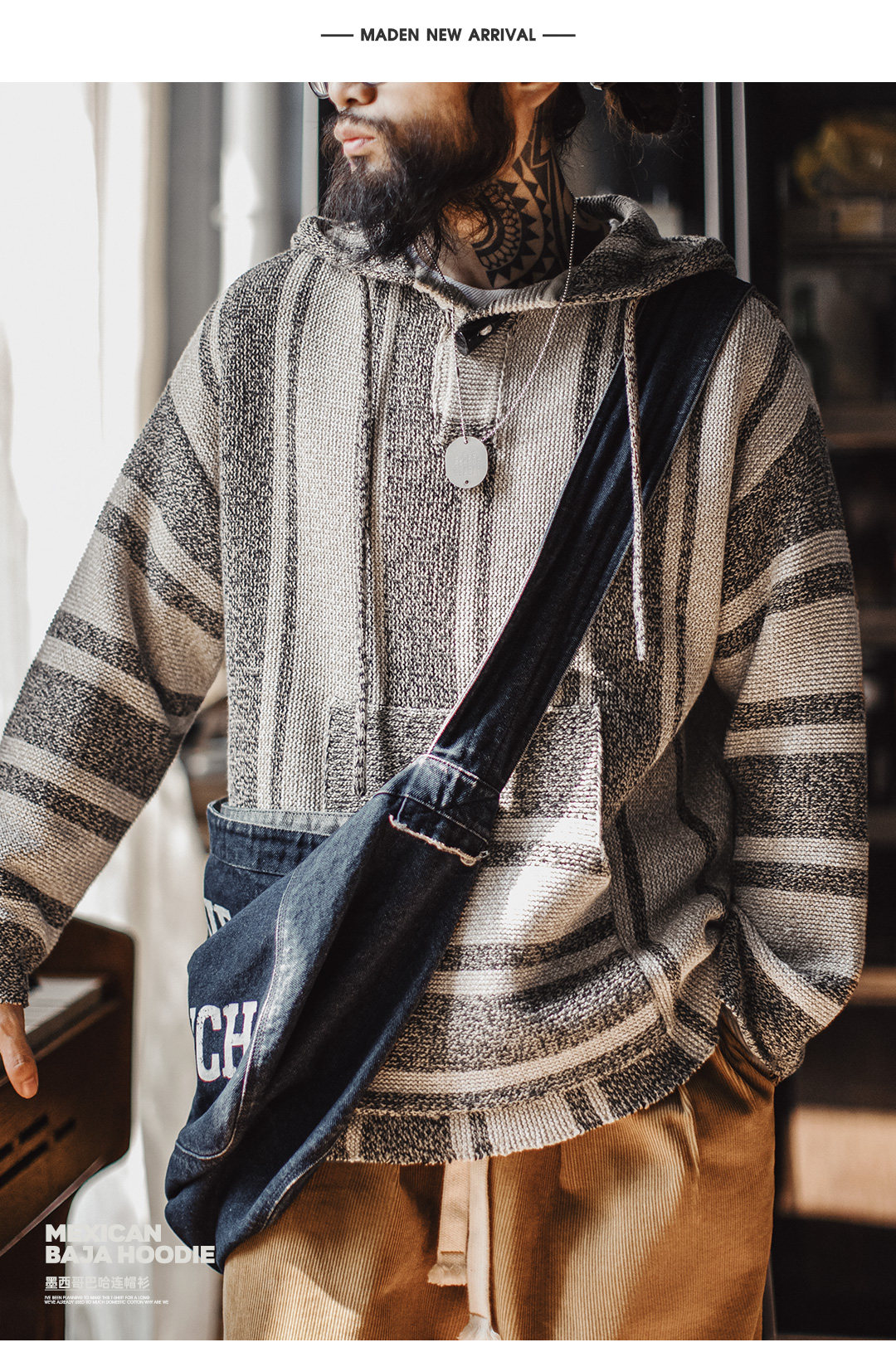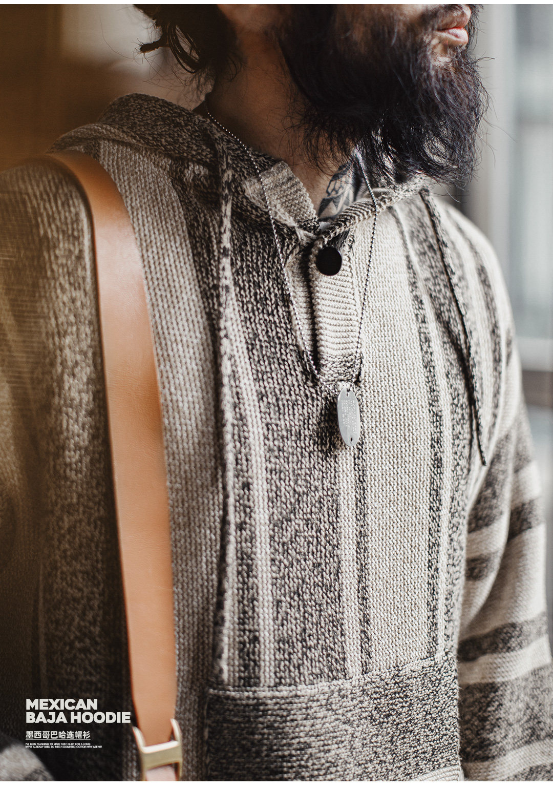 马登工装美式复古巴哈半开襟连帽卫衣套头针织衫薄款垂感外套男春