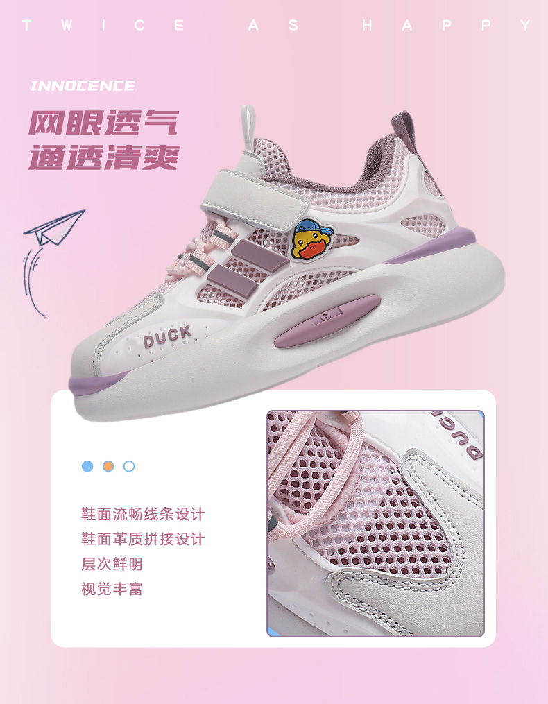 G.DUCK小黄鸭男童网鞋夏季单网面透气儿童运动鞋春秋新款软底女童休闲鞋QCSM003.25-36