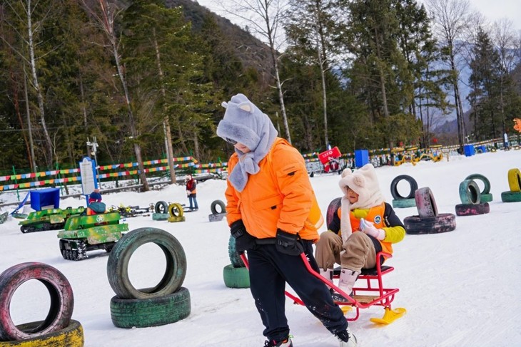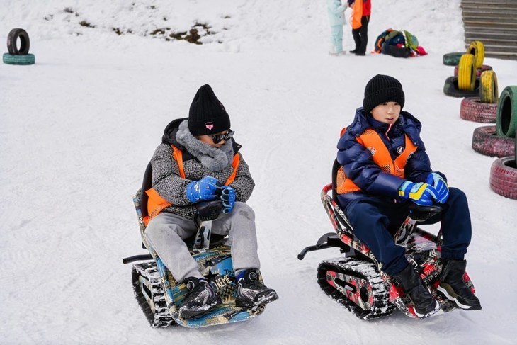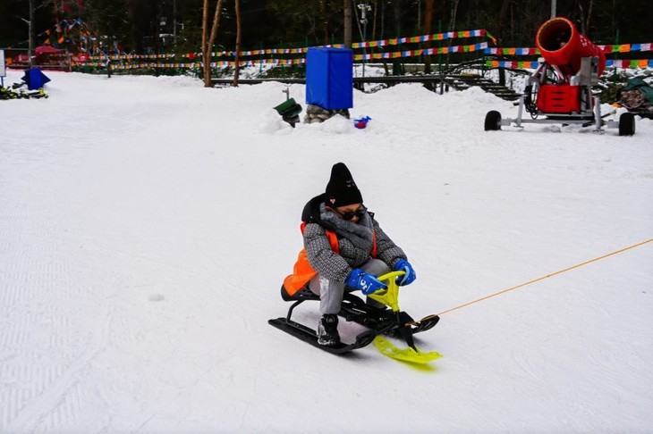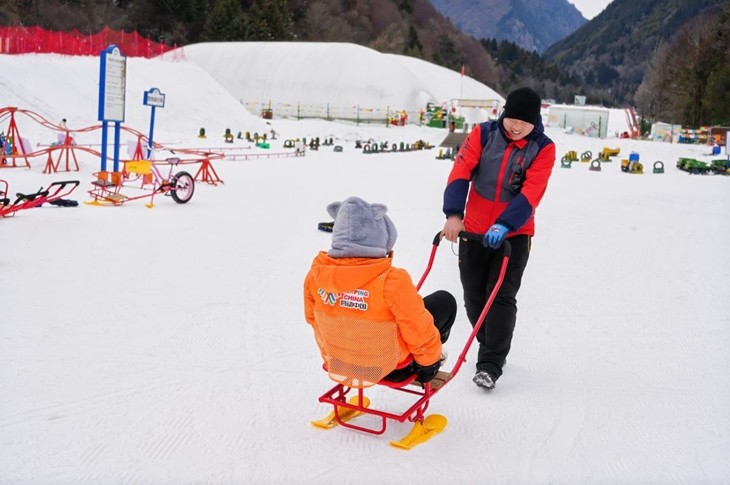 雪场里有碰碰球、雪地自行车、雪地战车、小猪快跑