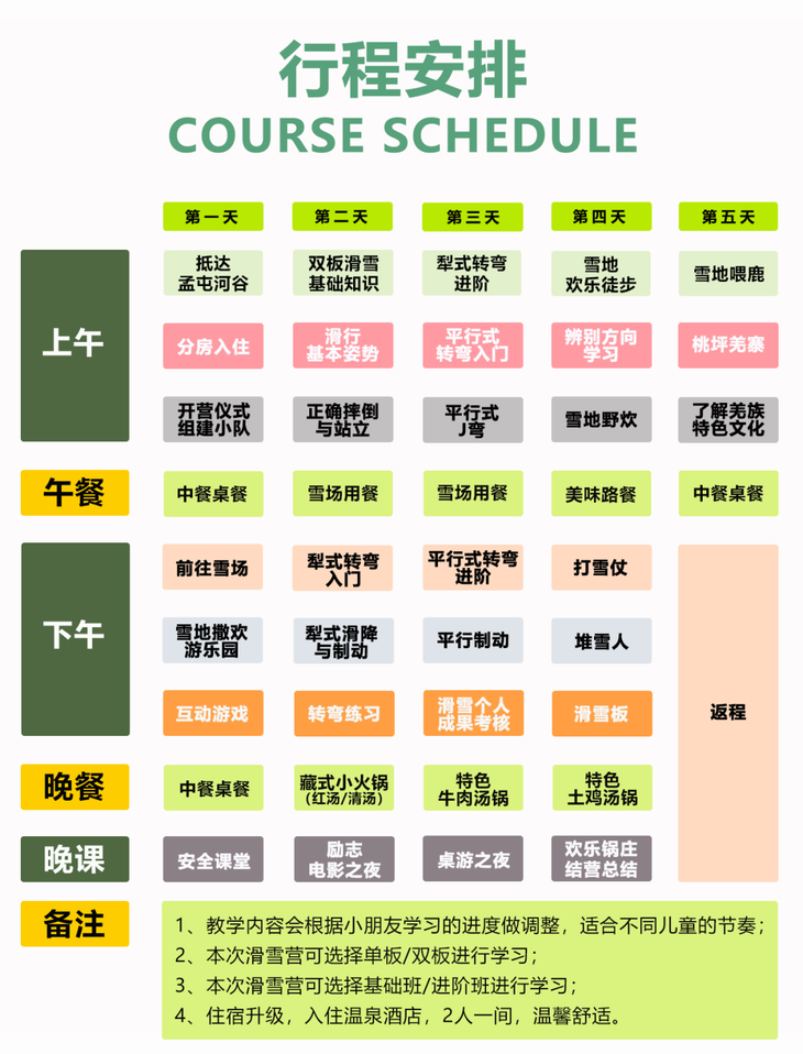 够专业/细节/安全上雪前对每个孩子进行等级测评