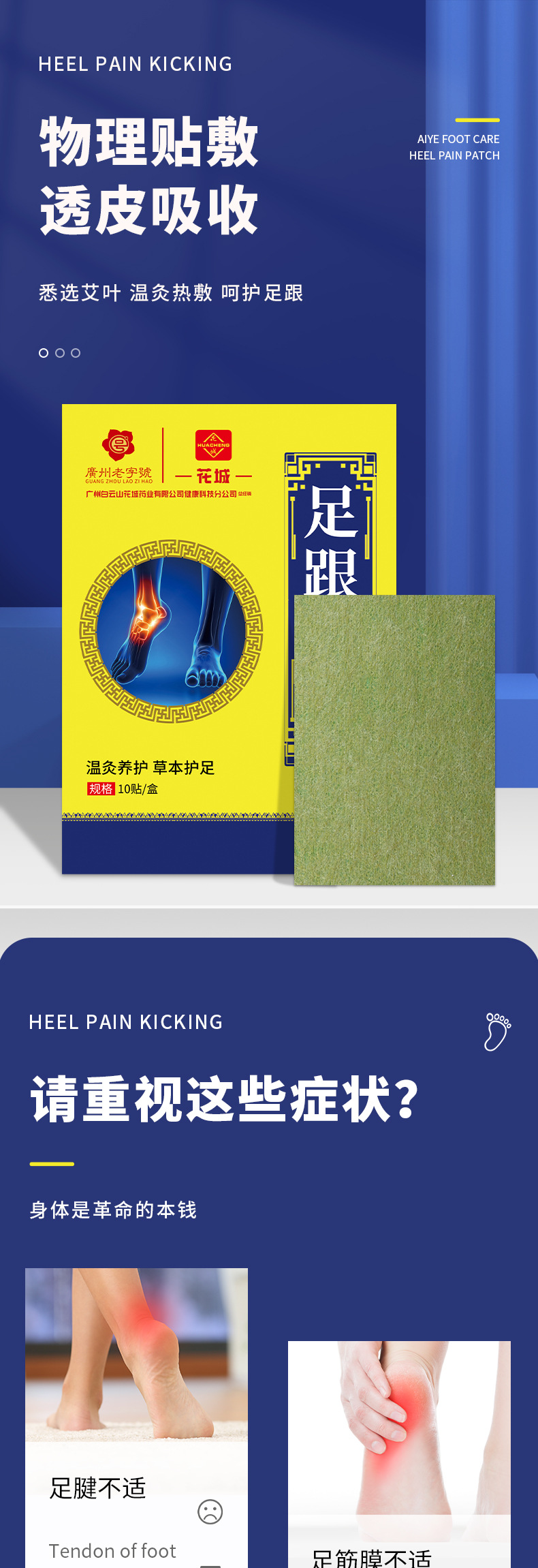 【买2送1❗️白云山花城艾草足跟痛贴】悉选艾叶,多味草本萃取,温灸热敷!足底足部护理膏药关节疼痛