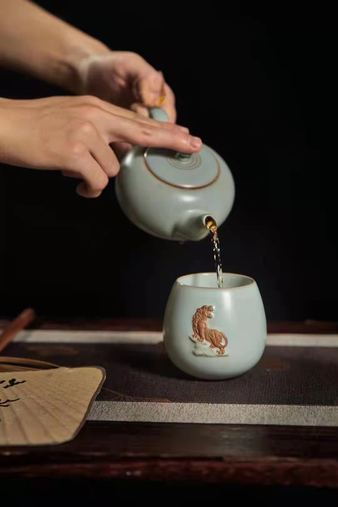 生肖主人杯|东道汝窑·虎虎生威汝虎杯(天青)