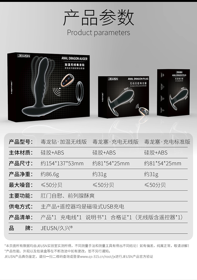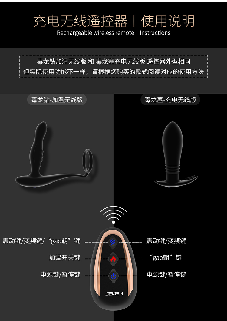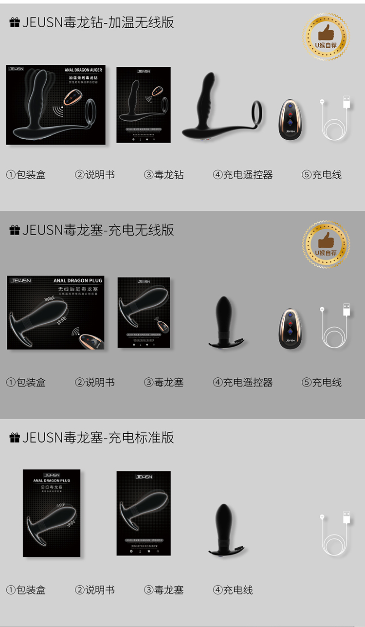 【Yummy好物】【男用器具】JEUSN/久兴毒D龙后庭按摩无线遥控电动肛塞男用前列腺按摩震动器