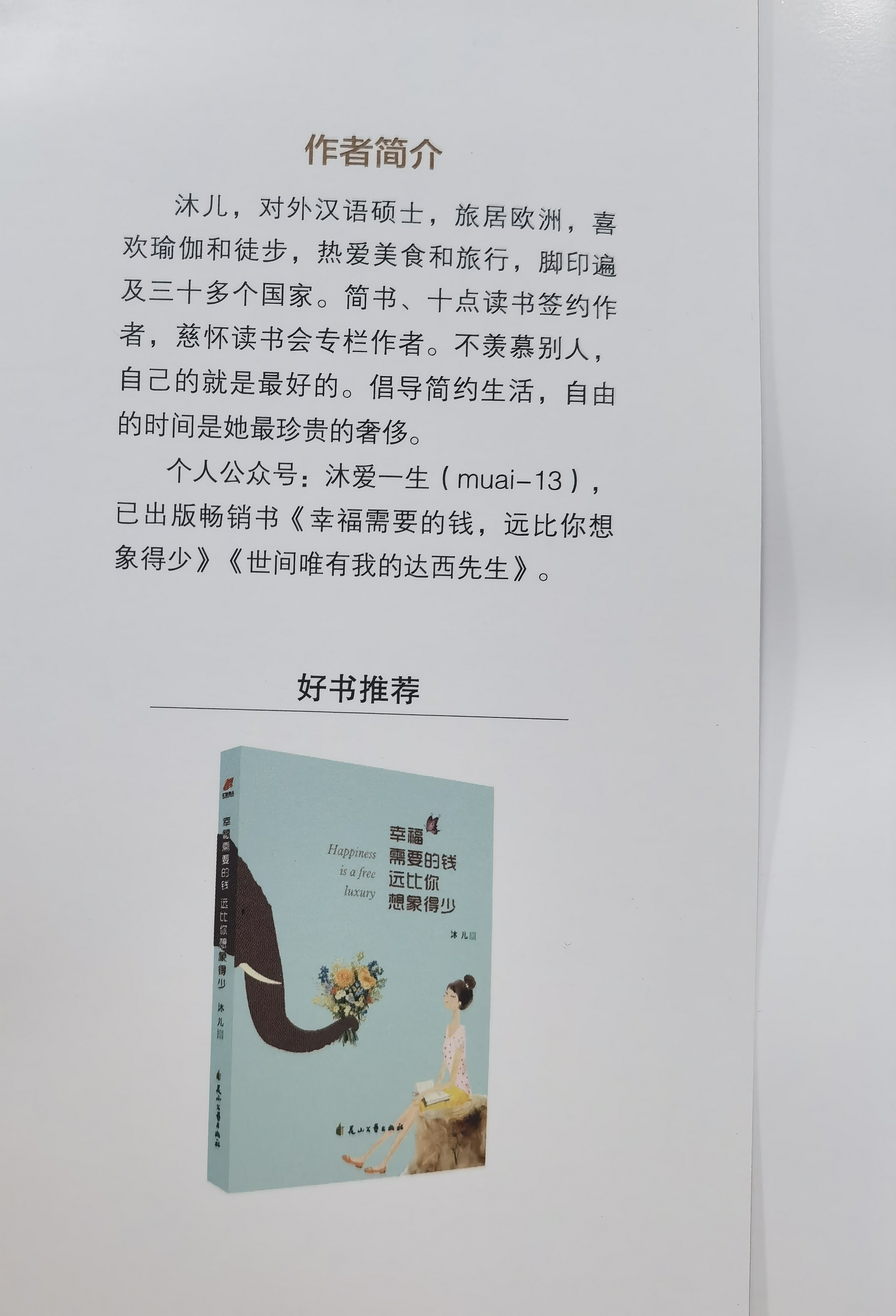 个人公众号:沐爱一生(muai-13),已出版畅销书《幸福需要的钱,远比你想象得少》《世间唯有我的达西先生》。