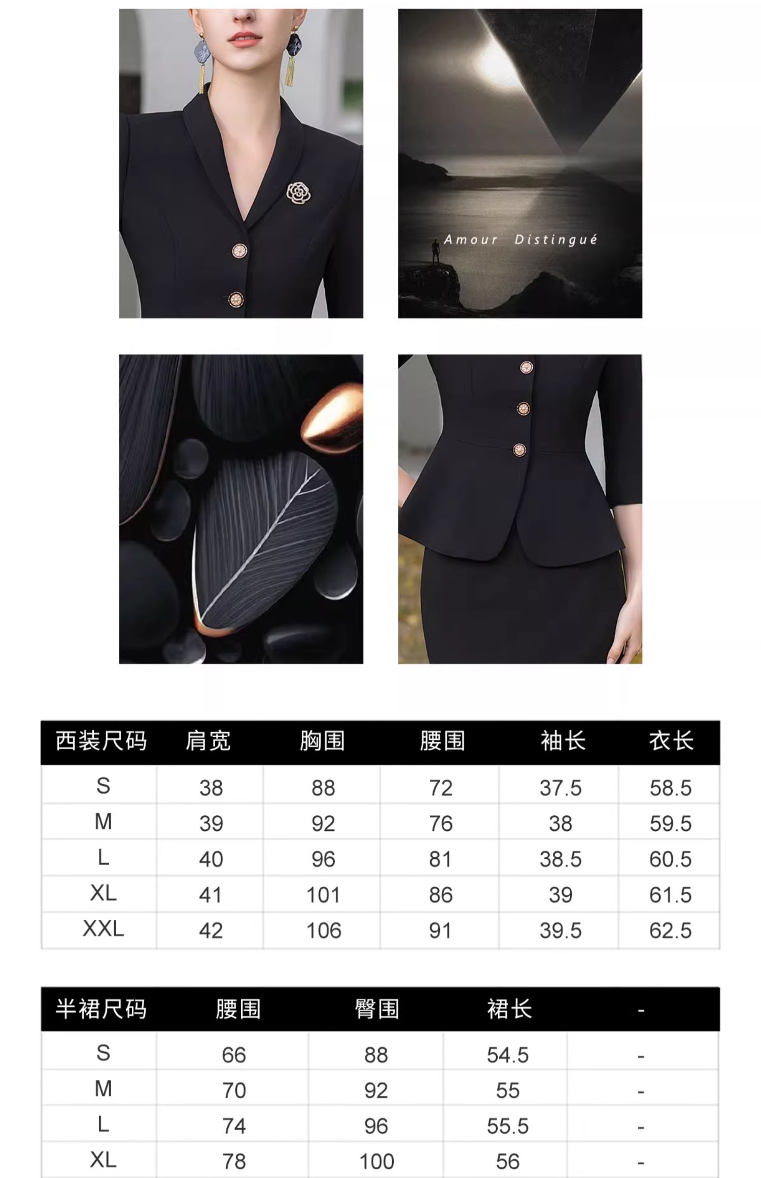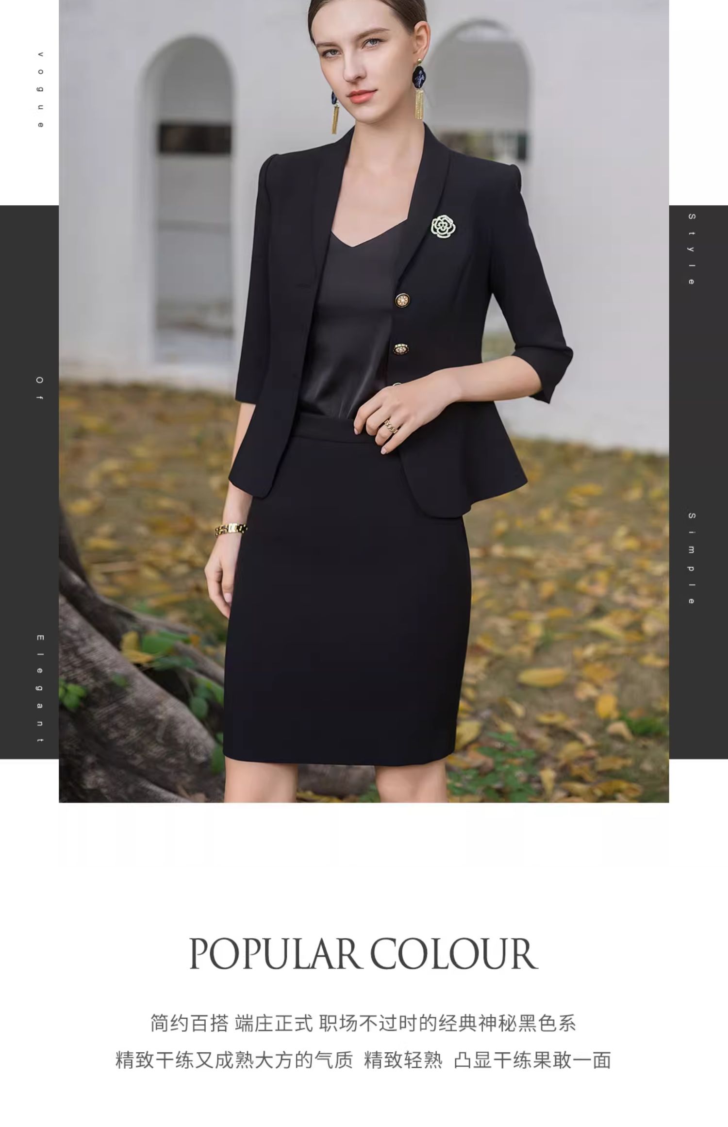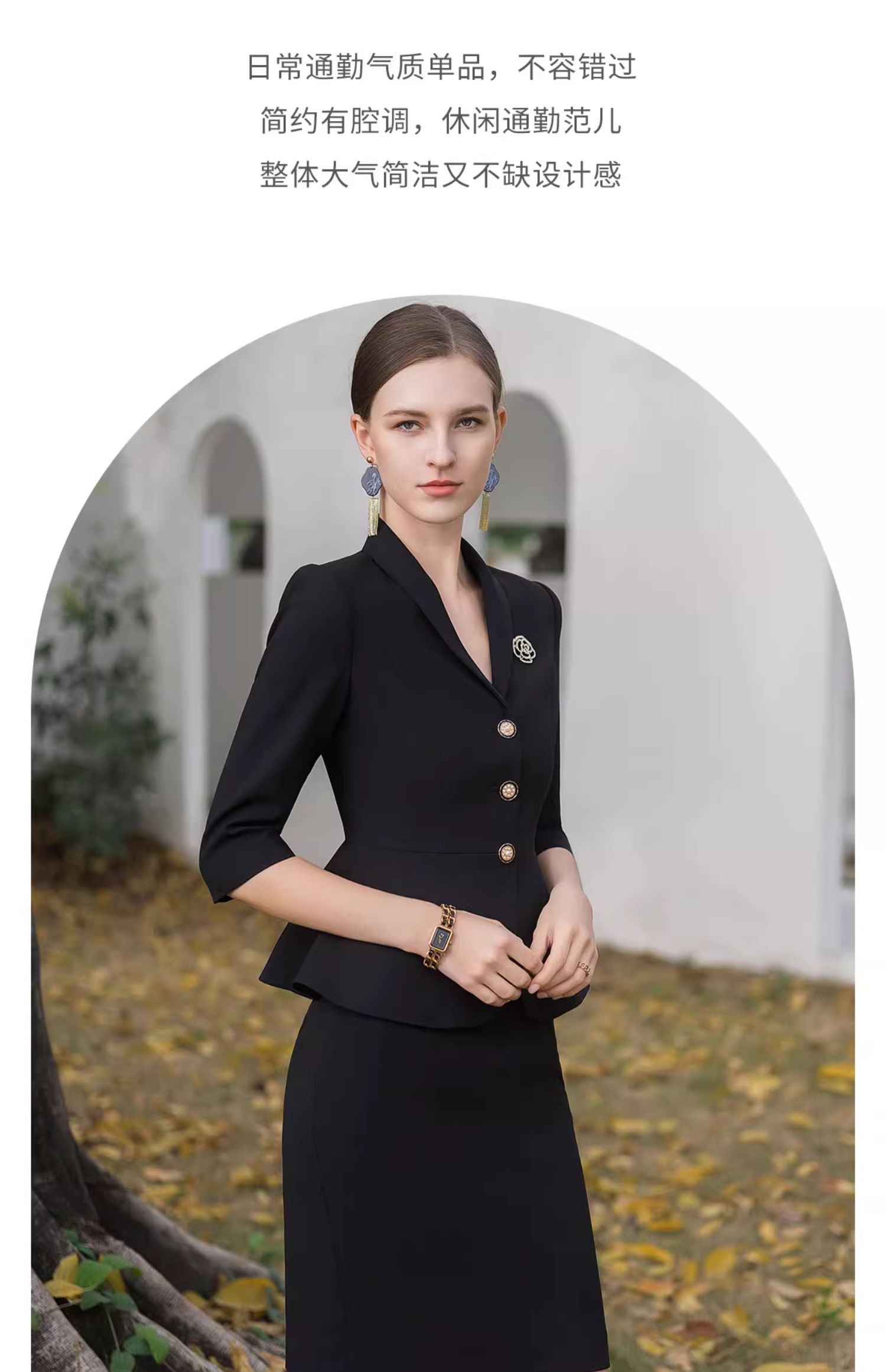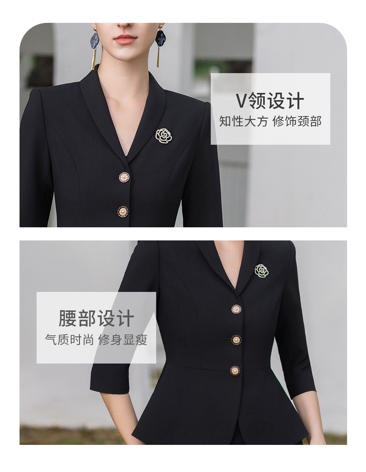 AD酒店前台工装套装女夏季中袖工作服黑色小香风西装套裙修身显瘦