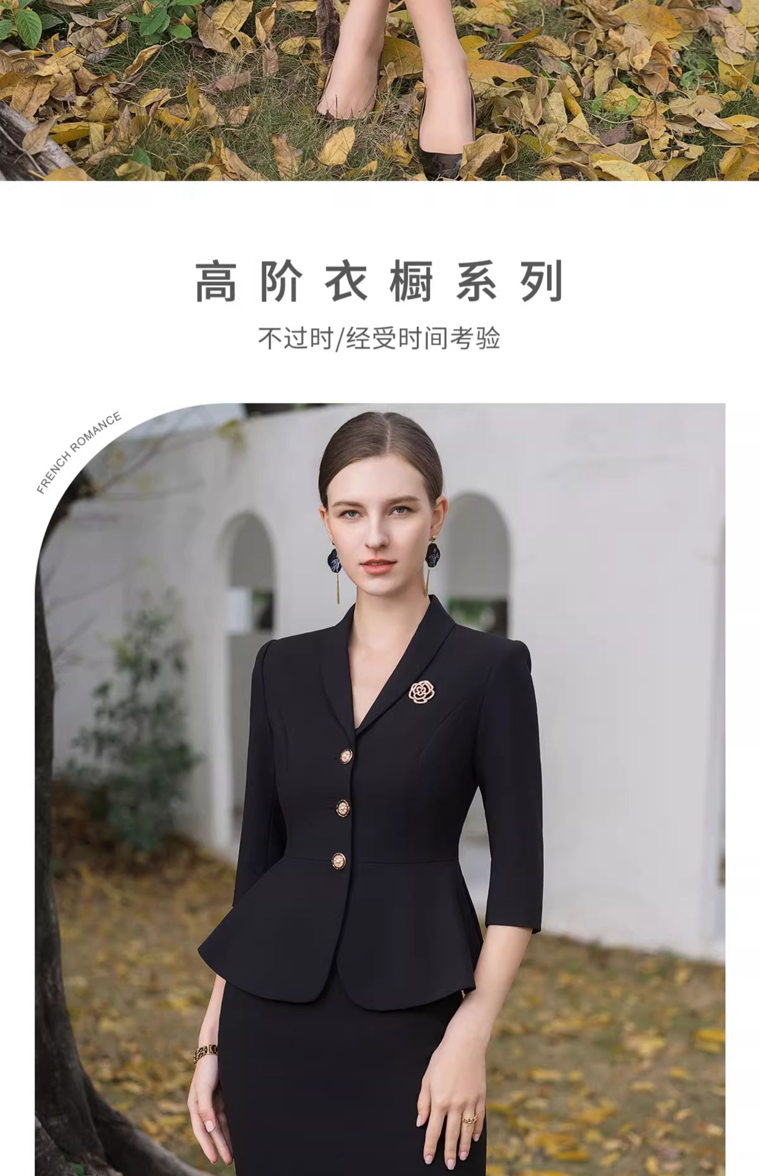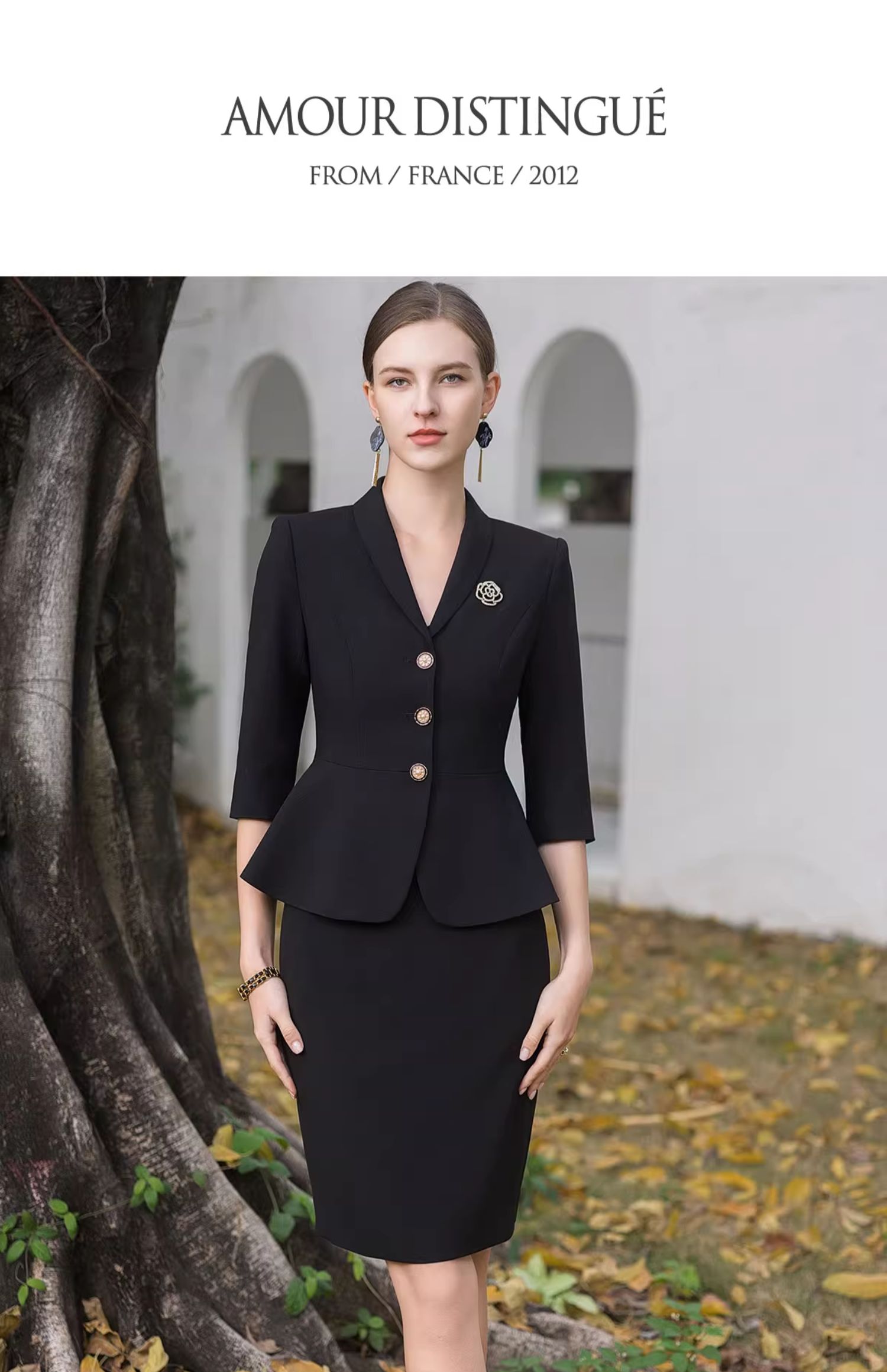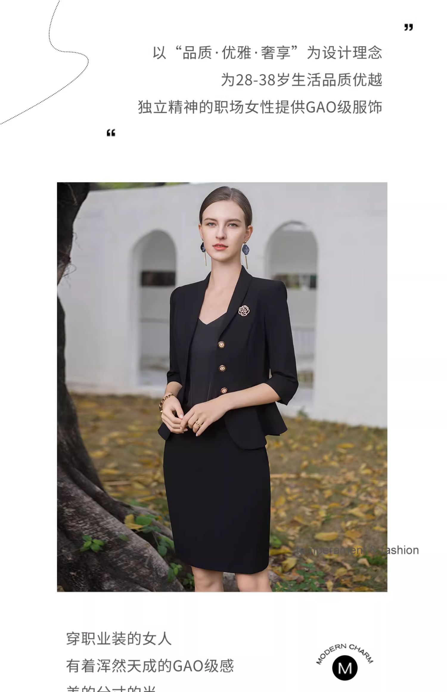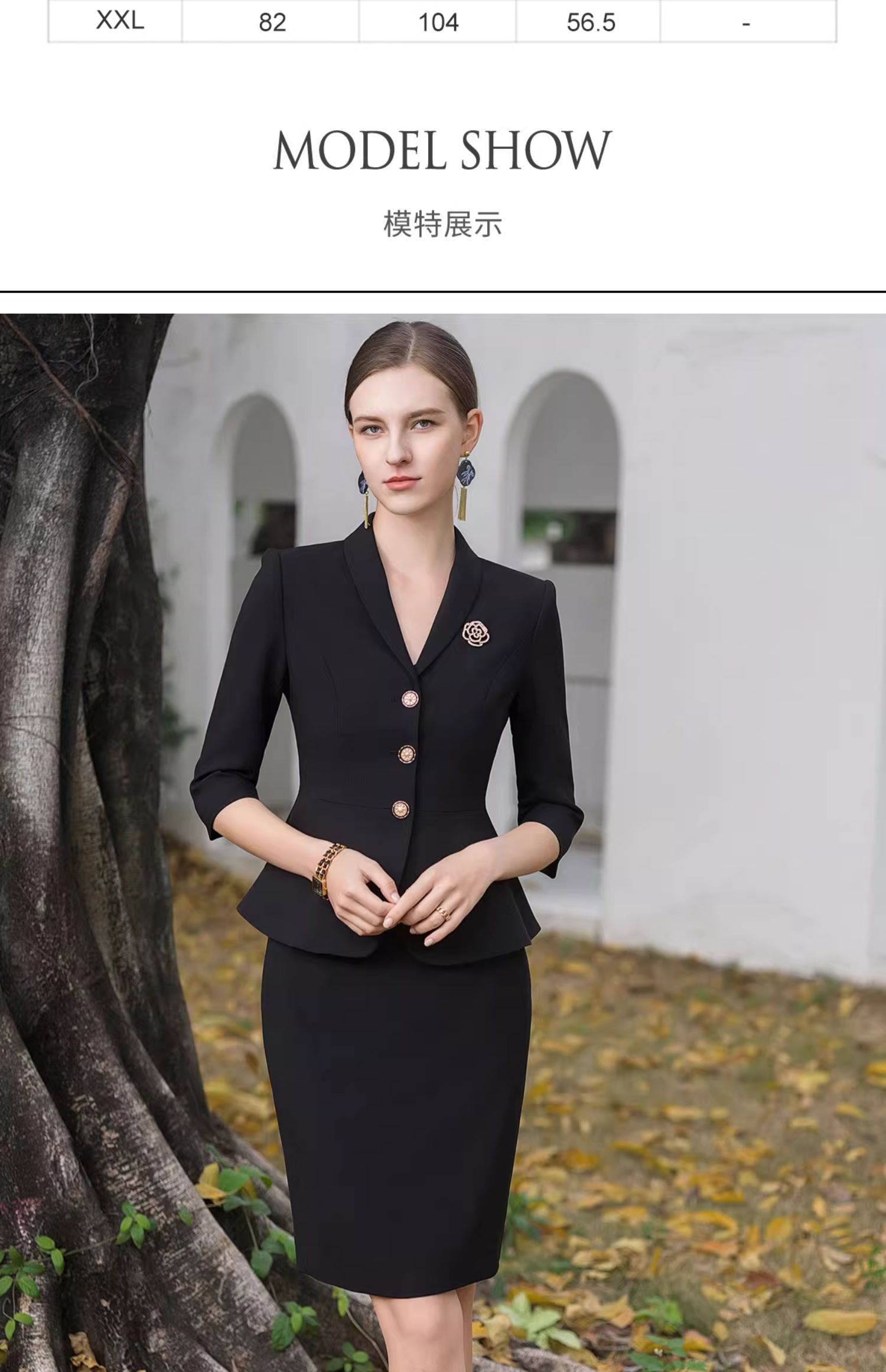 AD酒店前台工装套装女夏季中袖工作服黑色小香风西装套裙修身显瘦