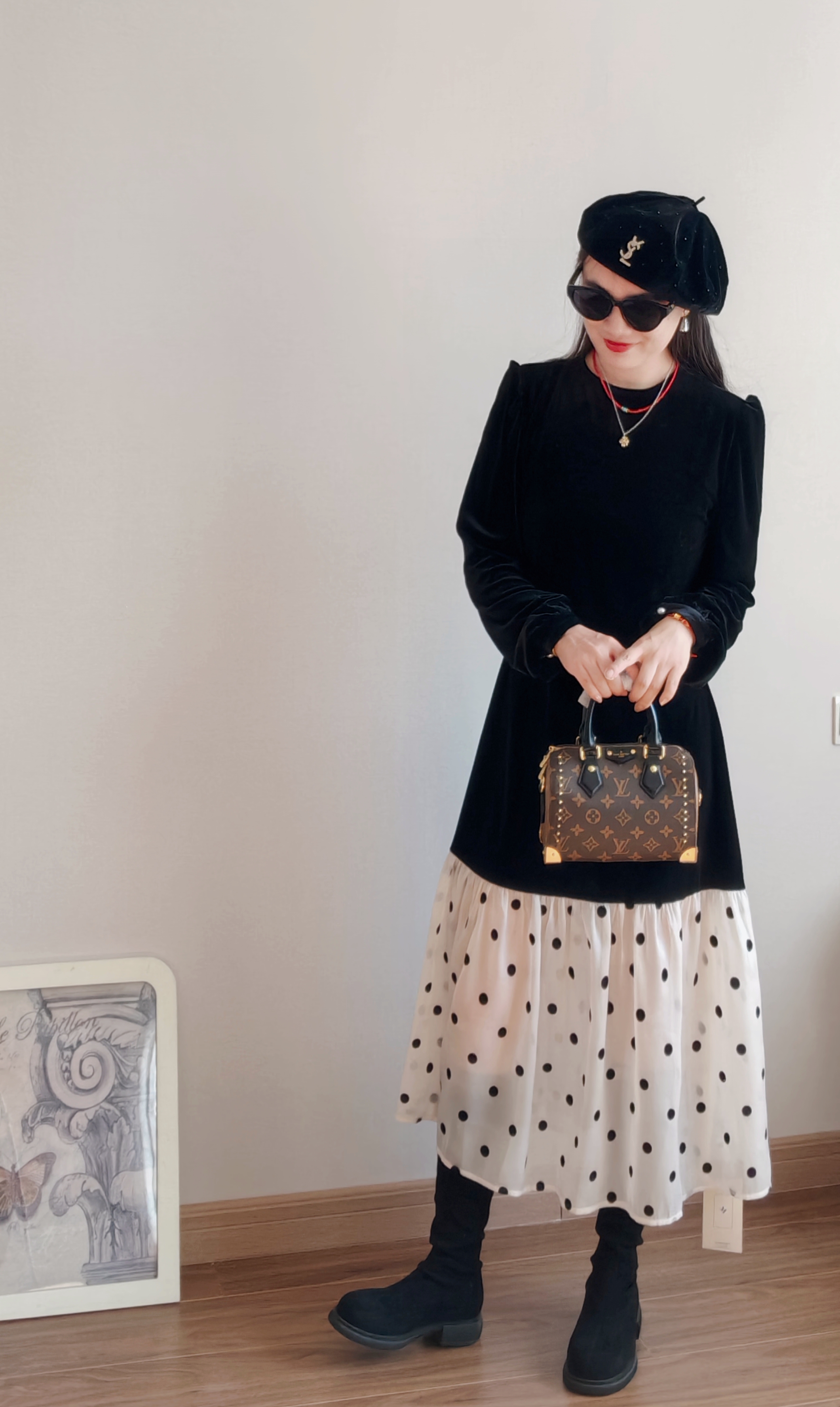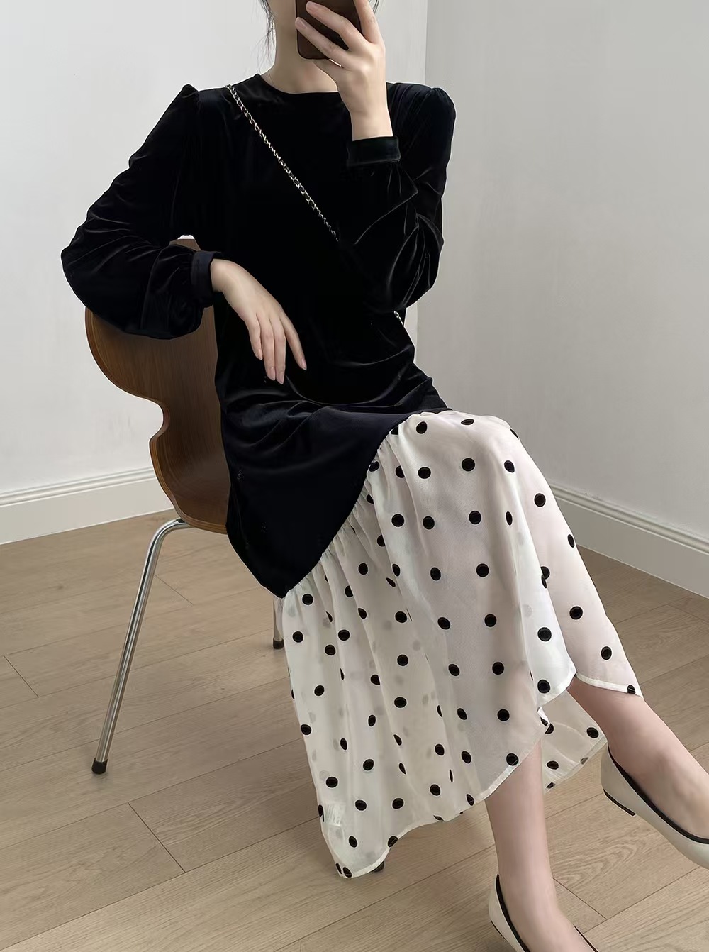 人间赫本,非常显瘦,早春大女主穿搭,显瘦到没话说❗️法式复古静谧黑,波点荷叶裙摆花边灵动,优雅伴随~演绎春日里最雅致的浪漫