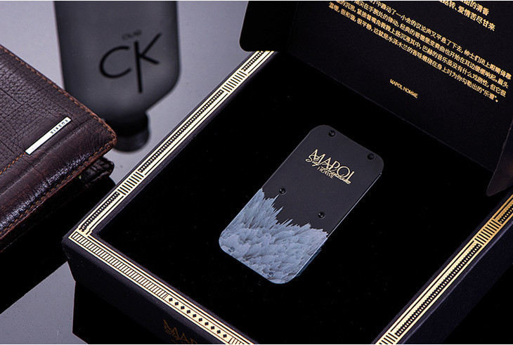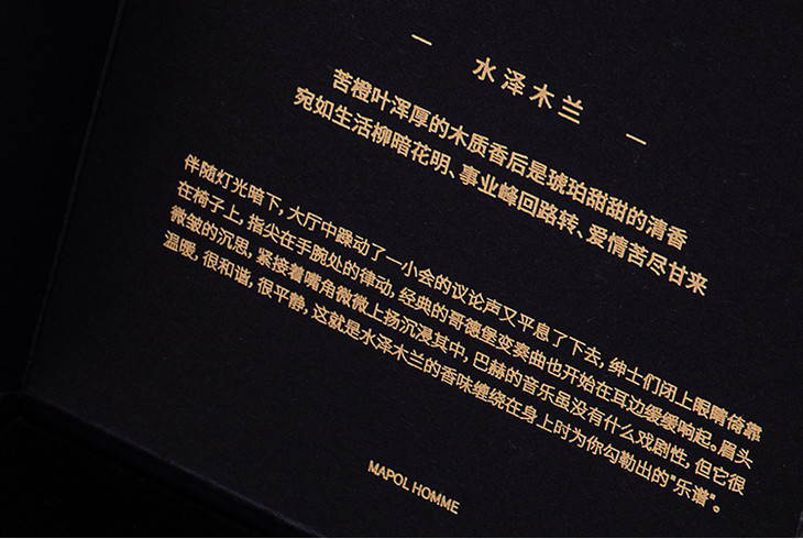 纯手工的折叠礼盒,似乎还残留着匠人的温度;亚光黑的牛皮纸搭配烫金LOGO和镶边,再加上触感细腻的丝绒。