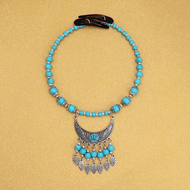 复古民族风月牙叶子流苏额饰异域藏族头饰眉心坠额头链旅拍配饰女