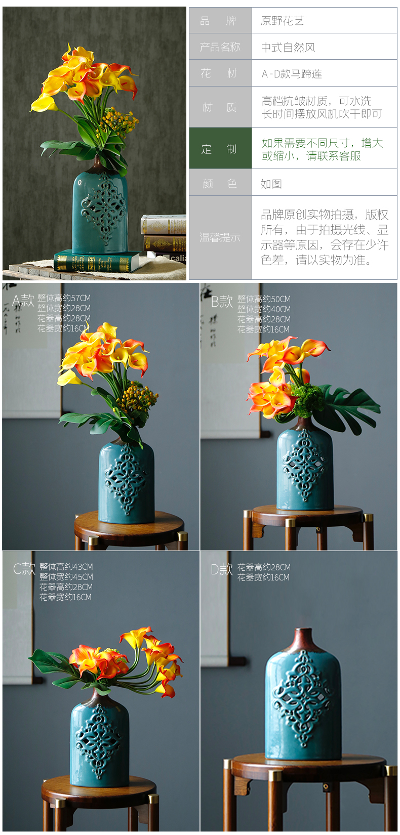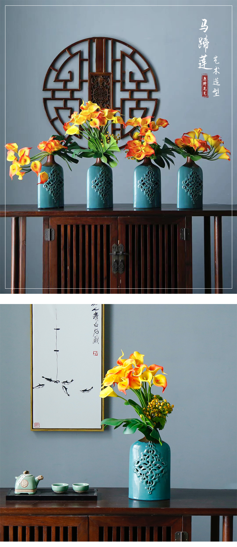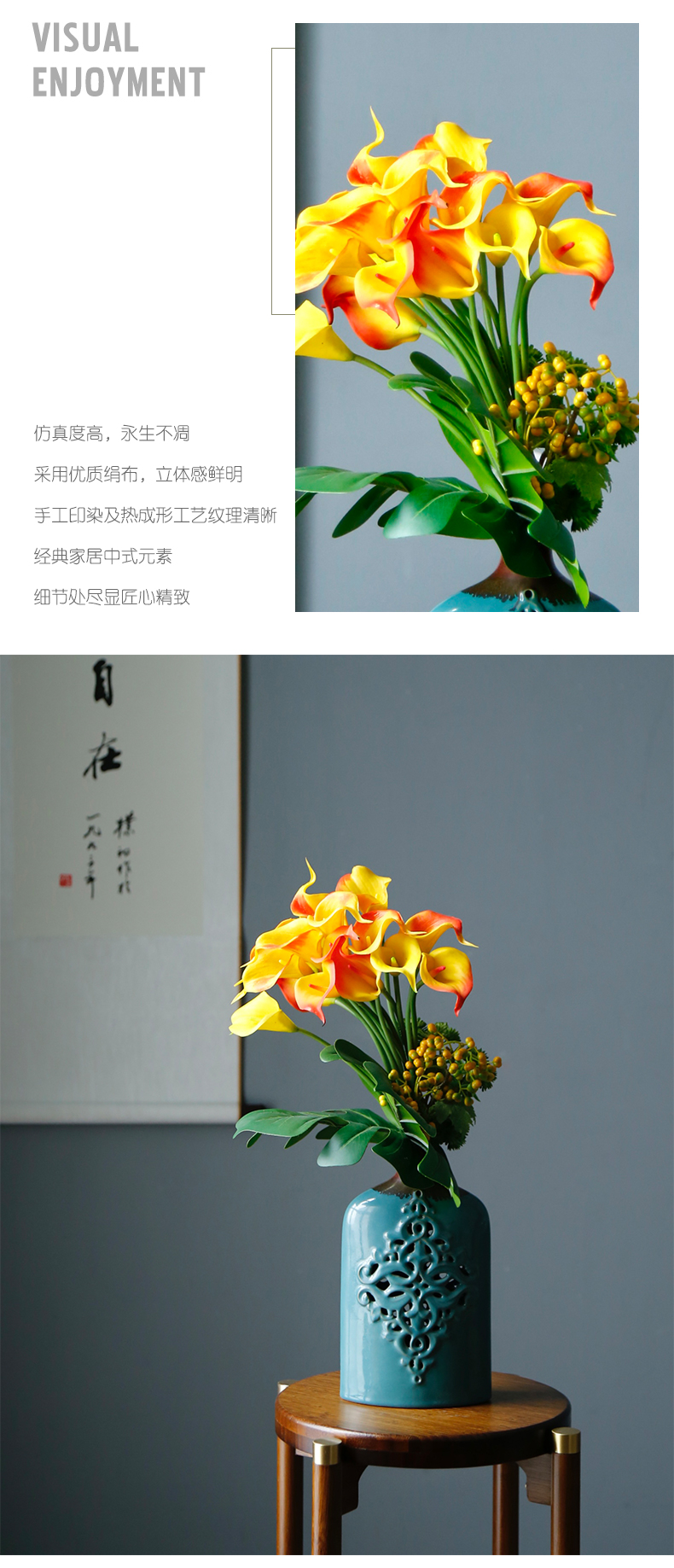 马蹄莲仿真花假花酒店包厢客厅餐桌摆花定制花艺套装中式摆设摆件