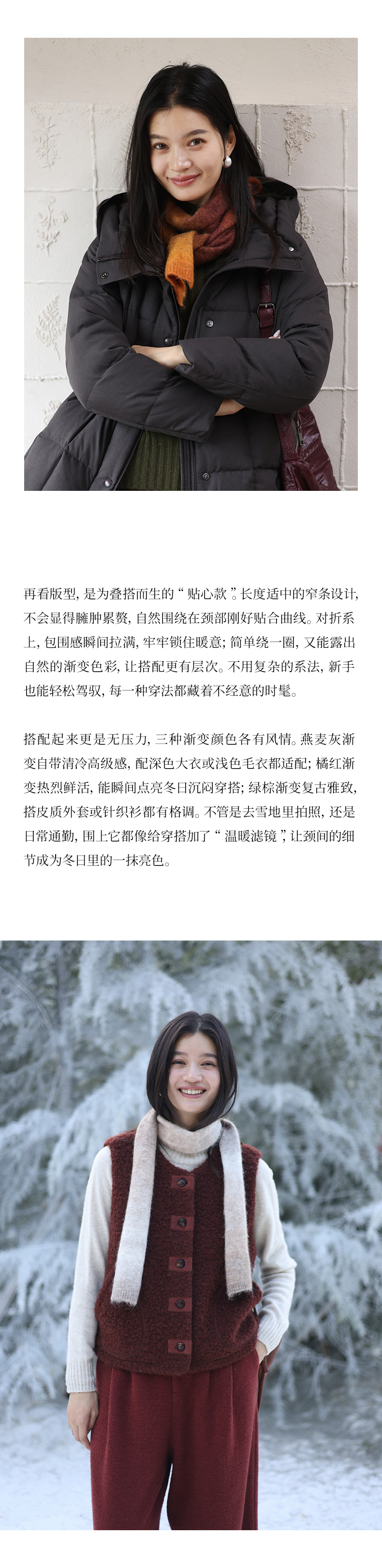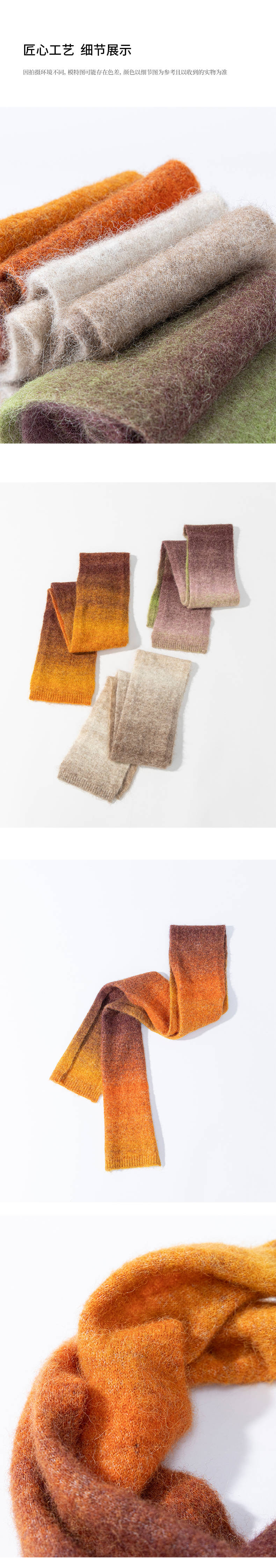 绽放/KSX007朵糯米渐变羊驼羊毛围巾亮色短款叠搭秋冬护颈百搭