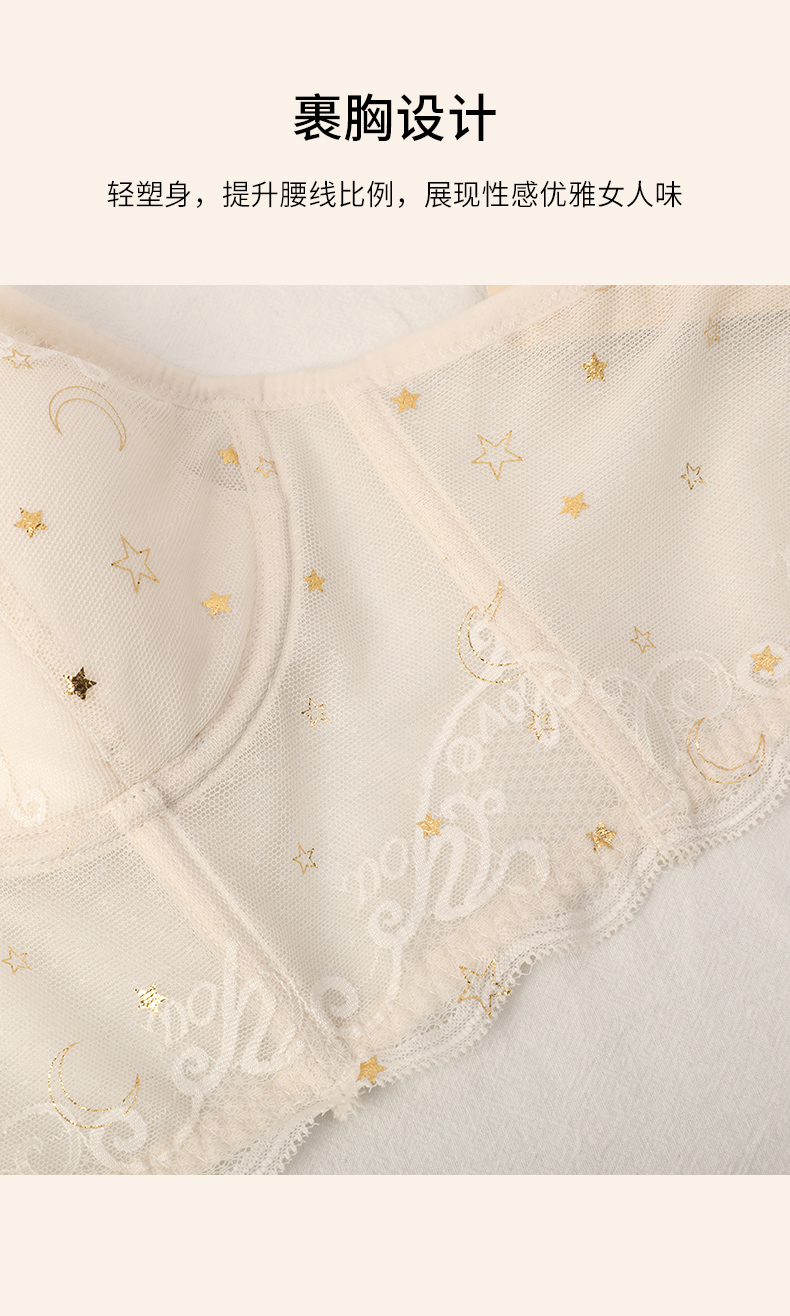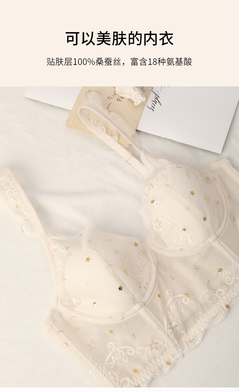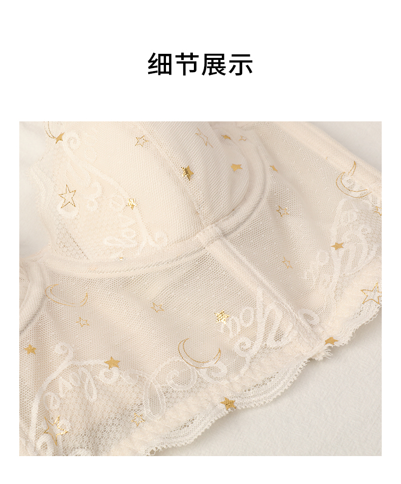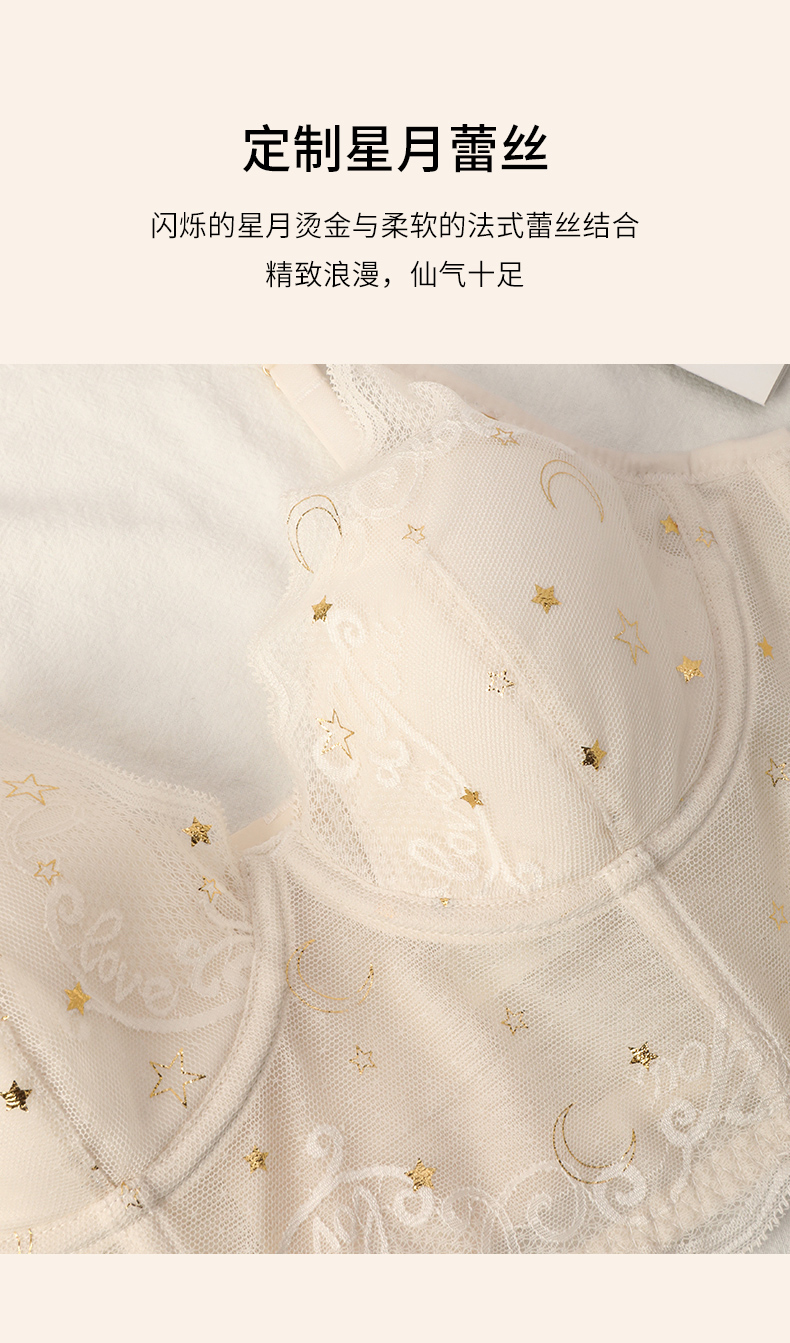 金三塔法式裹胸式文胸星月烫金蕾丝真丝美肤性感聚拢内衣套装 NZFCA399