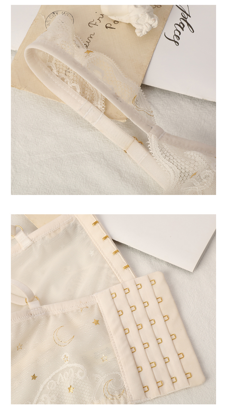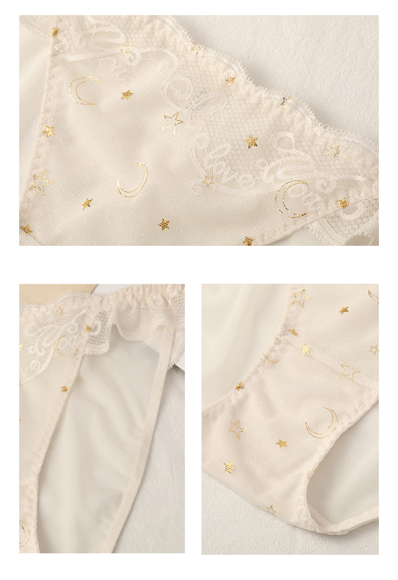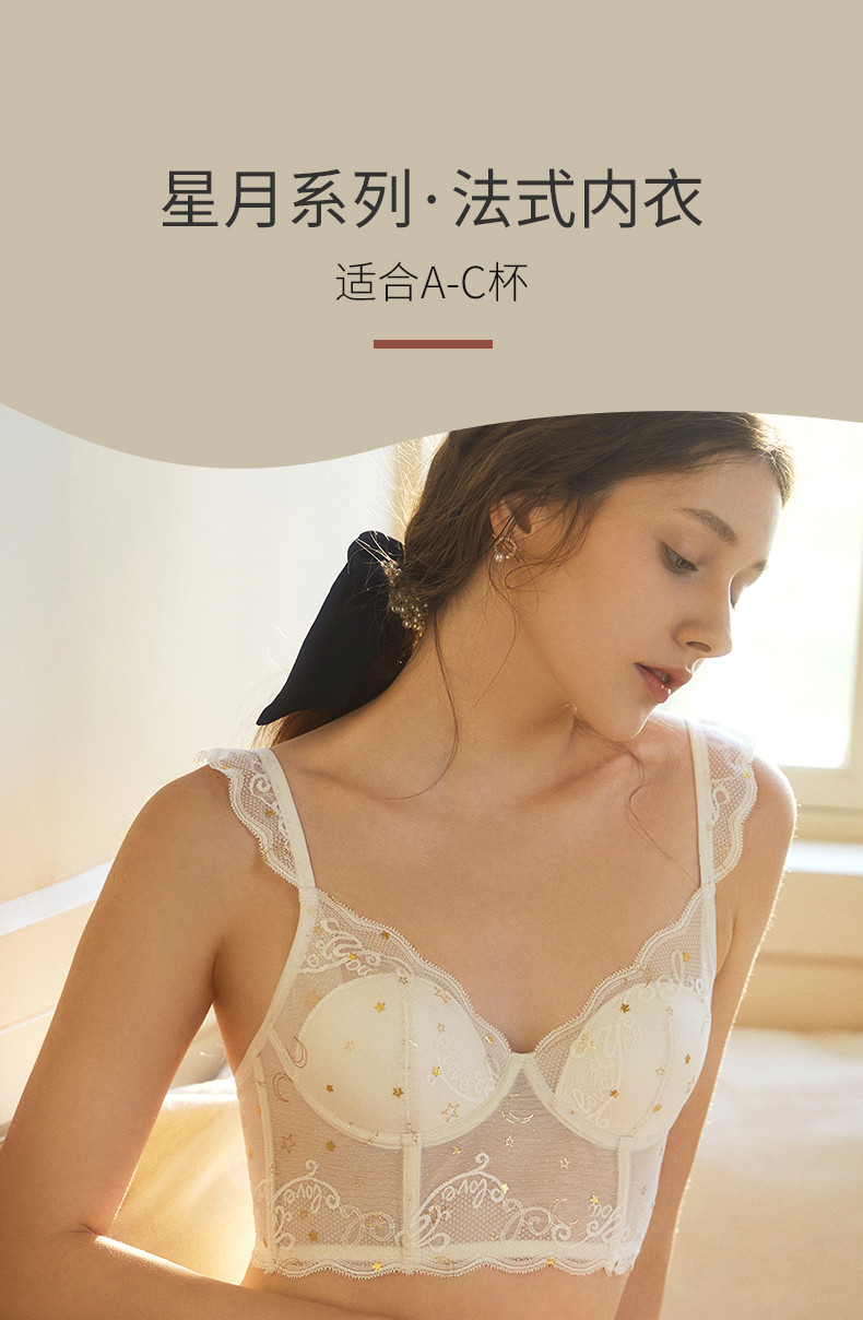 金三塔法式裹胸式文胸星月烫金蕾丝真丝美肤性感聚拢内衣套装 NZFCA399