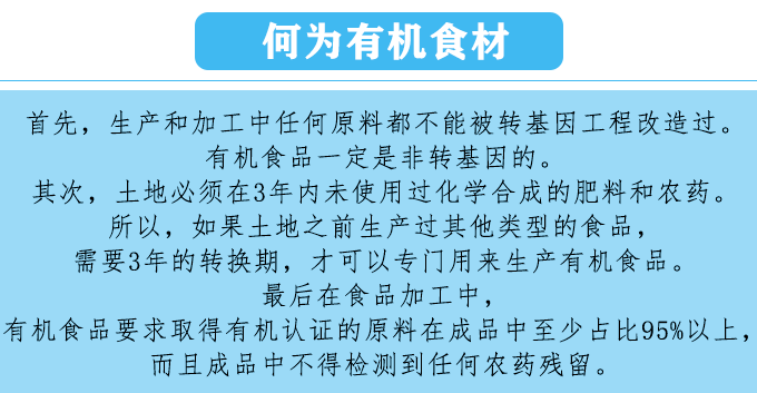 有机原材料为主,安全健康,营养价值高。不用任何添加剂、合成防腐剂,起酥油,合成香精,色素等,让家人吃得放心安心