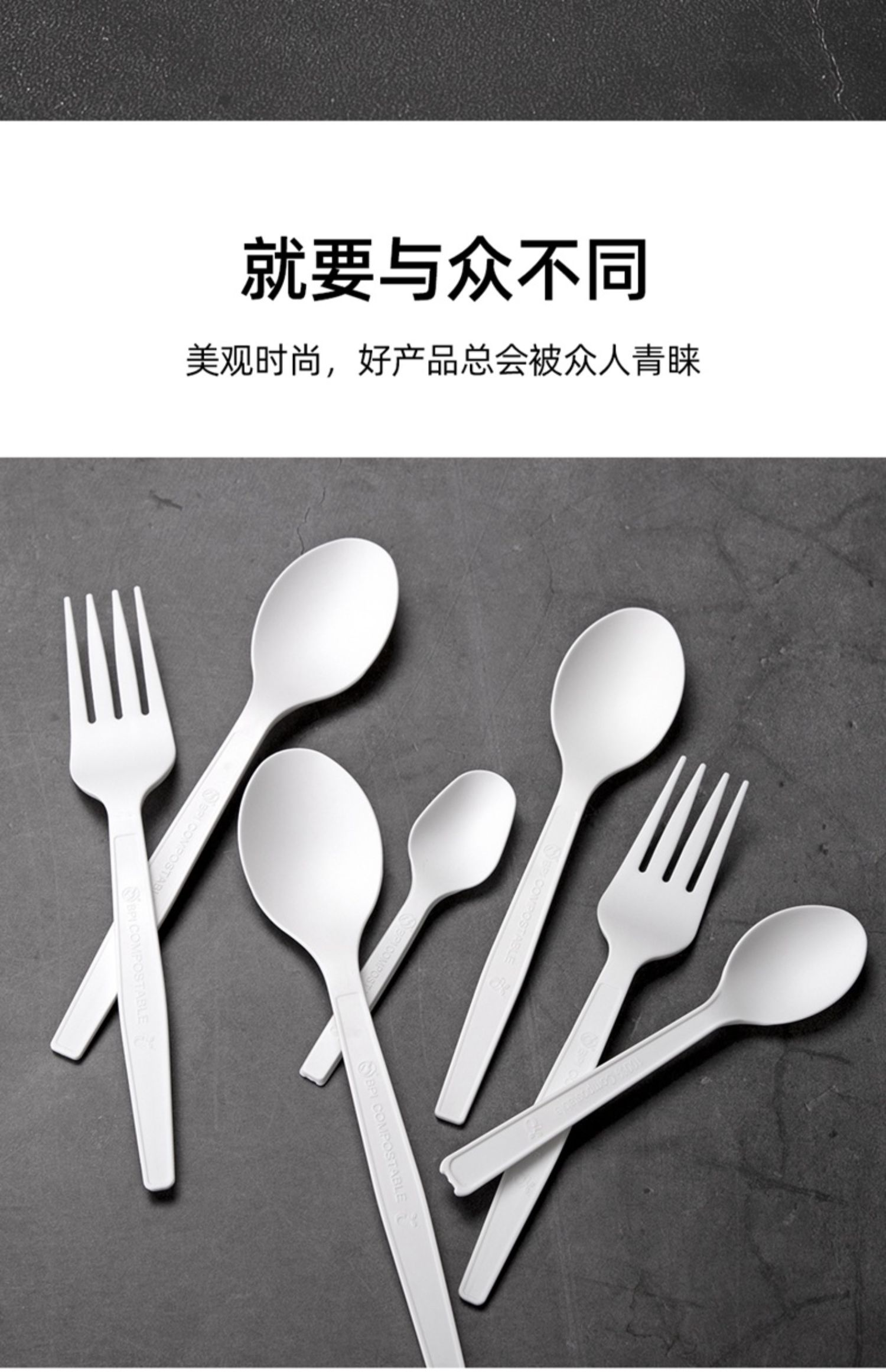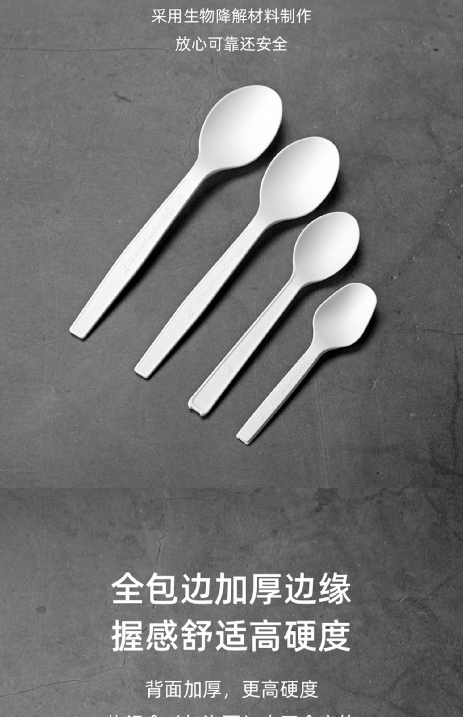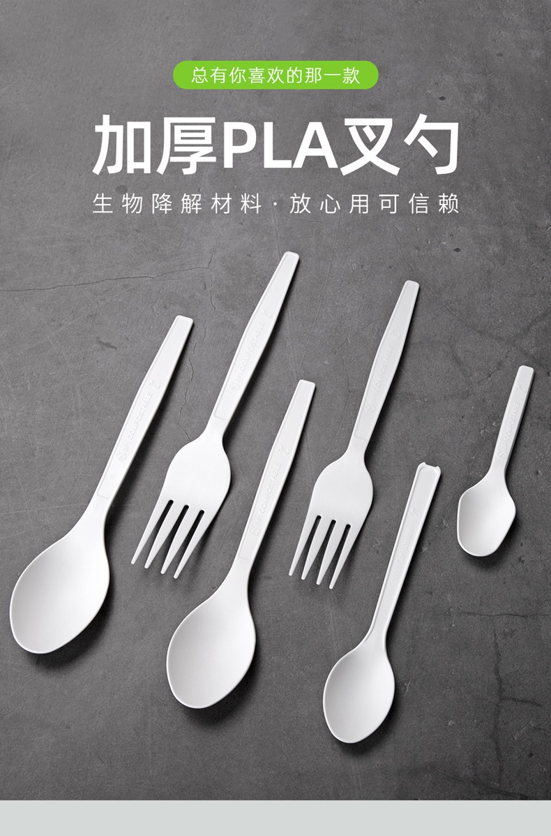 喇叭花 一次性勺子甜品酸奶西餐长柄叉勺单独包装PLA甜品100支