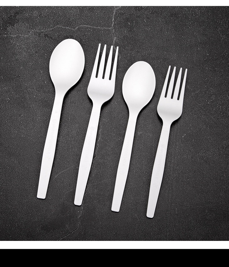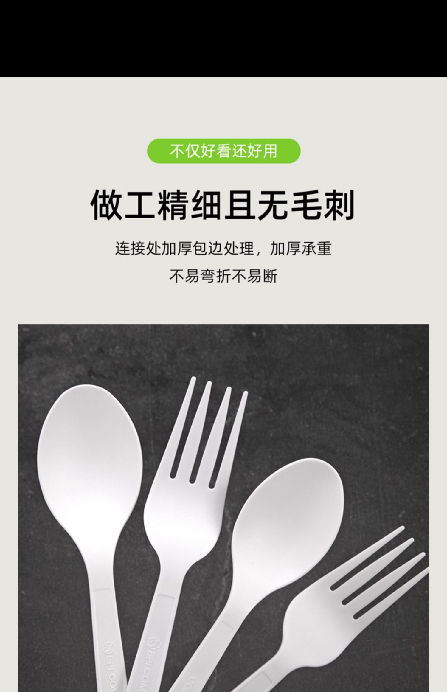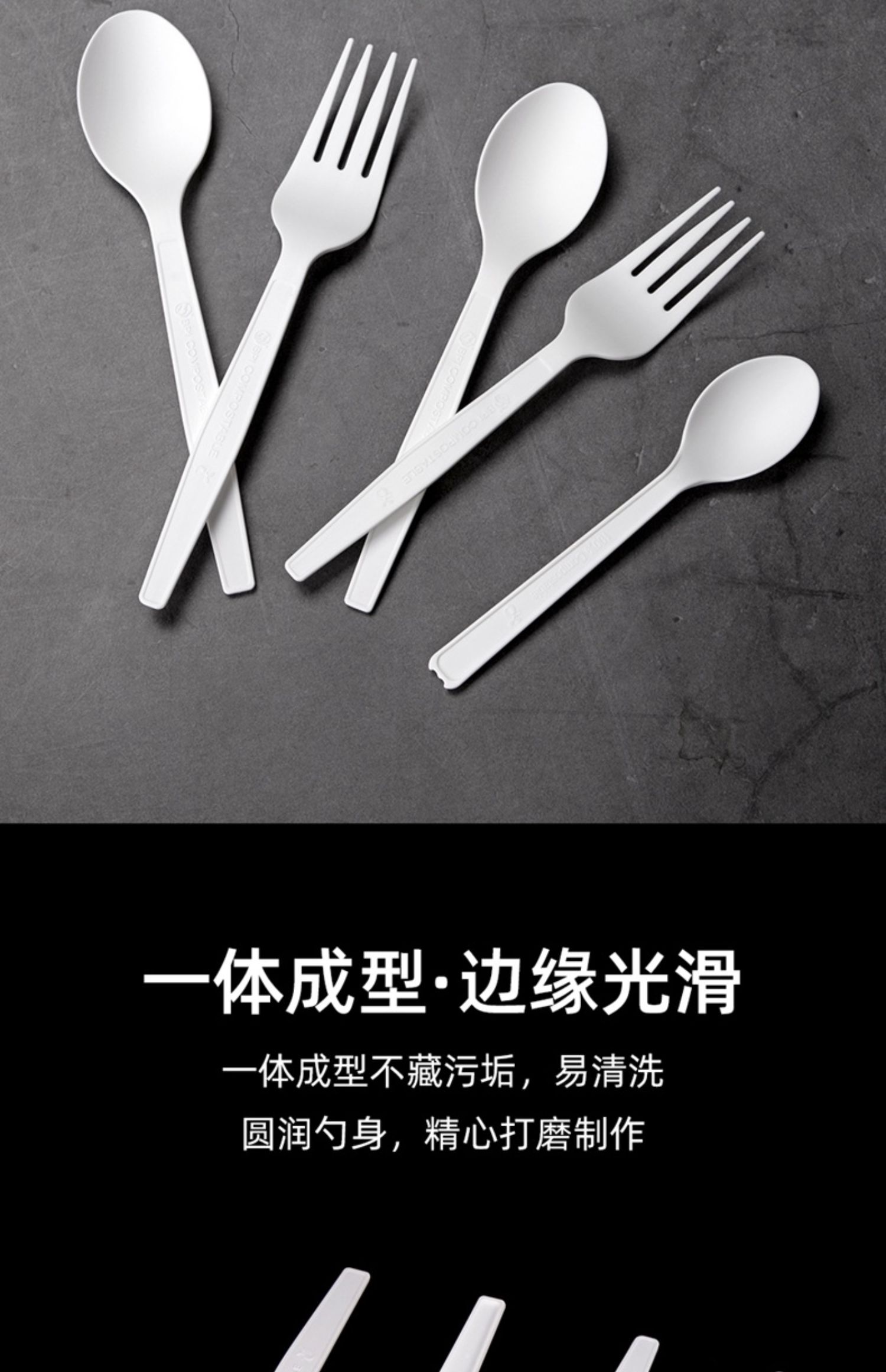 喇叭花 一次性勺子甜品酸奶西餐长柄叉勺单独包装PLA甜品100支