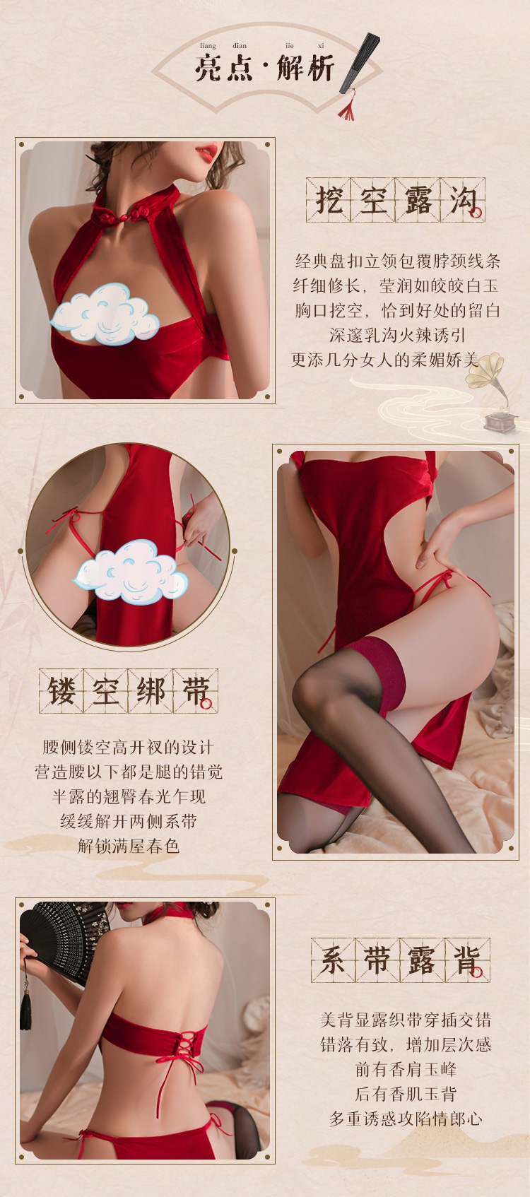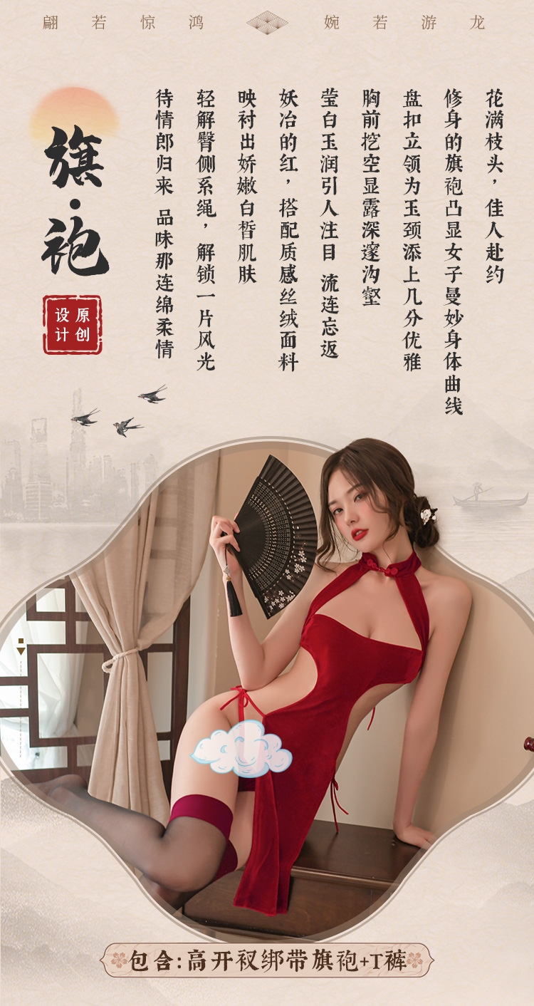 高开衩分片绑带丝绒旗袍6701