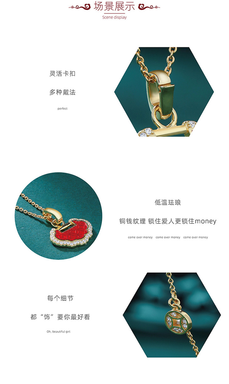 【宫里首饰】 称心如意银镀金饰品套装 耳环+手链+项链套装