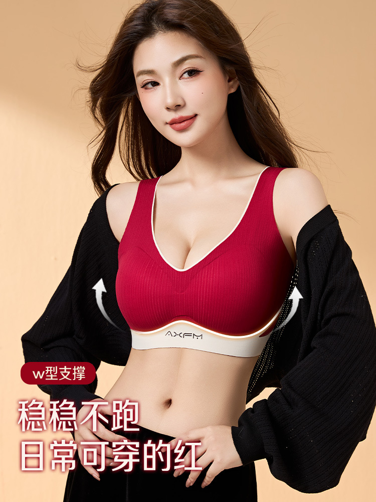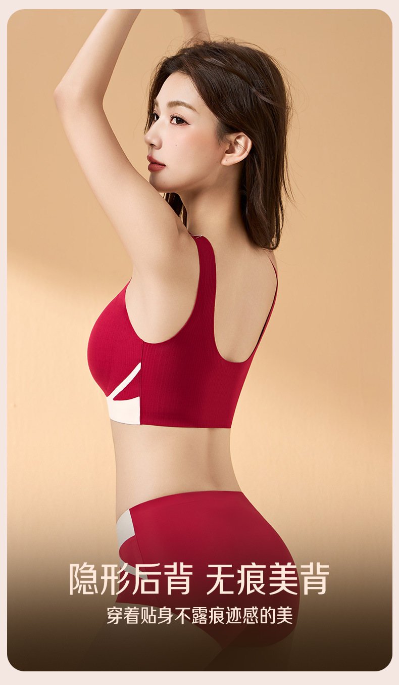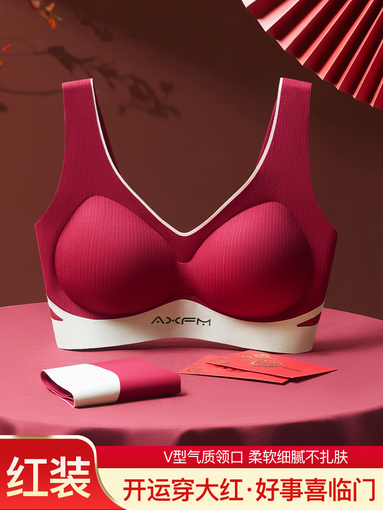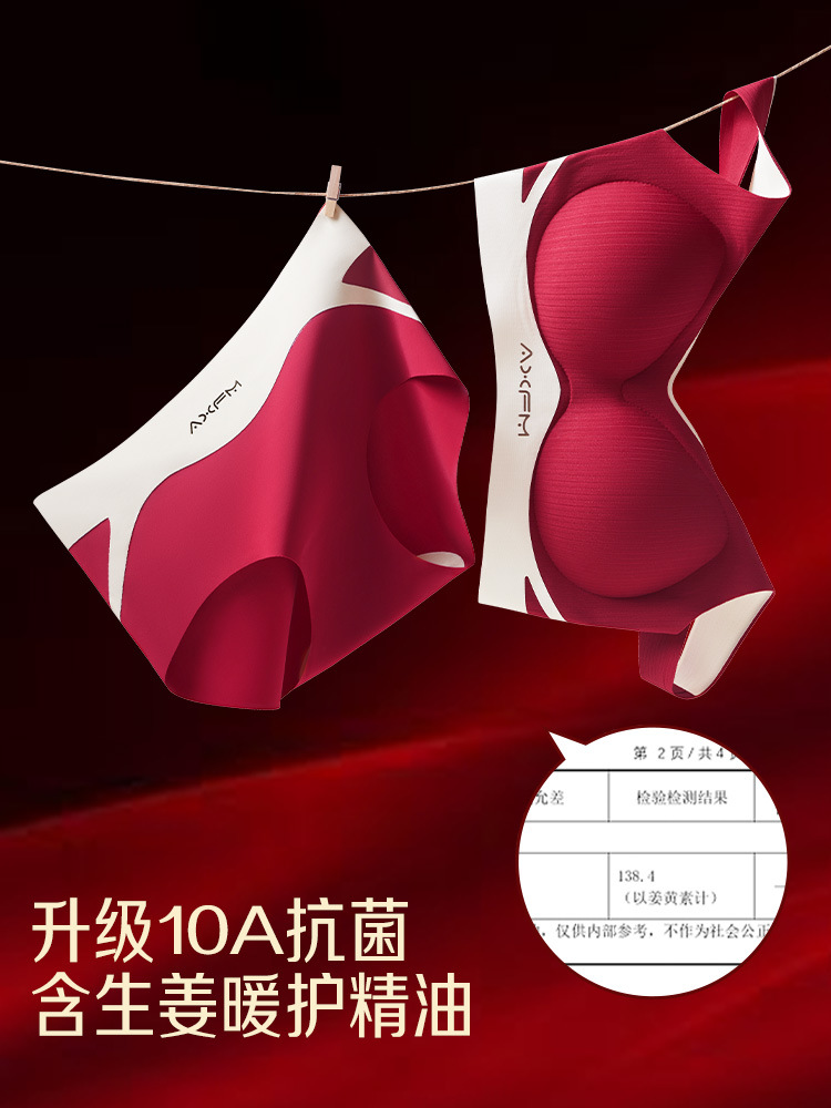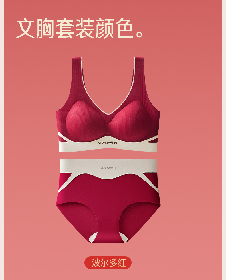 【红运红❗️本命年内衣套装,】幸运波尔多红,3D立体罩杯圆润力挺,柔软细腻不扎肤,U型美背贴身不露痕迹,生姜精华油暖身蓄热持续,固定杯新款无痕软支撑文胸内裤套装女宽肩背心QQ